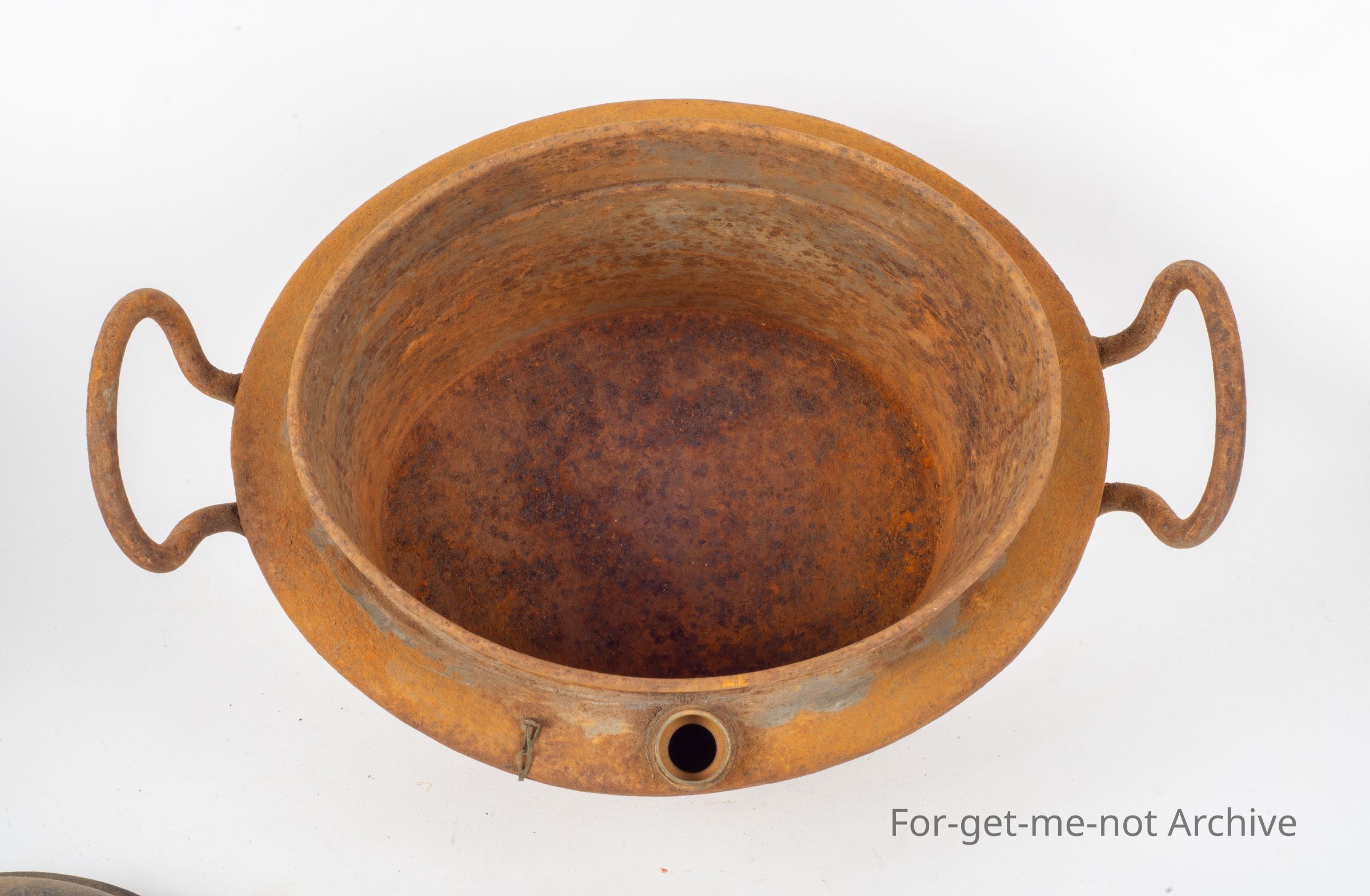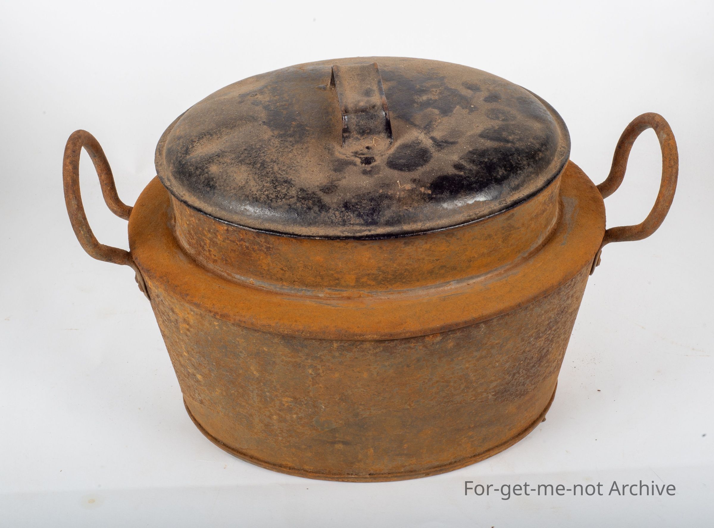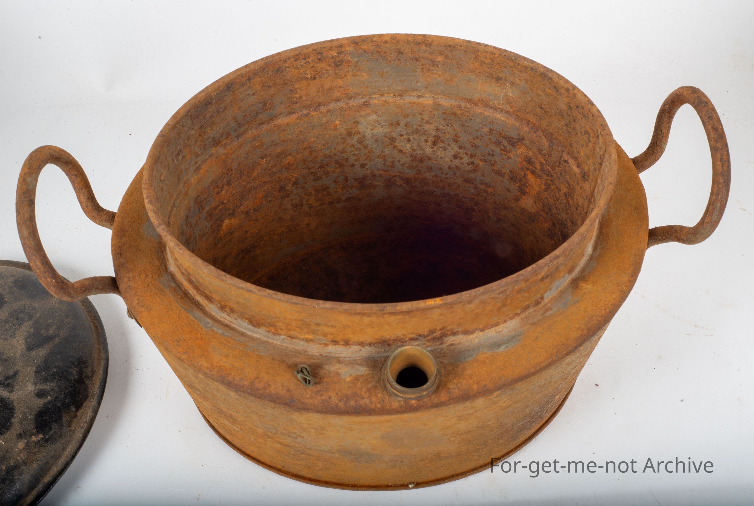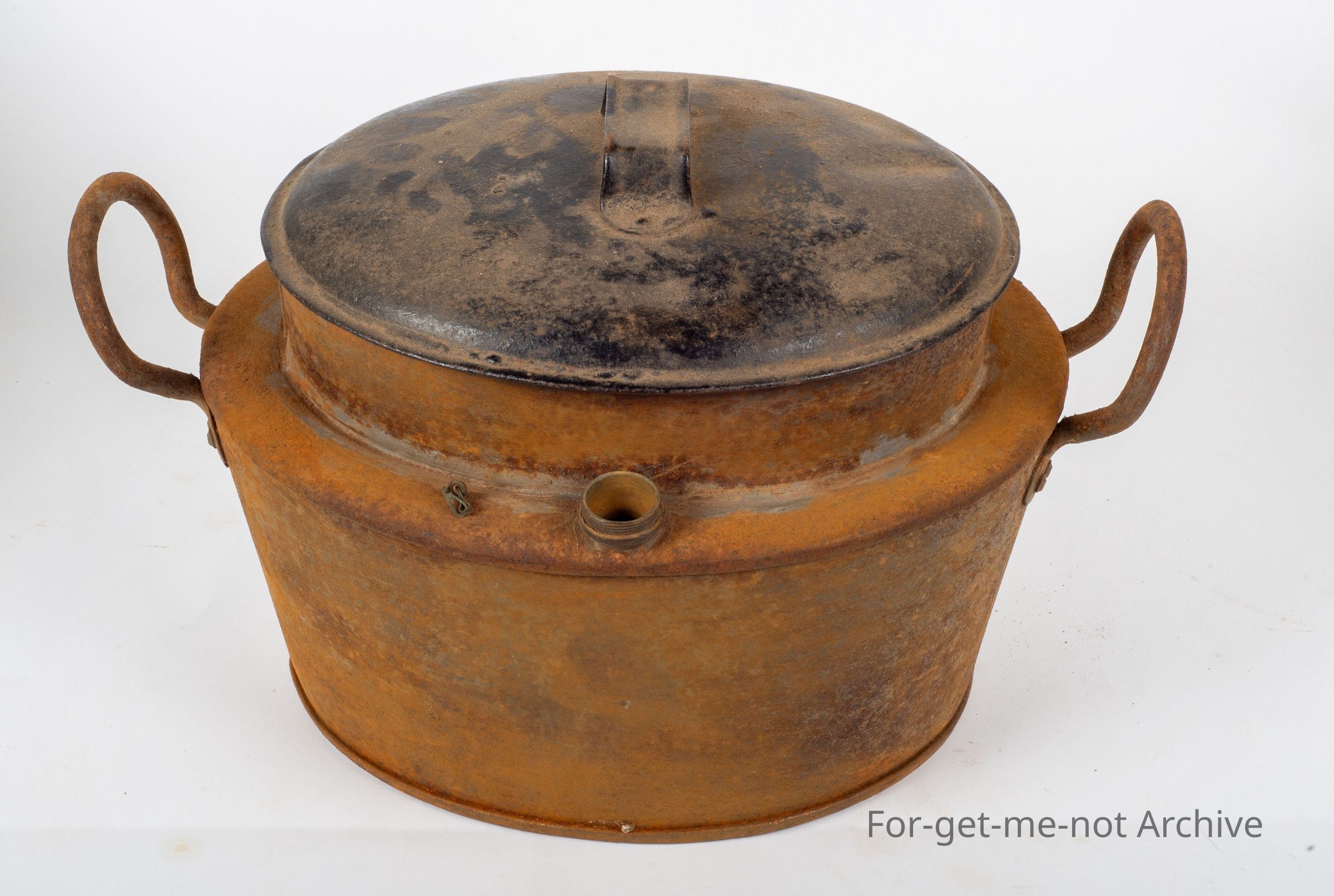 Tin boiler with a water jacket to keep the contents warm, no branding, unusual item in good order with lid