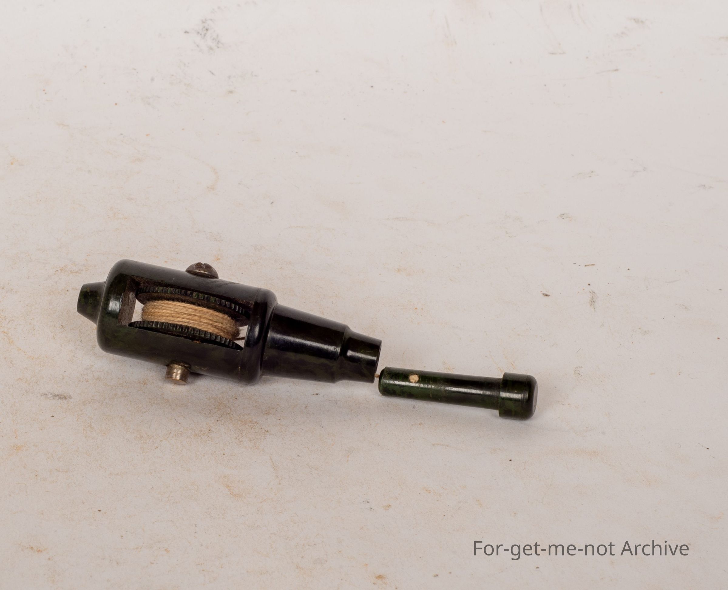 This is a little data light object with a, a thread, and you can undo the thread with a wheel. It has a little weight at the bottom. This is used by seamstresses and it's called a hem measure. Lovely little piece, quite uncommonCollection