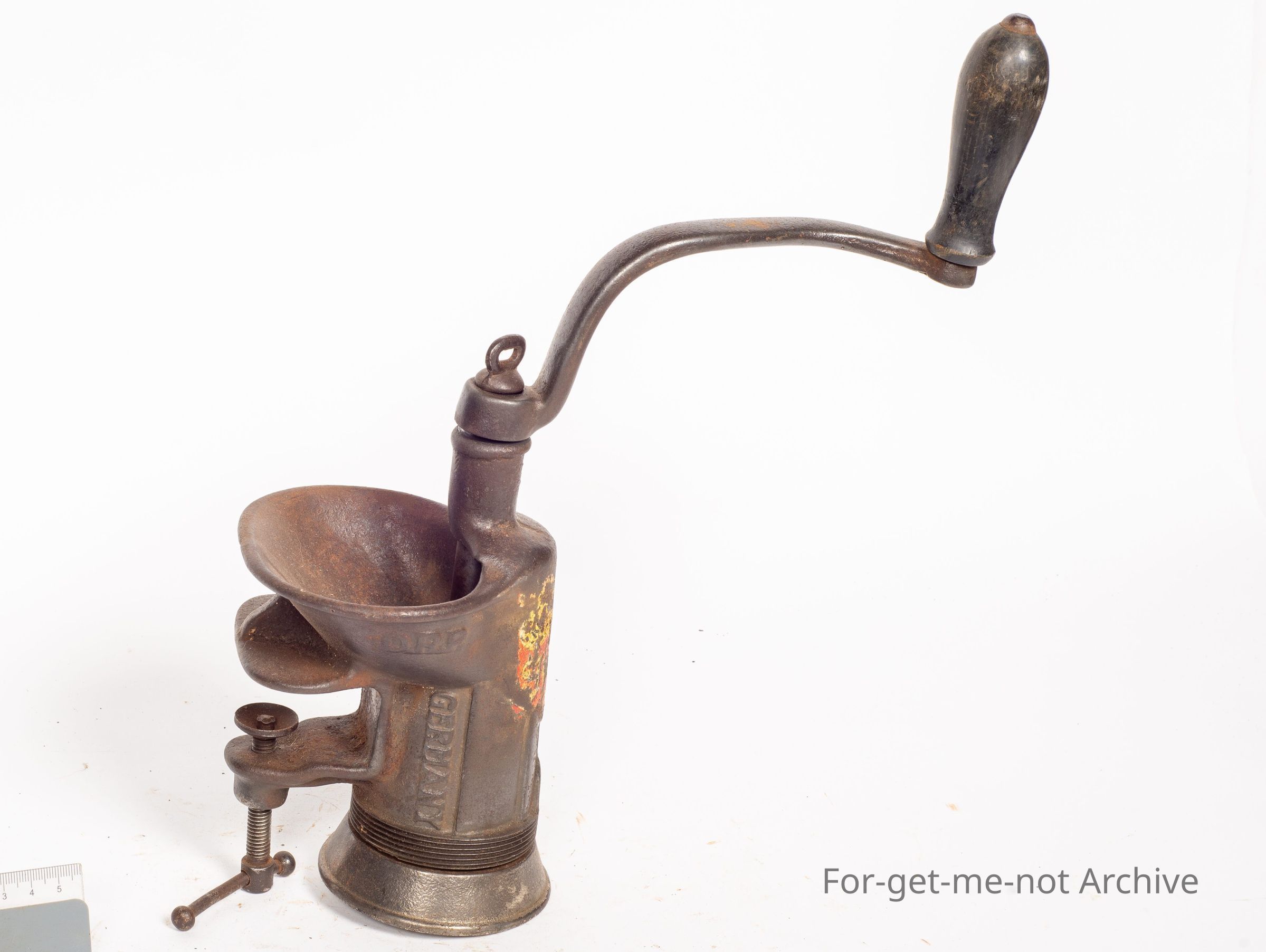 This is a cast iron herb grinder on a bigger scale than the previous run. Clamps to a table or bench. Hand operated. All complete. This one is known as the Jupiter 8. Made in Germany.Collection