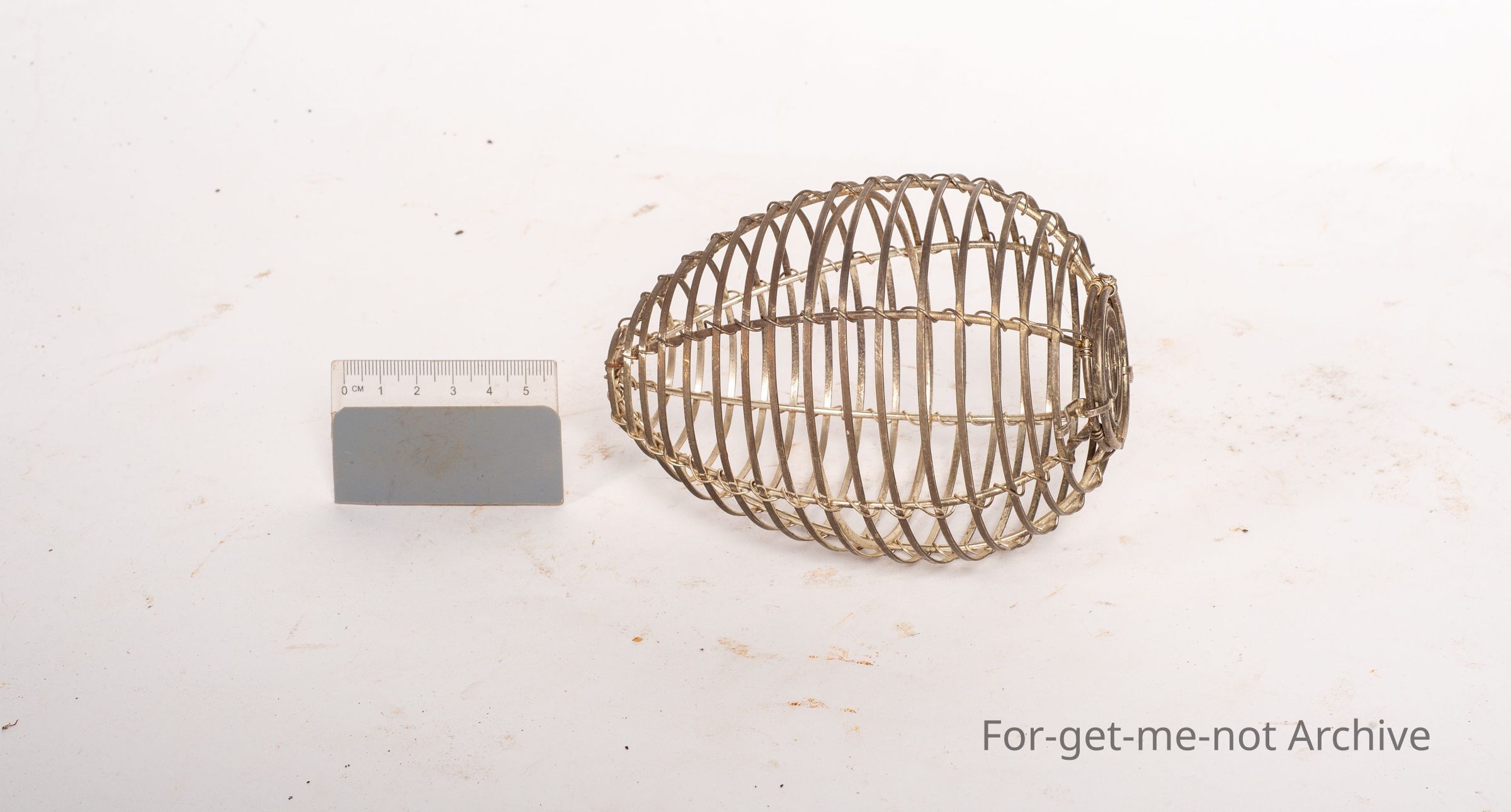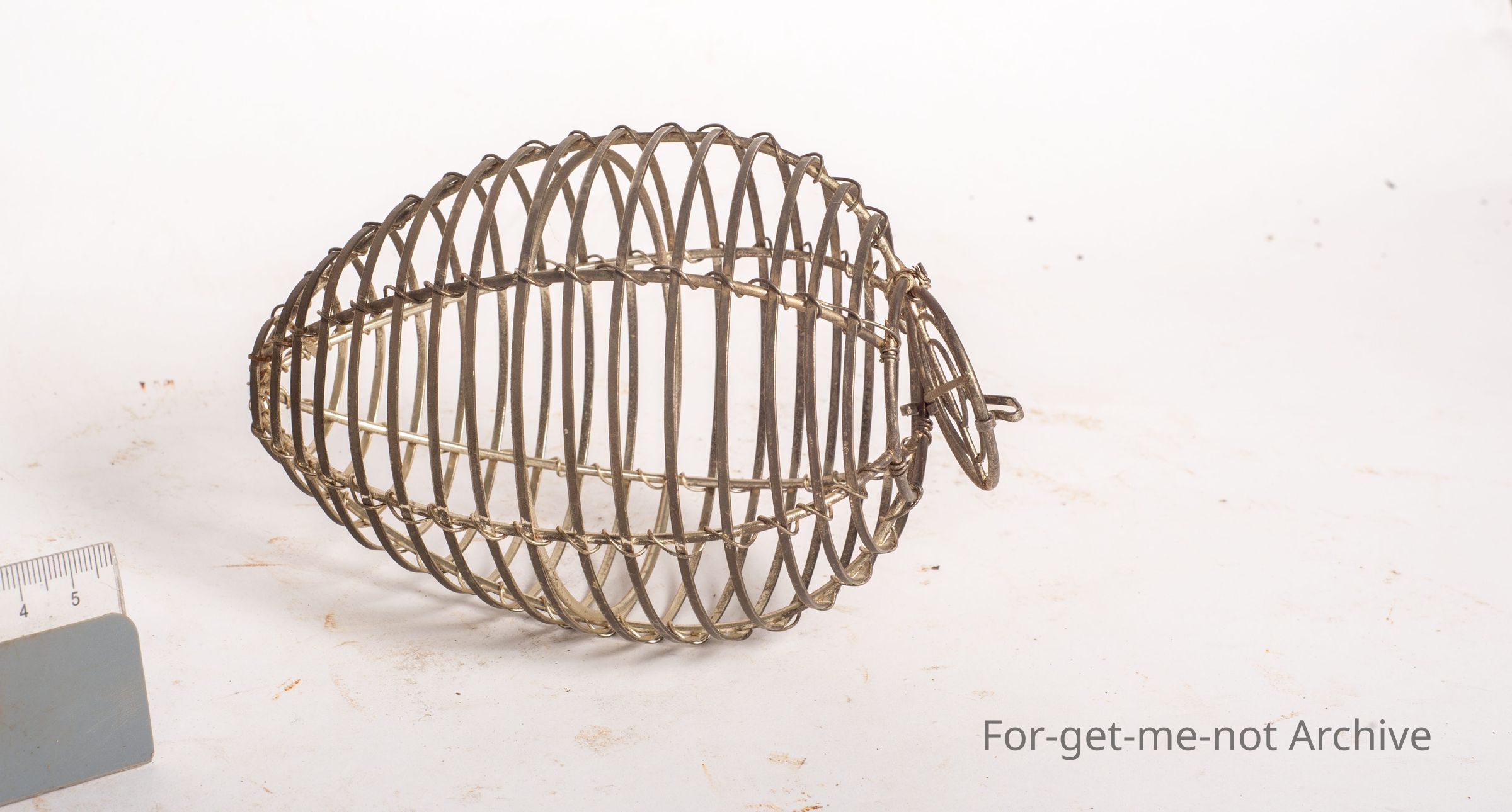 This is a beautiful piece in the shape of like a large Easter egg. Little trapdoor base at the bottom. The purpose of this was to fill it up with herbs, like thyme or bay leaves or anything. It was thrown into the big saucepan of cooking and the flavour dispersed in amongst the goodsCollection