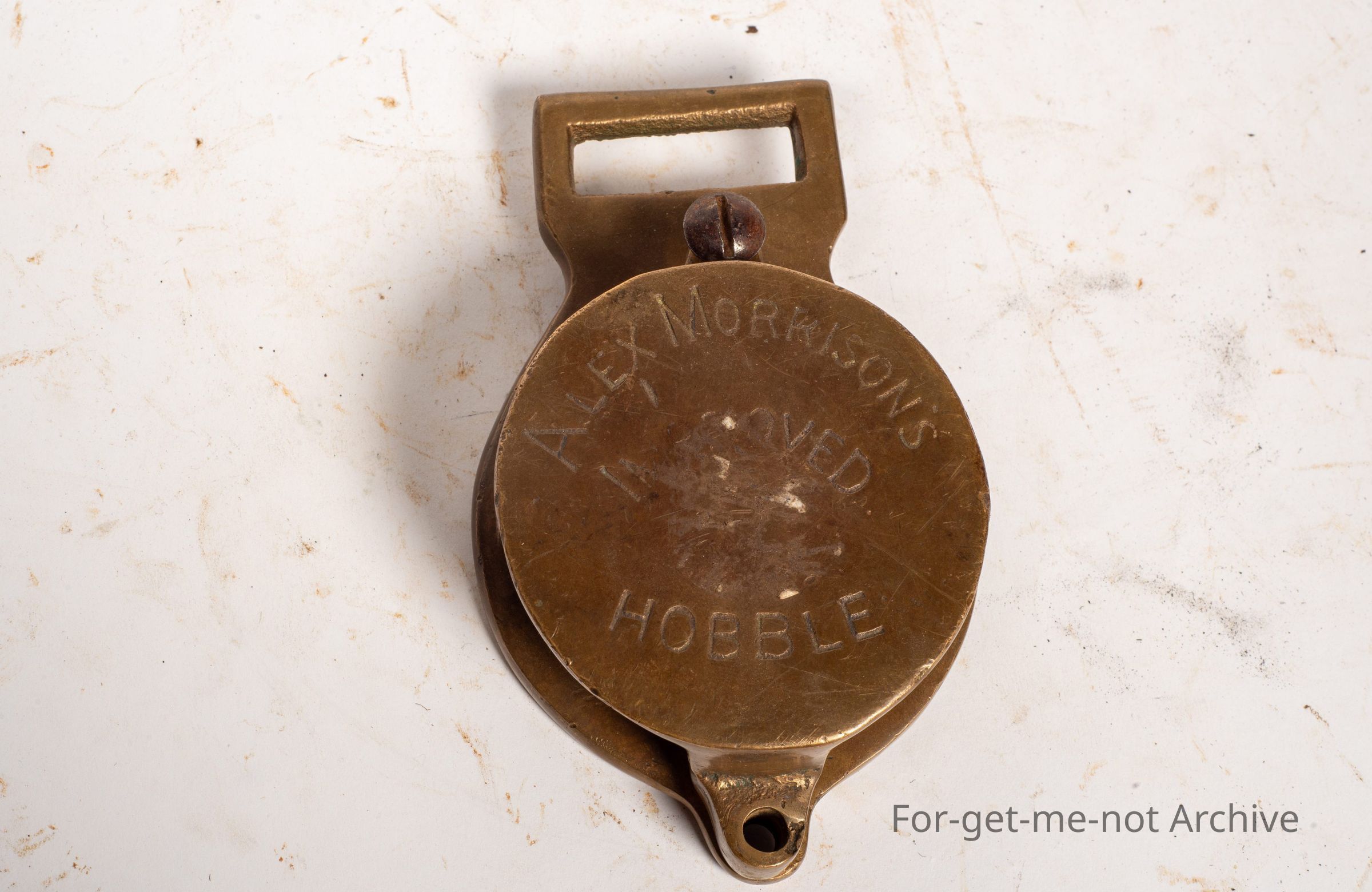 This is a hobble designed by Alex Morrison, roughly 18 95. Worked on a pea piece of rope that circled a pivot in the centre and every time the horse took a step, it worked against one another to, restrict the movement of the horse.Collection