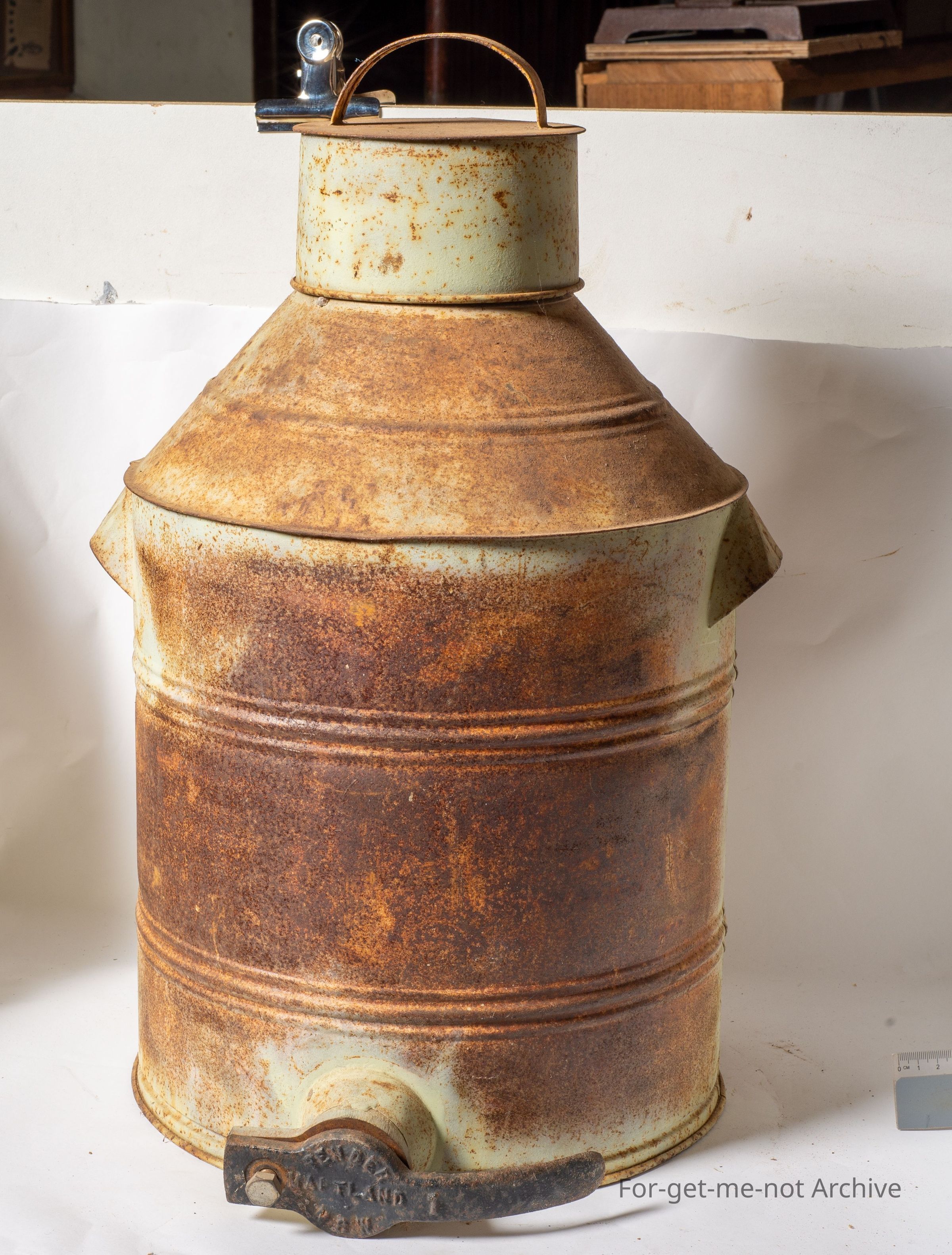 This is a lightly made tin honey dispenser, which would have possibly been on the counter of a country store. It's made in Maitland, New South Wales on the cast handle of the tap. Has its original lid handles. Still in reasonably good condition for a early country, grocery store shop. Impression on the car sandal. Penda, Maitland, New South Wales.Collection