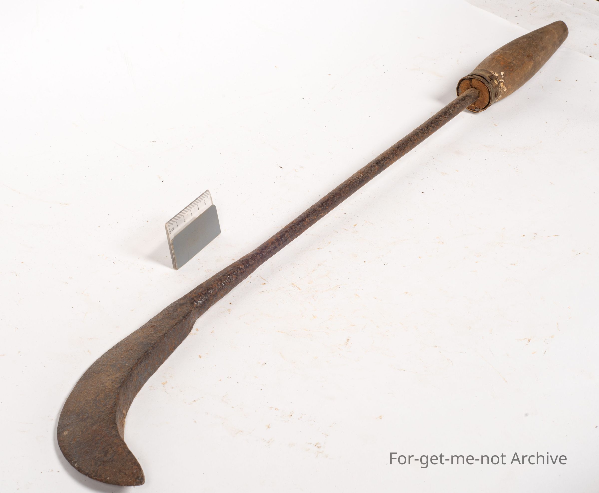 This is a searing iron for large animals, such as cattle or horses, to sear the tail off. Not a practice commonly done on large animals anymore. This is a very rare one being for a large animal,Collection