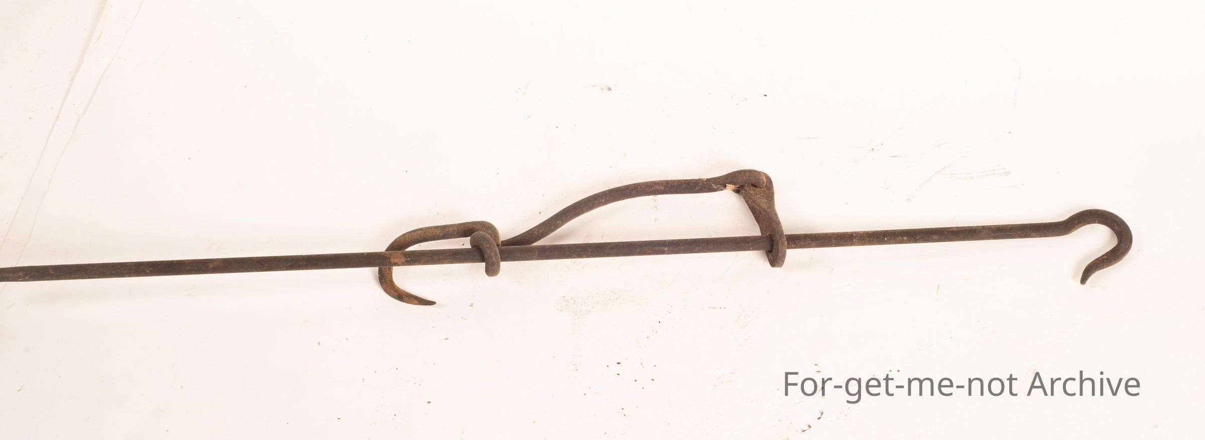 This is the hook which was adjustable for height from the fire. These hung off a fireplace crane with the name was trammel. They were commonly blacksmith made or bush crafted pieces. All different shapes and designs. All worked extremely well. Reasonably hard to find today.Collection