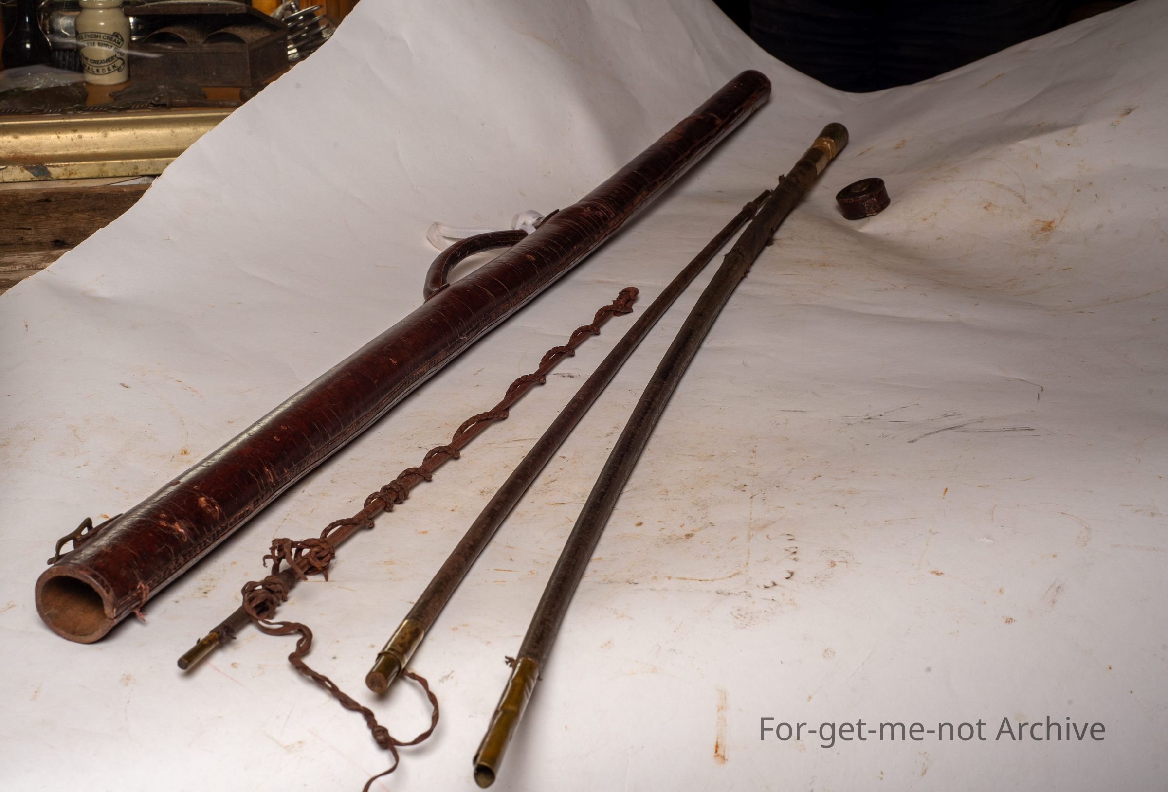 This is beautifully made, stamped W R Veirs, possibly made in Australia. This whip would be used for a 4 in hand group of horses with a long reach, delicately made, beautiful leather work, brass fittings from the handle for the extension. Even though it needs, some, restoration work. The whip collapses down to fit a leather carry caseCollection
