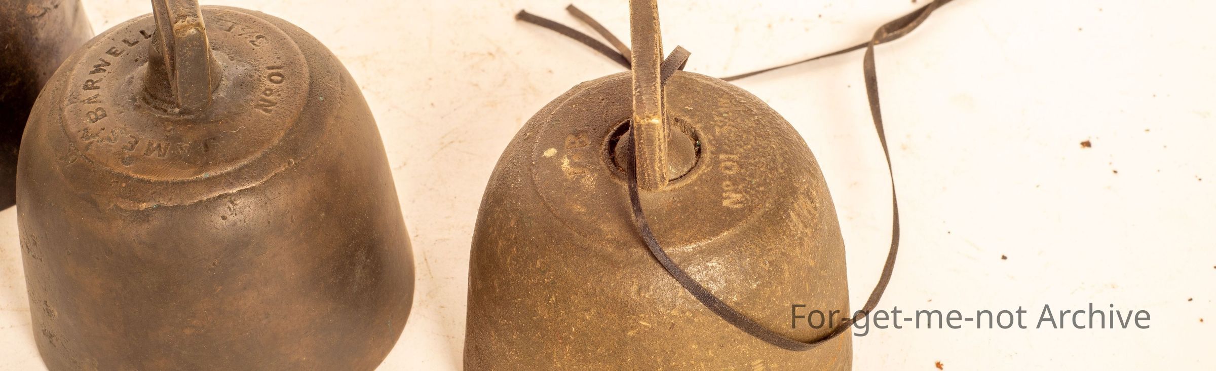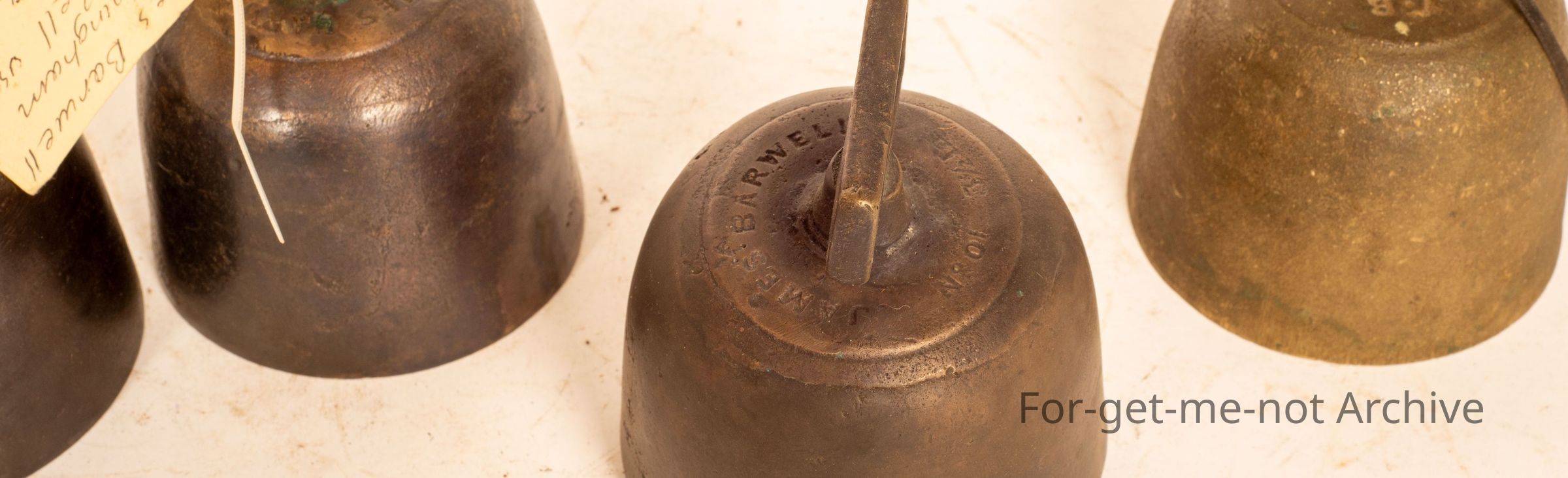 This is a group of 4 cup bells, cast brass. These are horse bells, far scarcer than the ordinary bell.