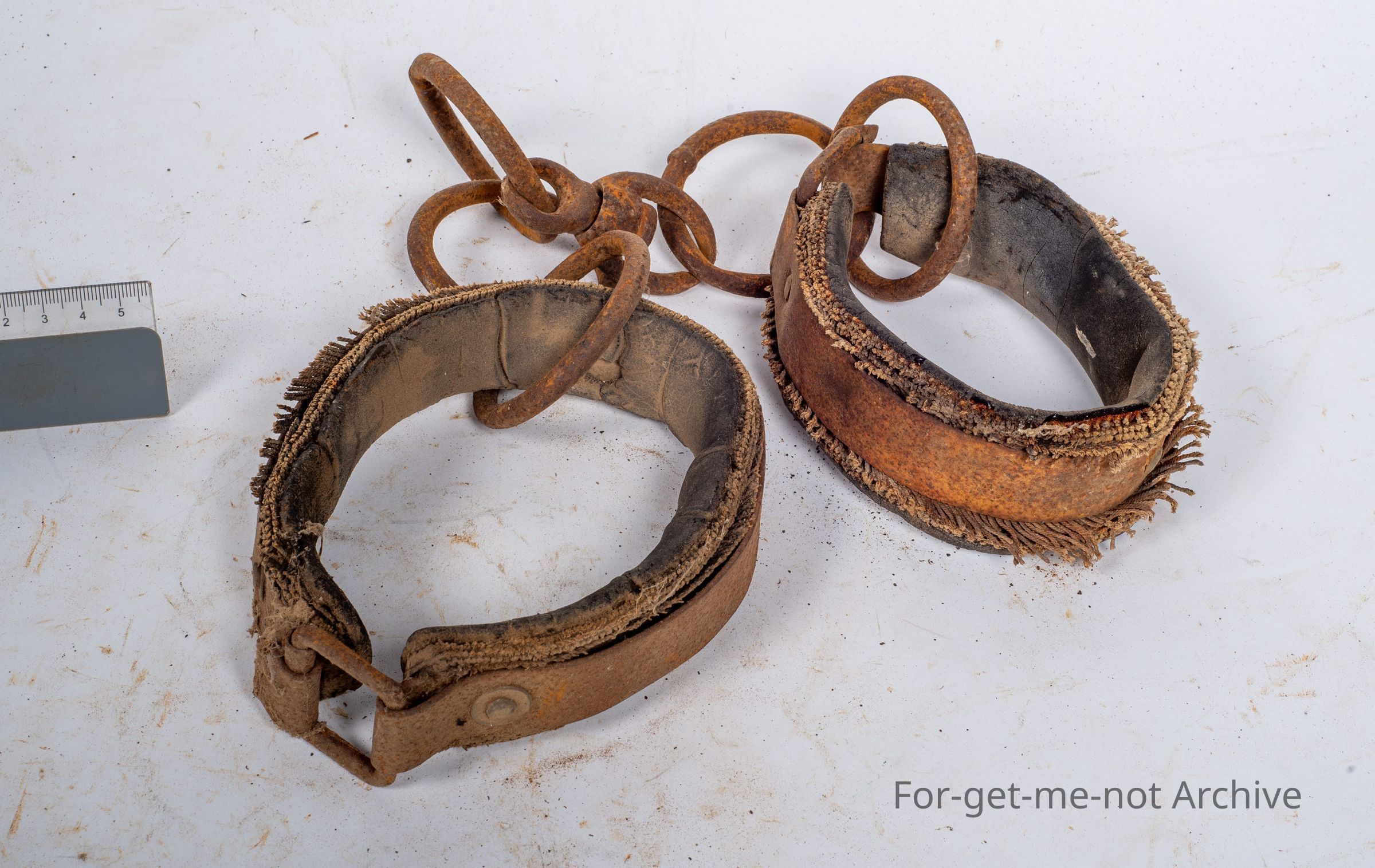 These are a pair of puddles for a horse. These have been manufactured from discarded car tires with a piece of hoop iron around the outside to keep them strong. The usual 5 links with a swivel, very standard,Collection