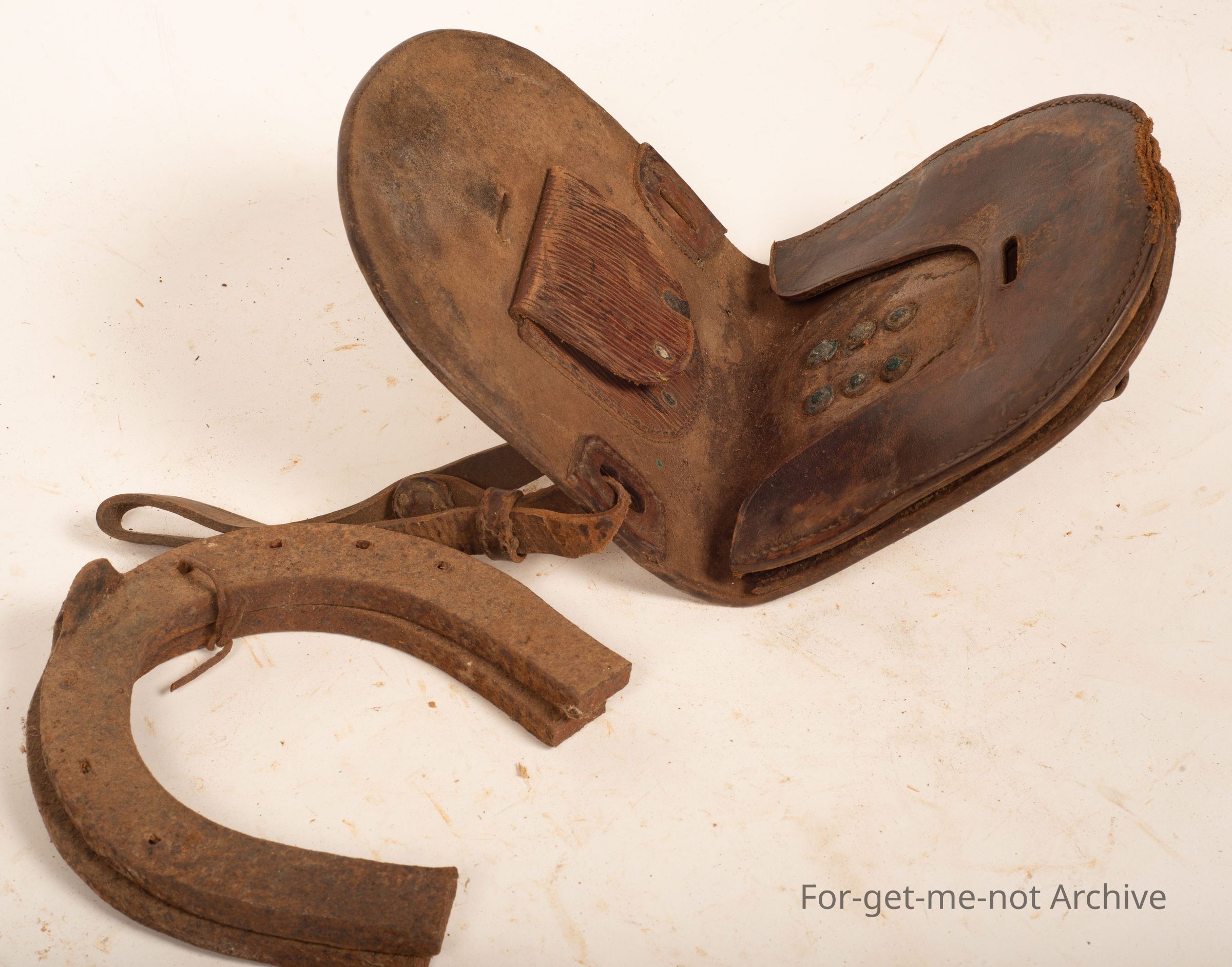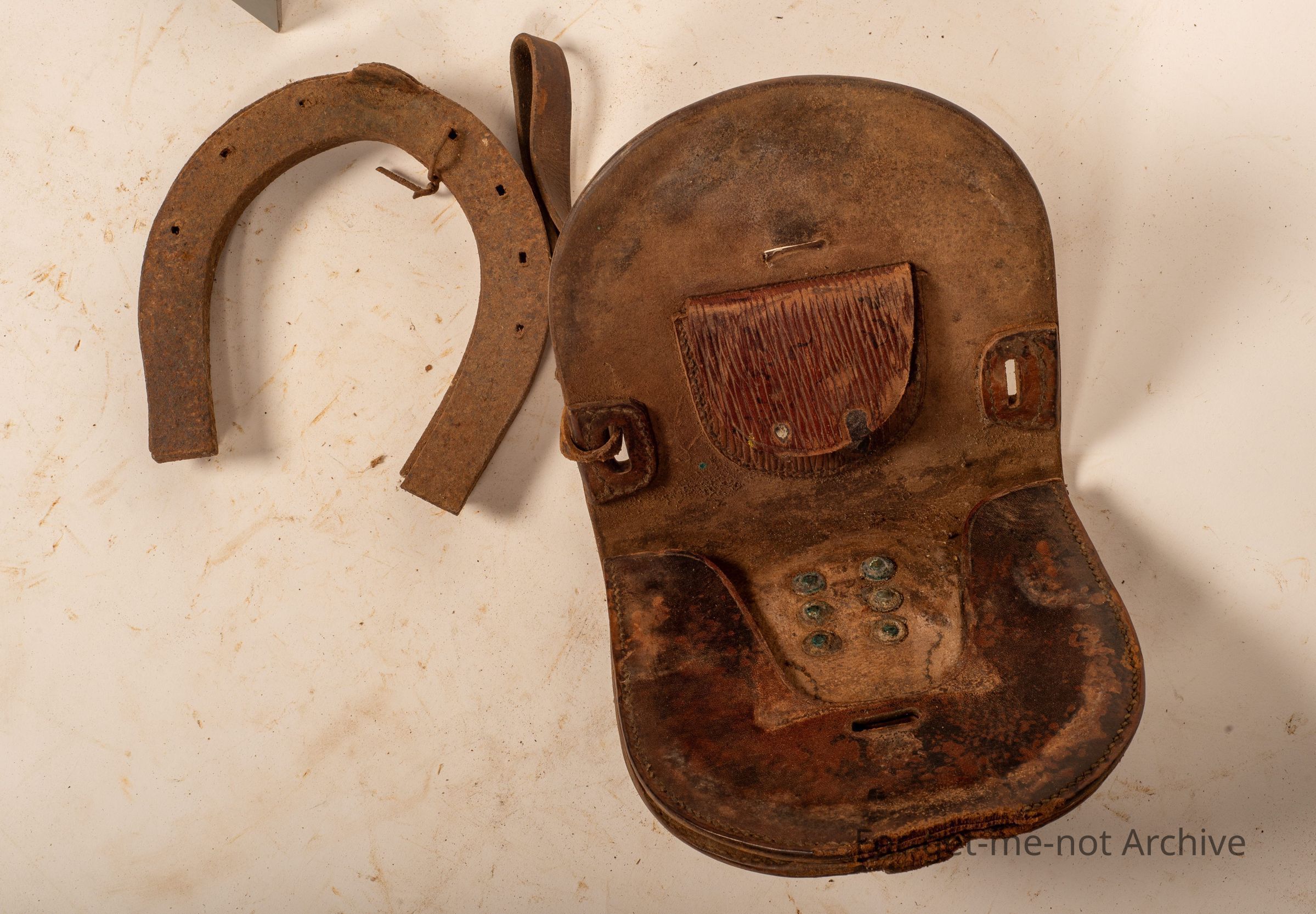 This is a small pouch that would have been tied to a saddle. It held 2 spare horseshoes, little pouch, in between, possibly for nails. It's stamped 1930, made by possibly Oakman, in very good order. Quite rare. These were used a fair bit by the military.Collection