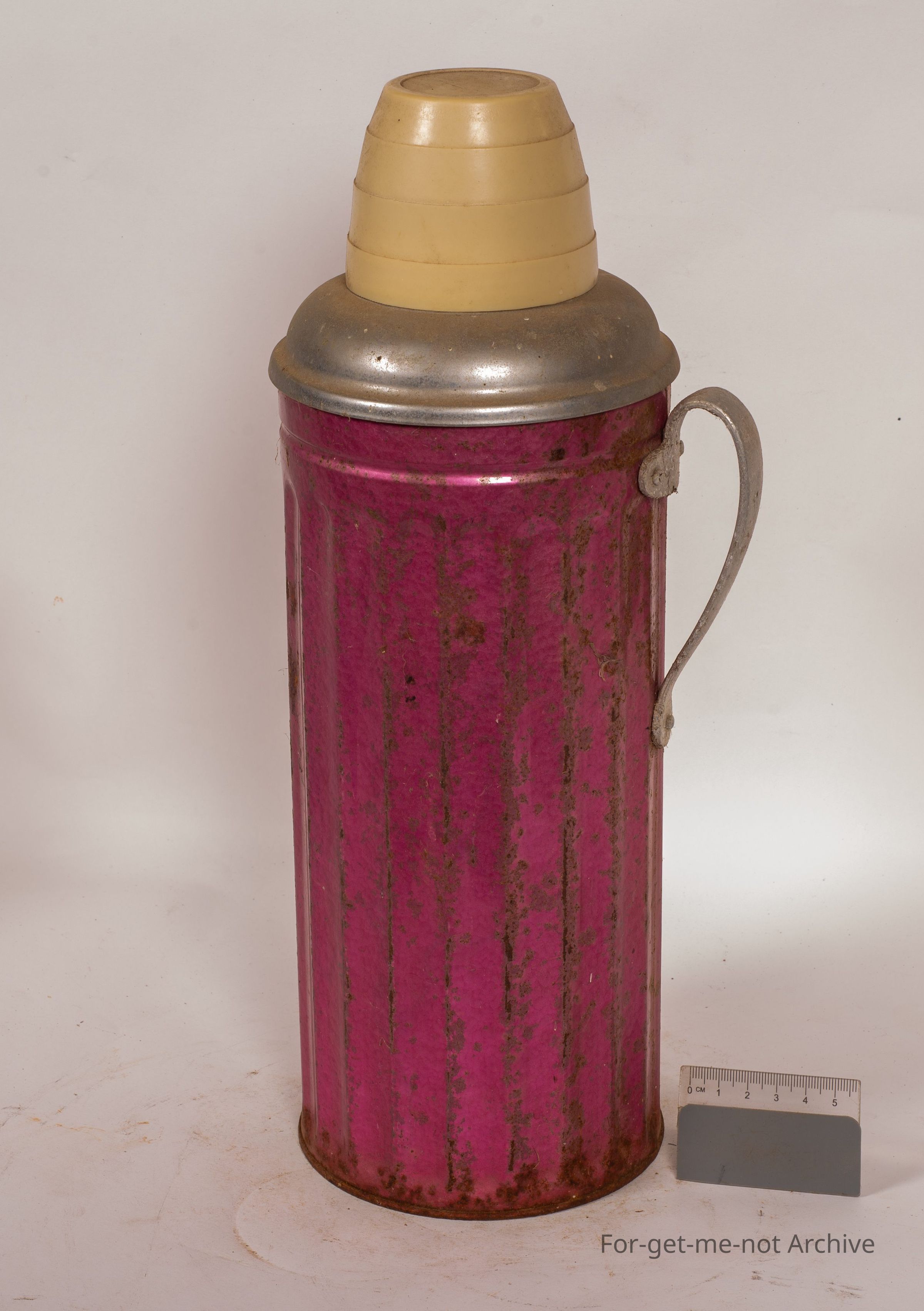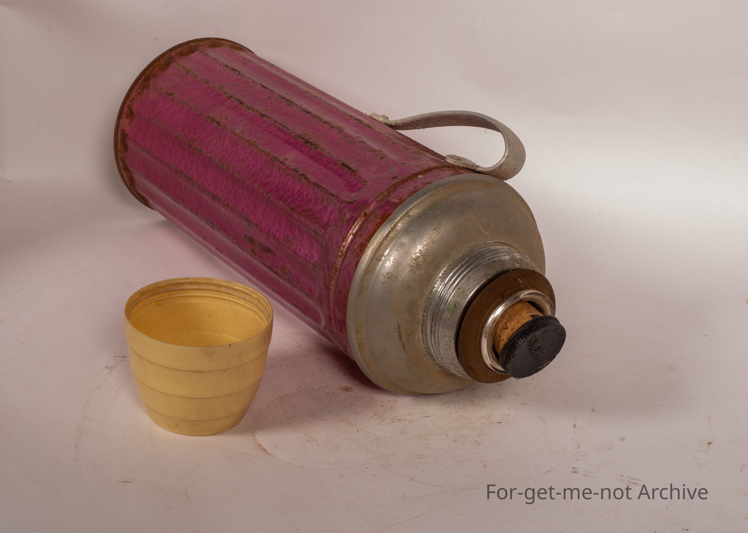 This is a rather large freezing hot bottle made in Hong Kong, like a thermos. The cork in it actually says thermos. It has the cork and the cup for drinking from on top. In reasonable condition.Collection