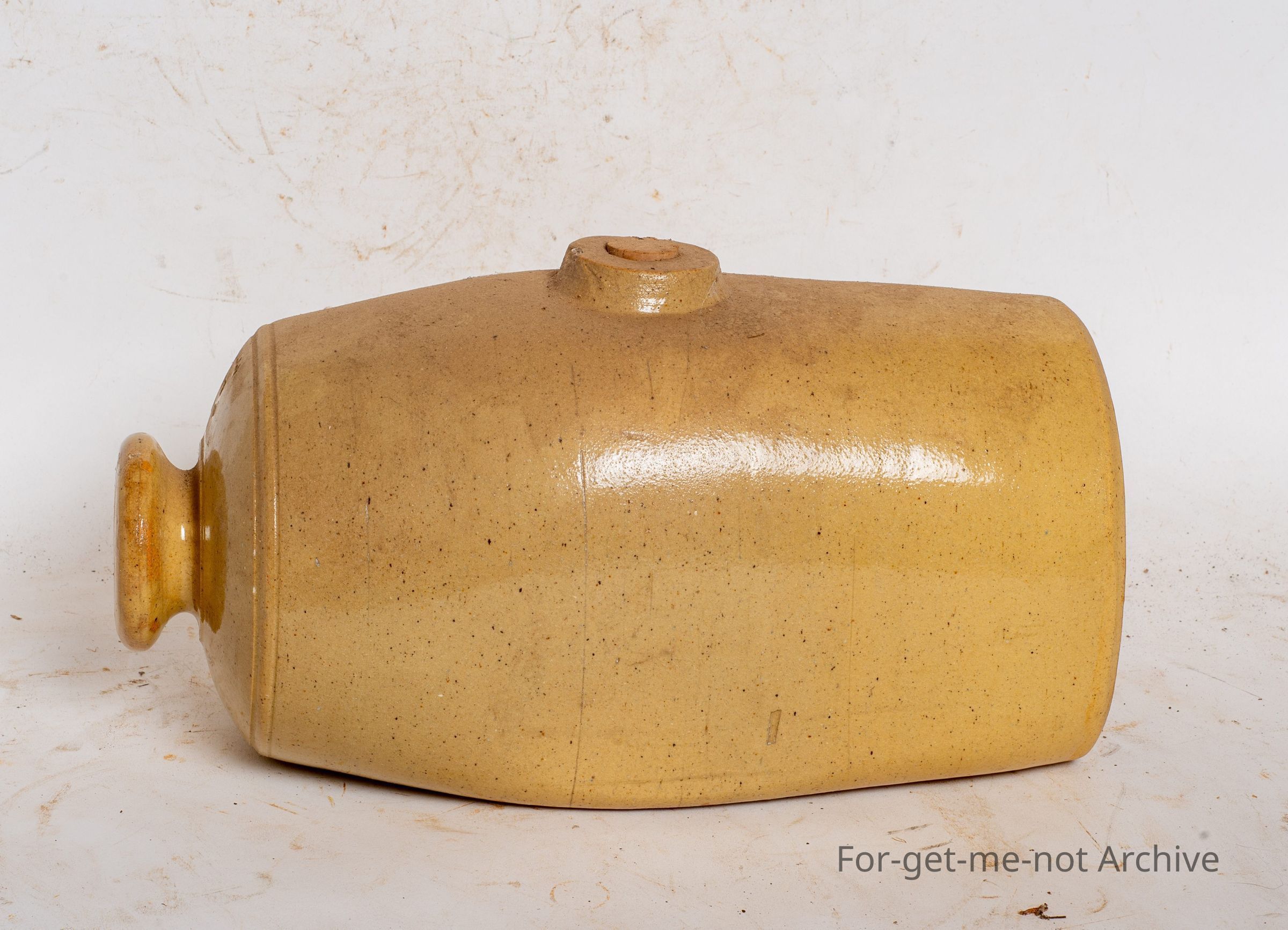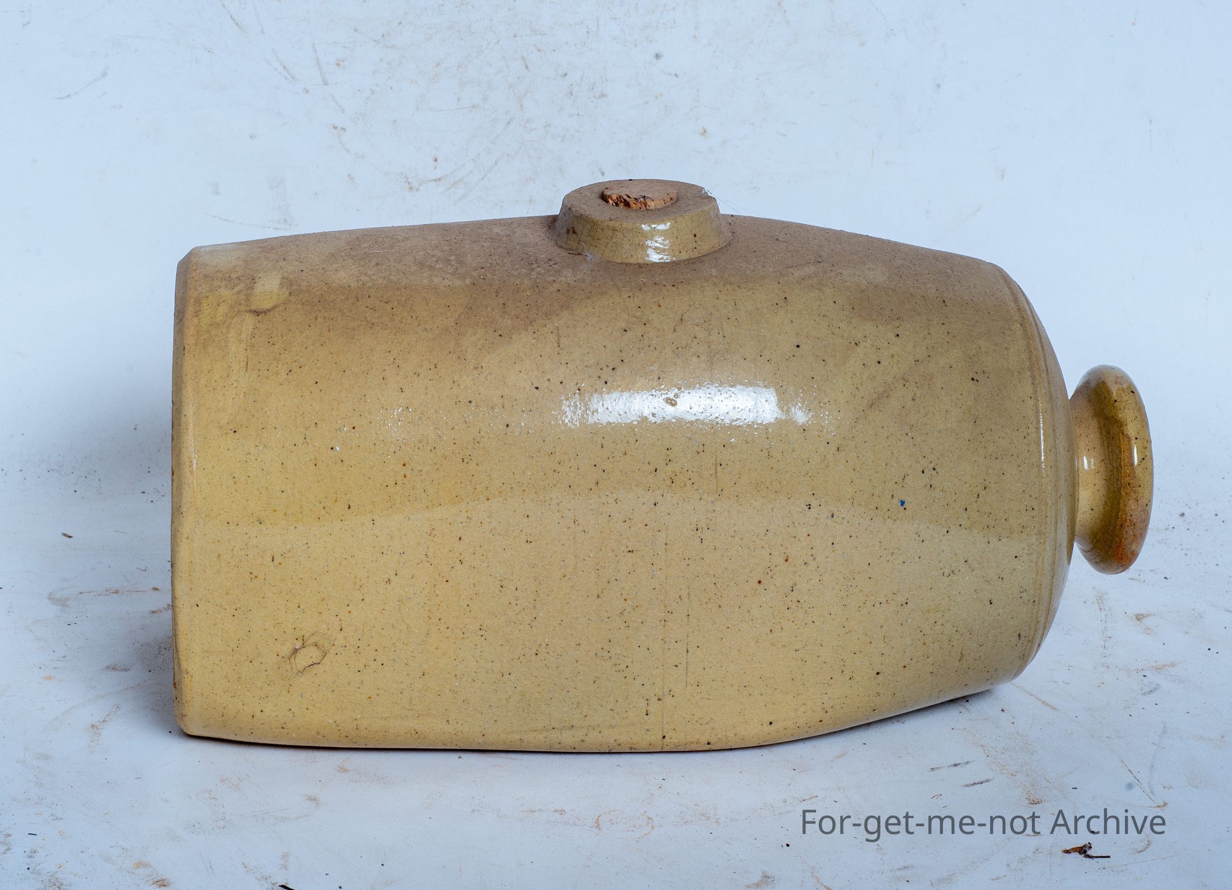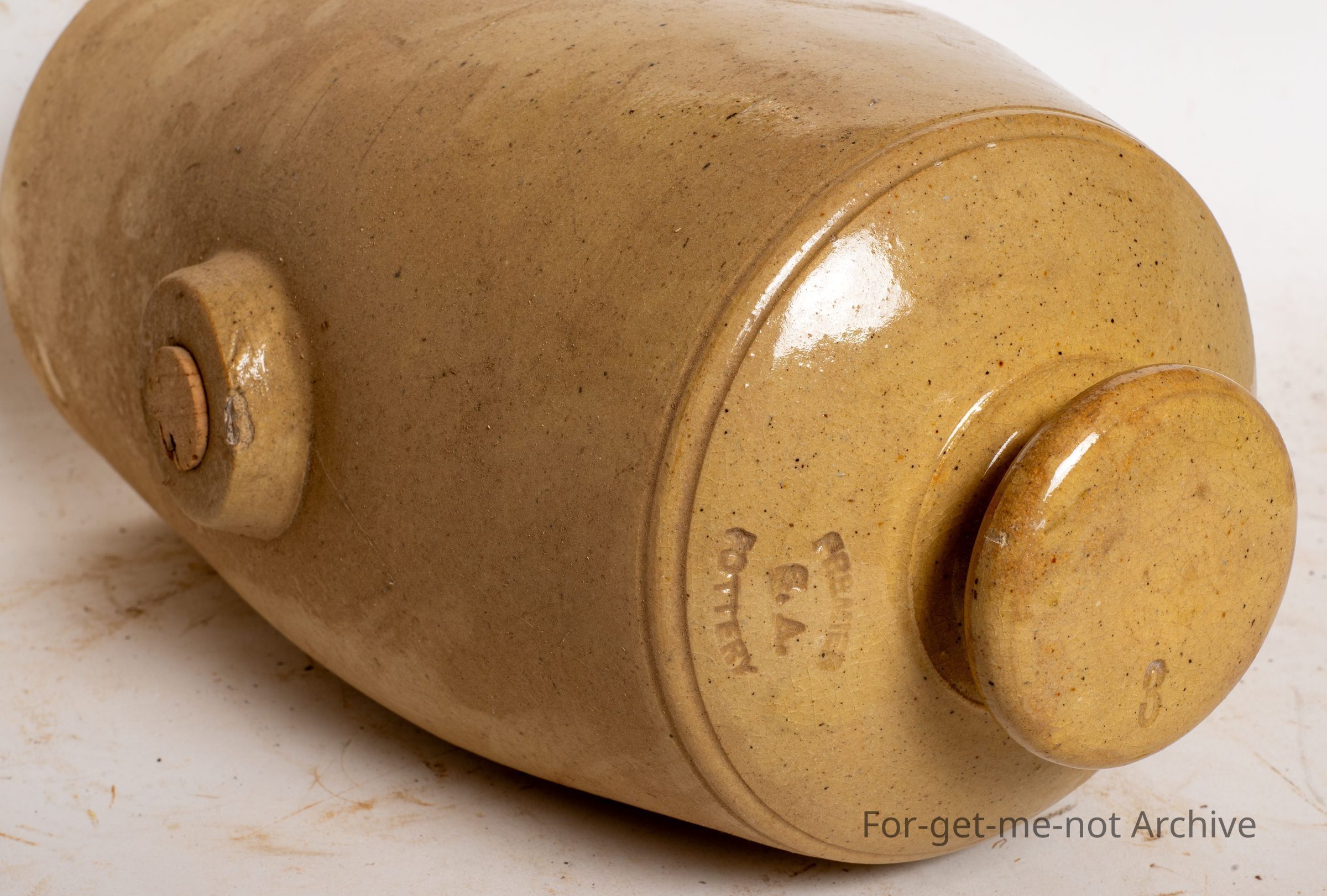 This is rather a large, foot warming hot water bottle made by Premier Pottery South Australia, which was Costa. This size is rather a hard one to find. Got the plug hole in the side and, a knob at the top.Collection