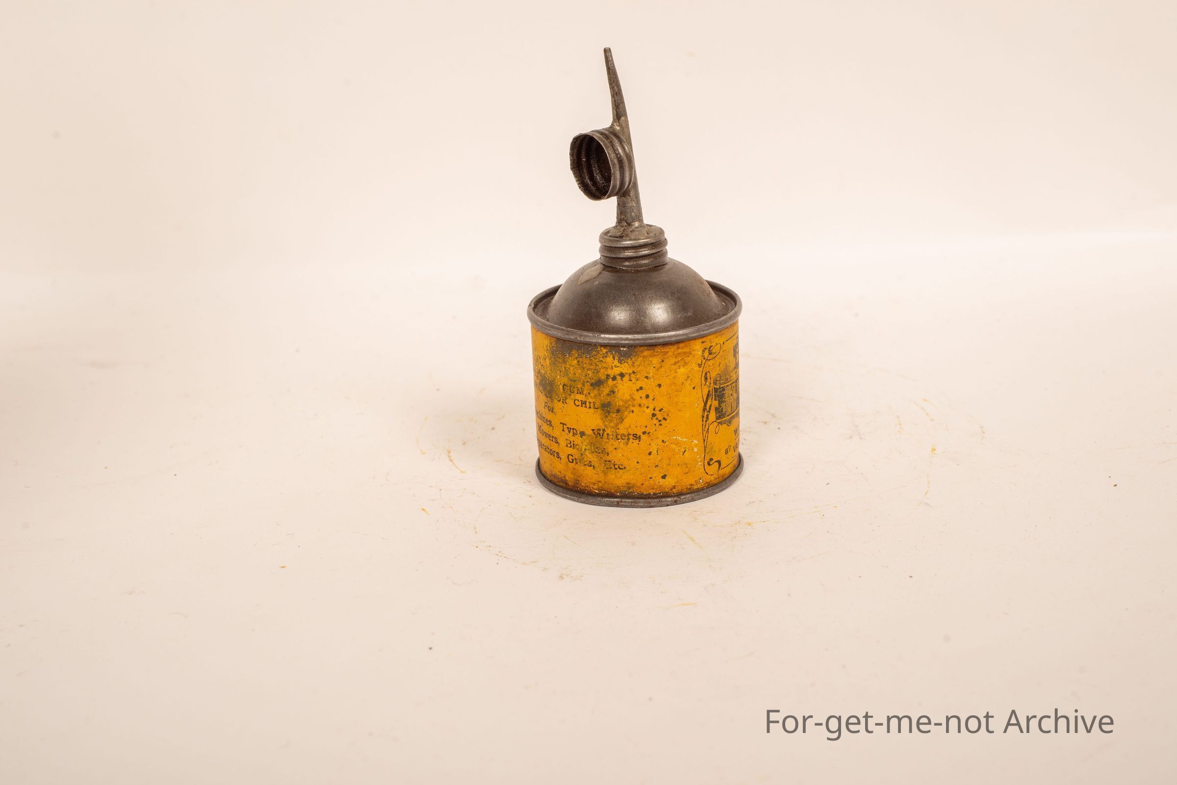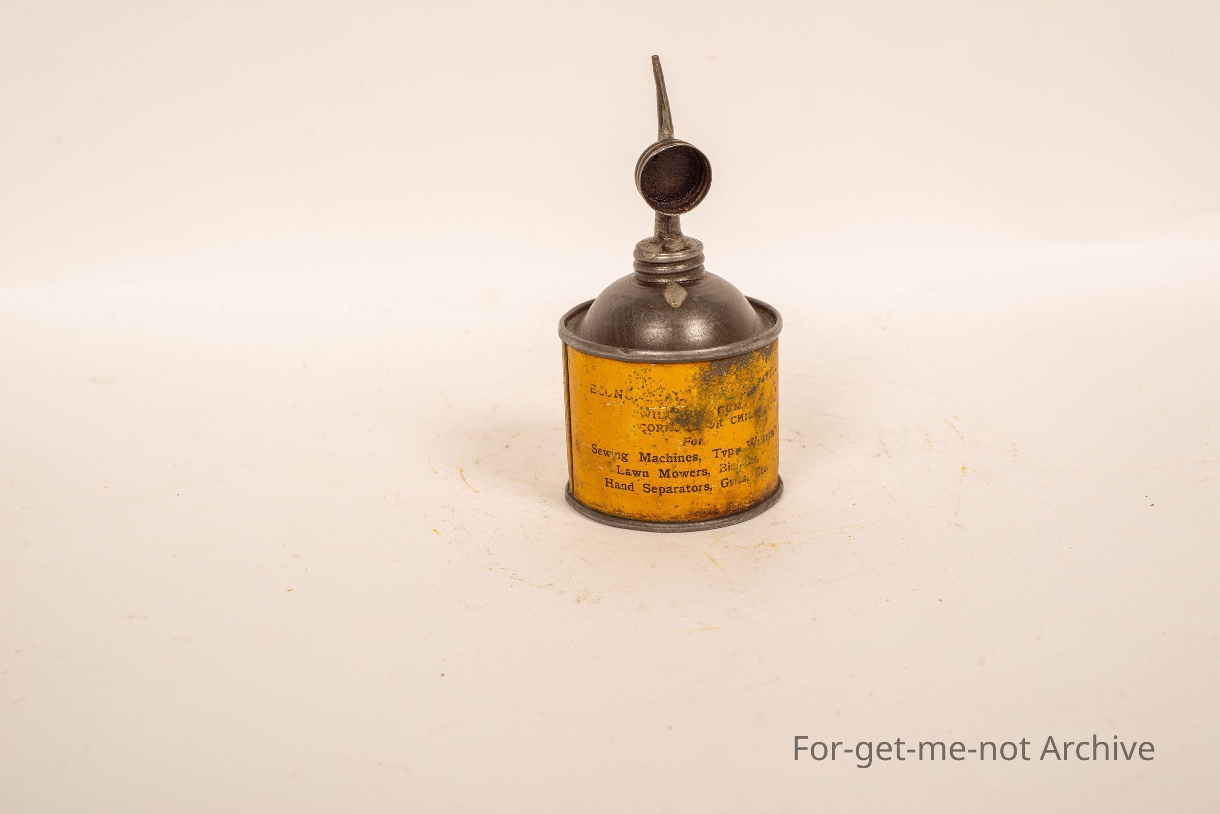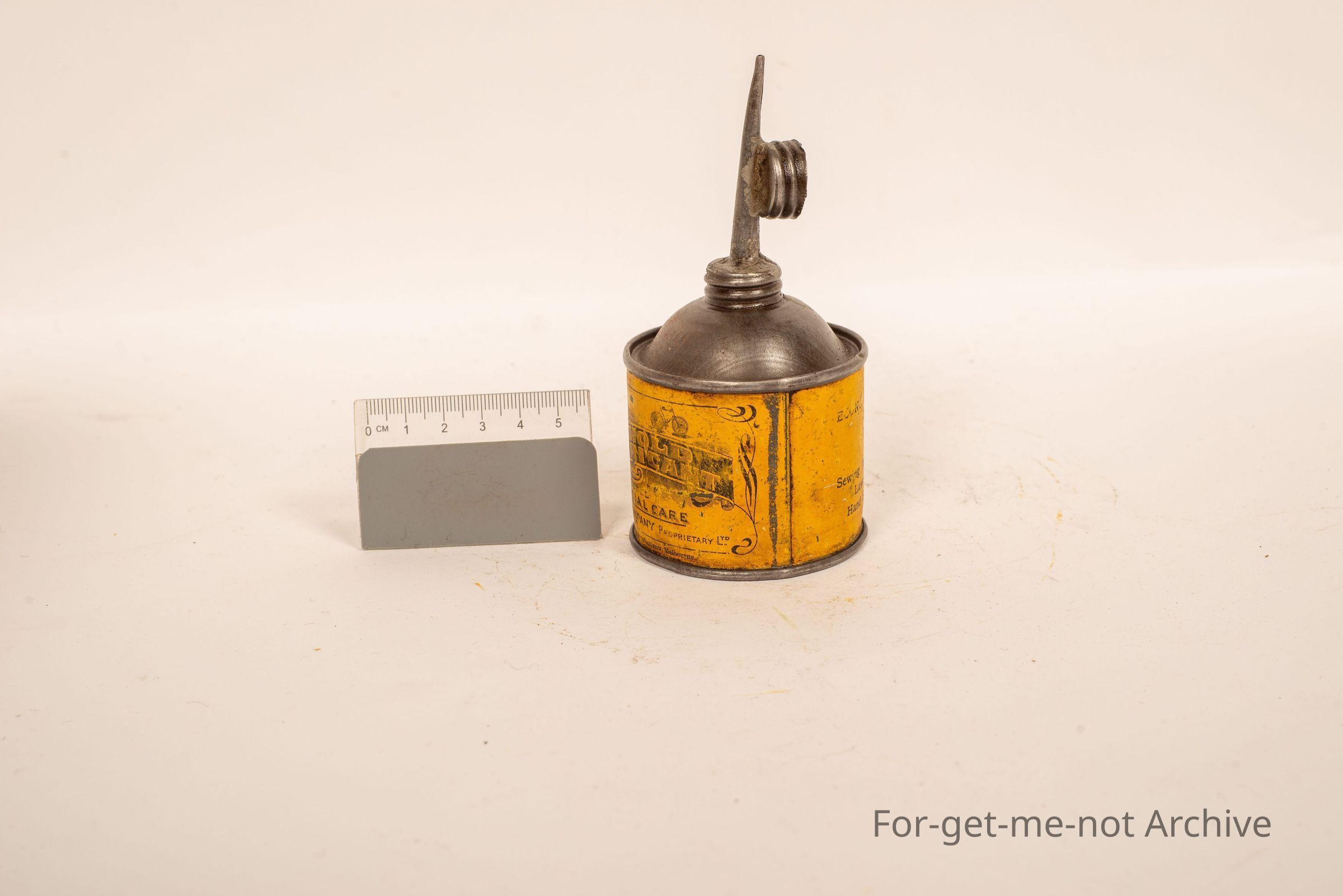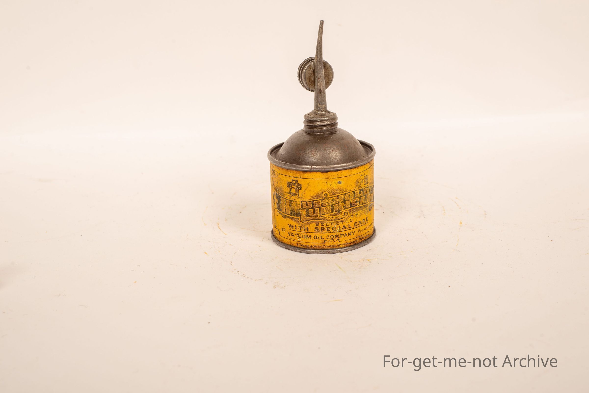 Household lubricant by Vacuum Oil Company, Melbourne. Very, very early tin with an old early time push bike, sewing machines, lawn mowers, hand separators, etcetera.