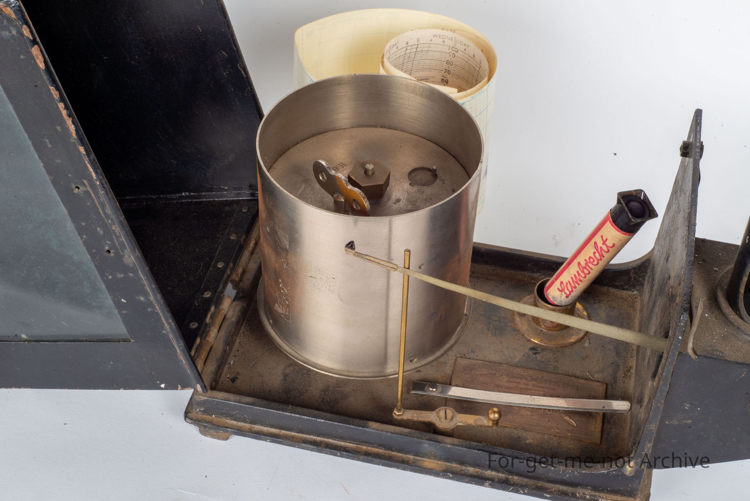 A 7 day hygrometer. A hygrometer is a device that measures humidity, and a hair hygrometer uses a strand of human hair or synthetic fibre as the measuring element. The hair strand expands or contracts as the humidity changes, and this movement is used to indicate the humidity level, typically as a percentage.Collection