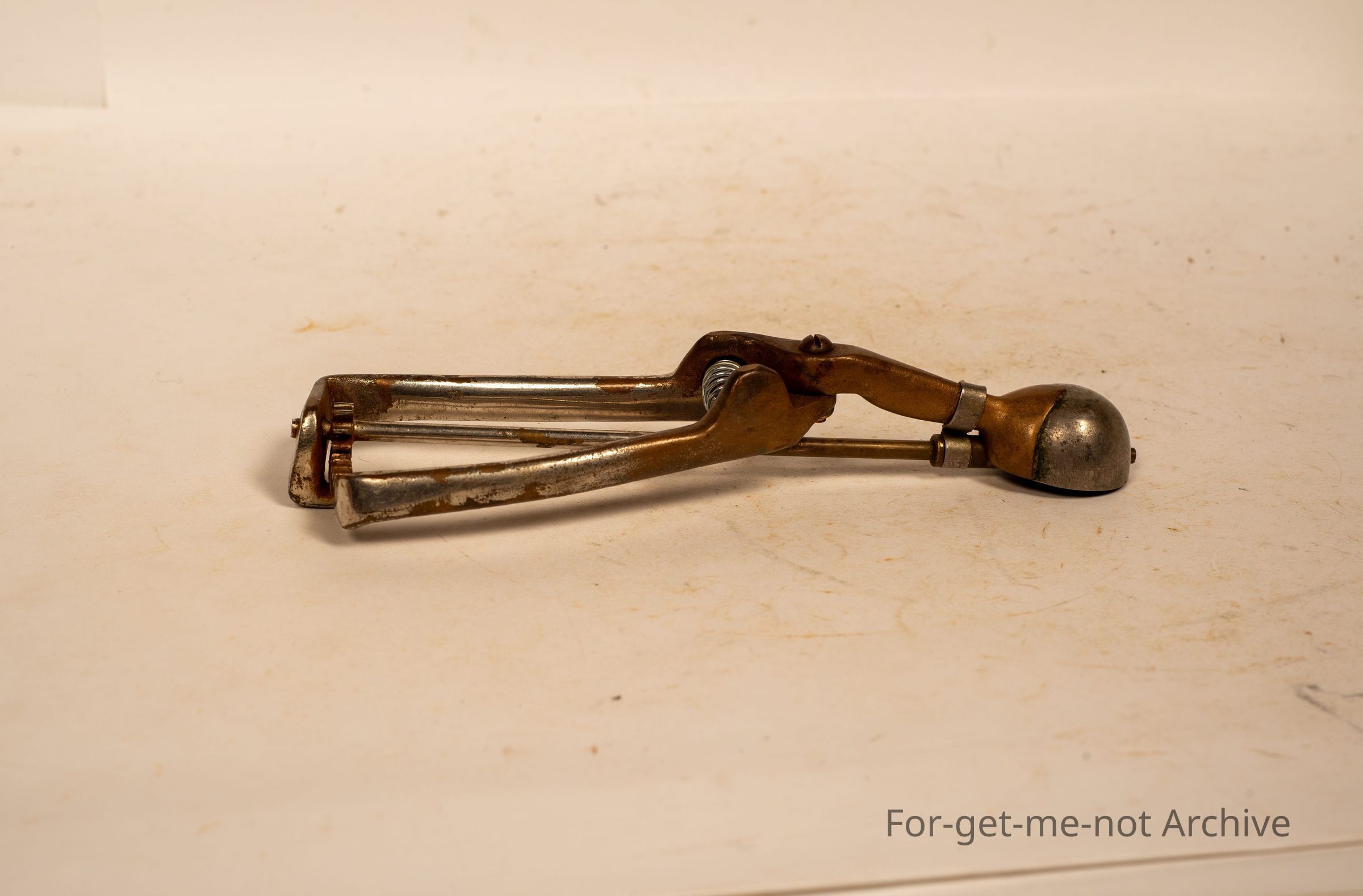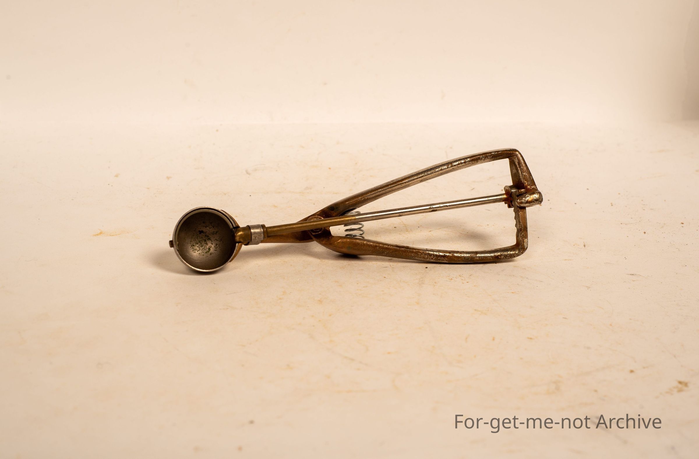 Here's, a brass, very small size ice cream scoop, been nickel plated, very warm, but still in good work workable condition