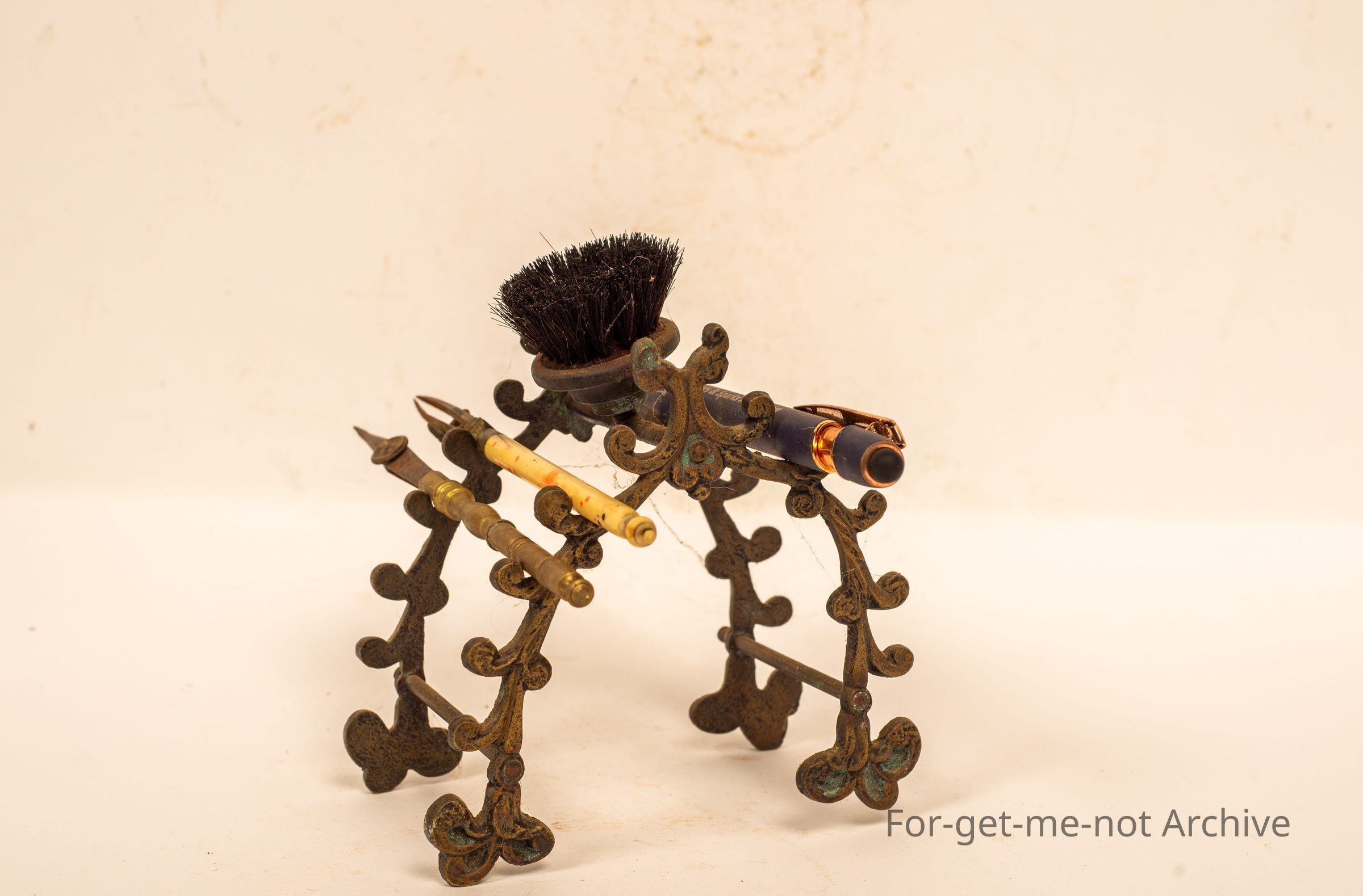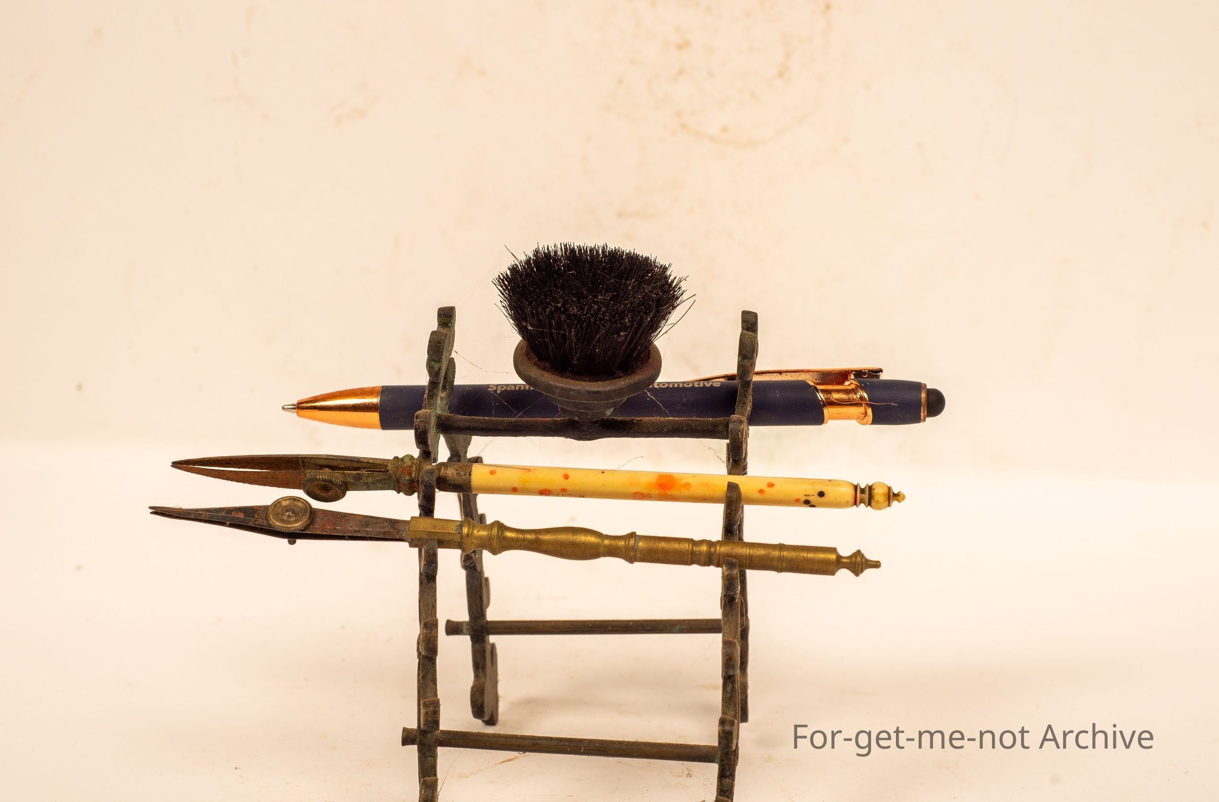Another ink, pen rest With the capacity to hold 10 pens at once with the ink brush mounted in the top. 3 various pins attached