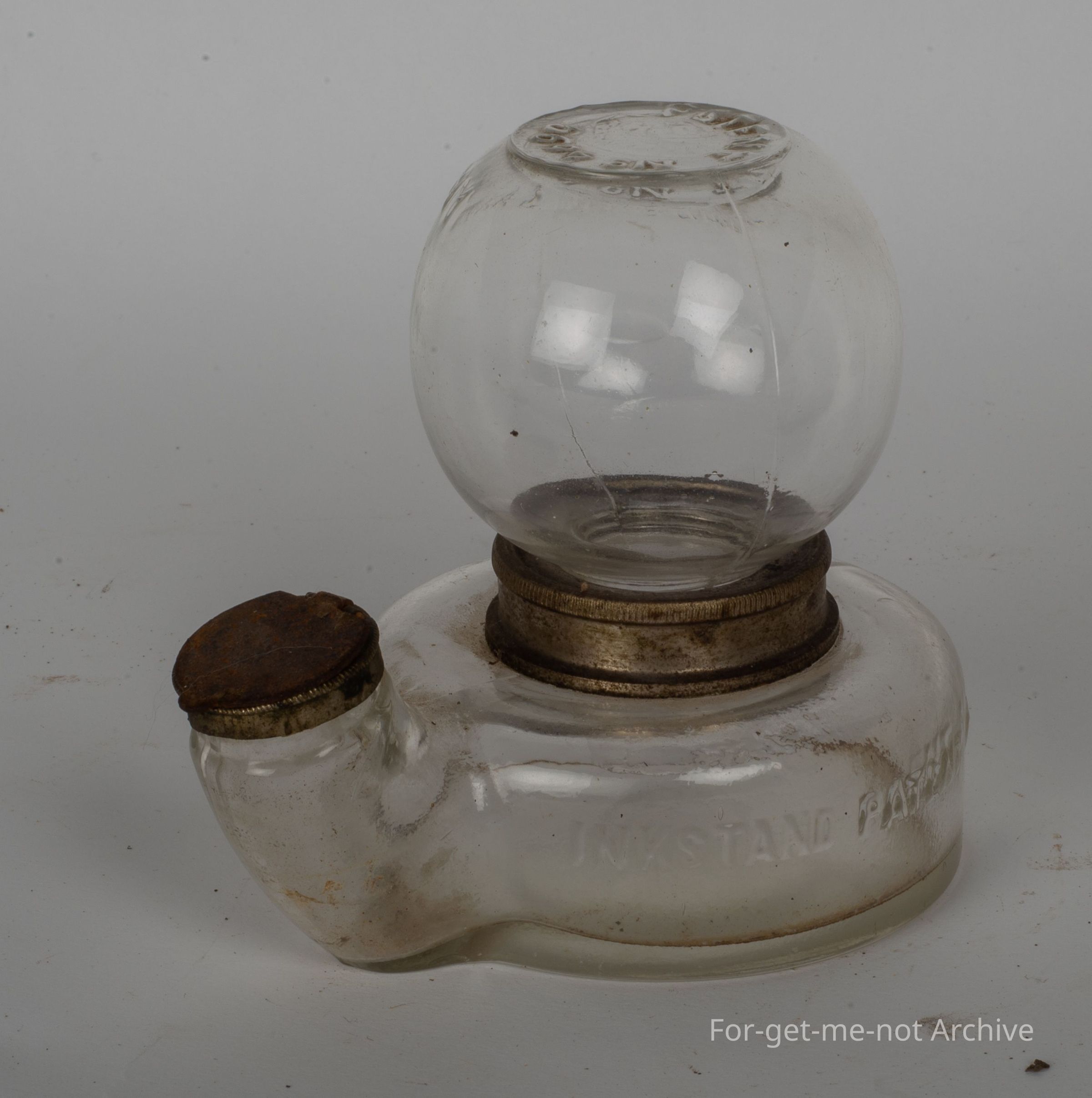 Interesting ink well as this well is patented for its ability to maintain a constant level of Ink in the well, "Made in Saxony, the Automatic constant level Inkstand patent No. 4699"Collection