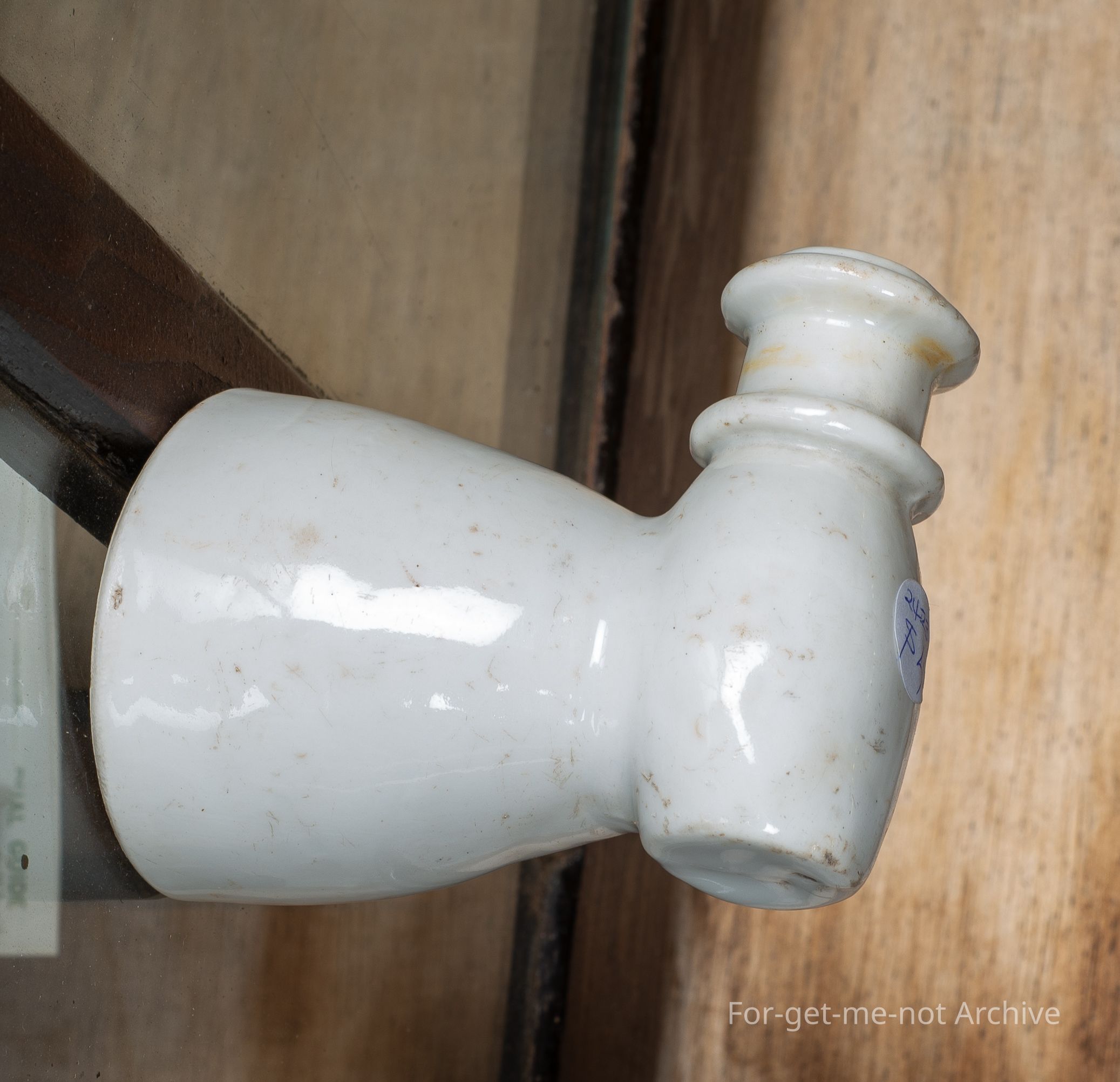 this insulator is unique as it is made to fit onto the side of a post at right angles. Also unusual as it was made in Geelong
