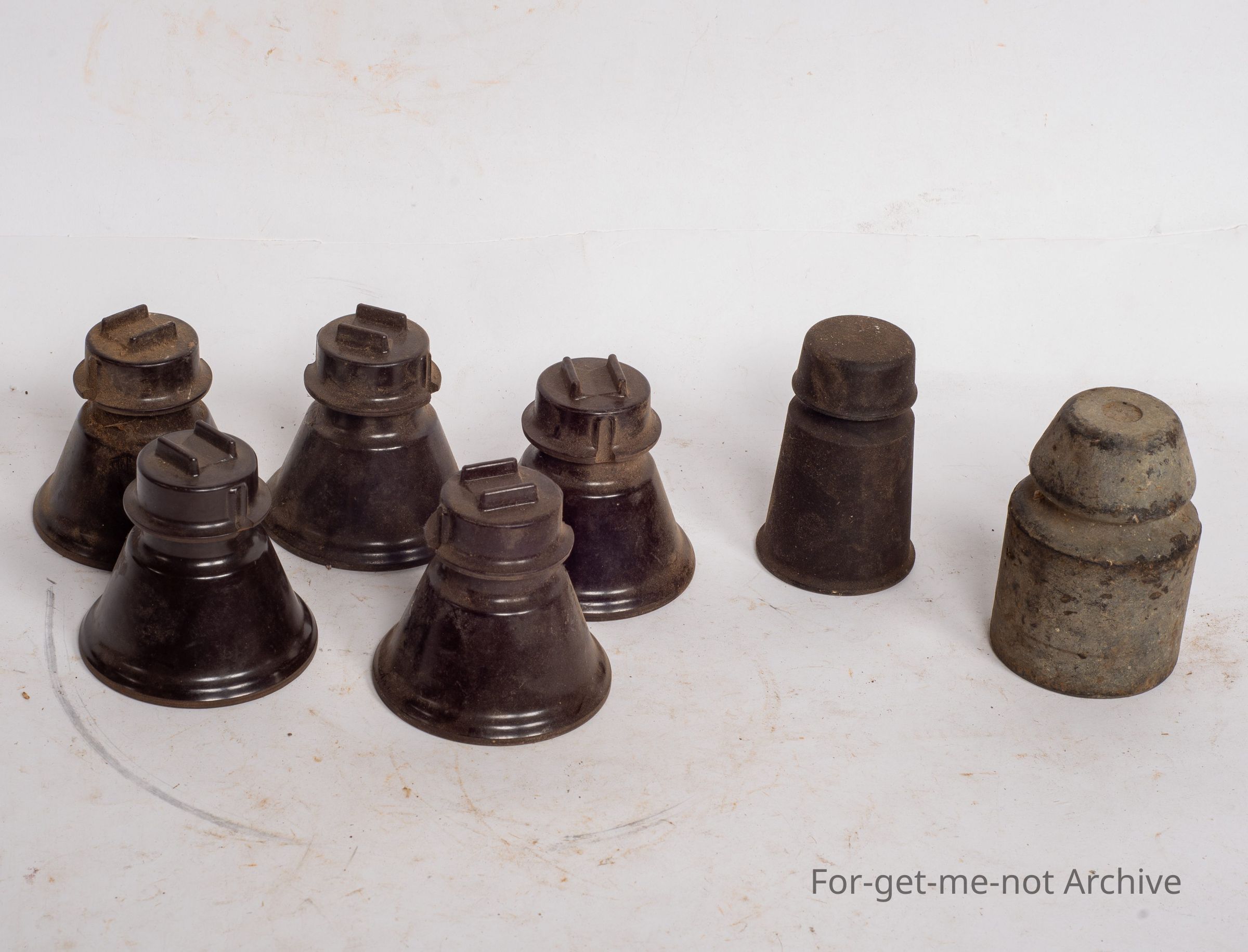 This is a group of insulators. This time all Bakelite, basically the same shape, probably not a long lived product being Bakelite, easily broken.