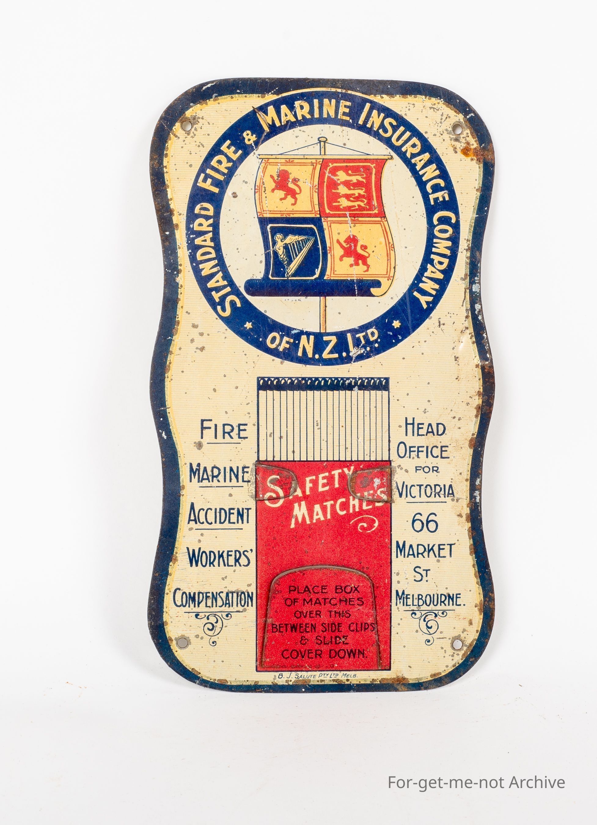 Standard Marine insurance sign that is a Matchbox holder, wall mount 200mm