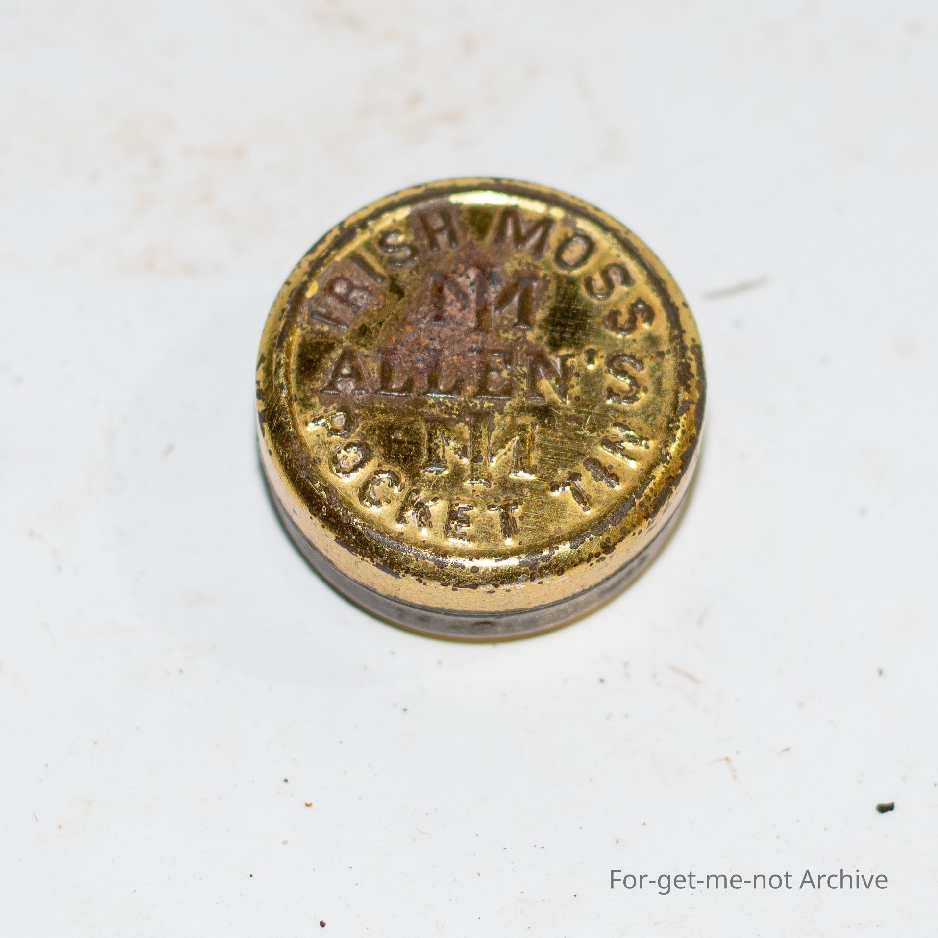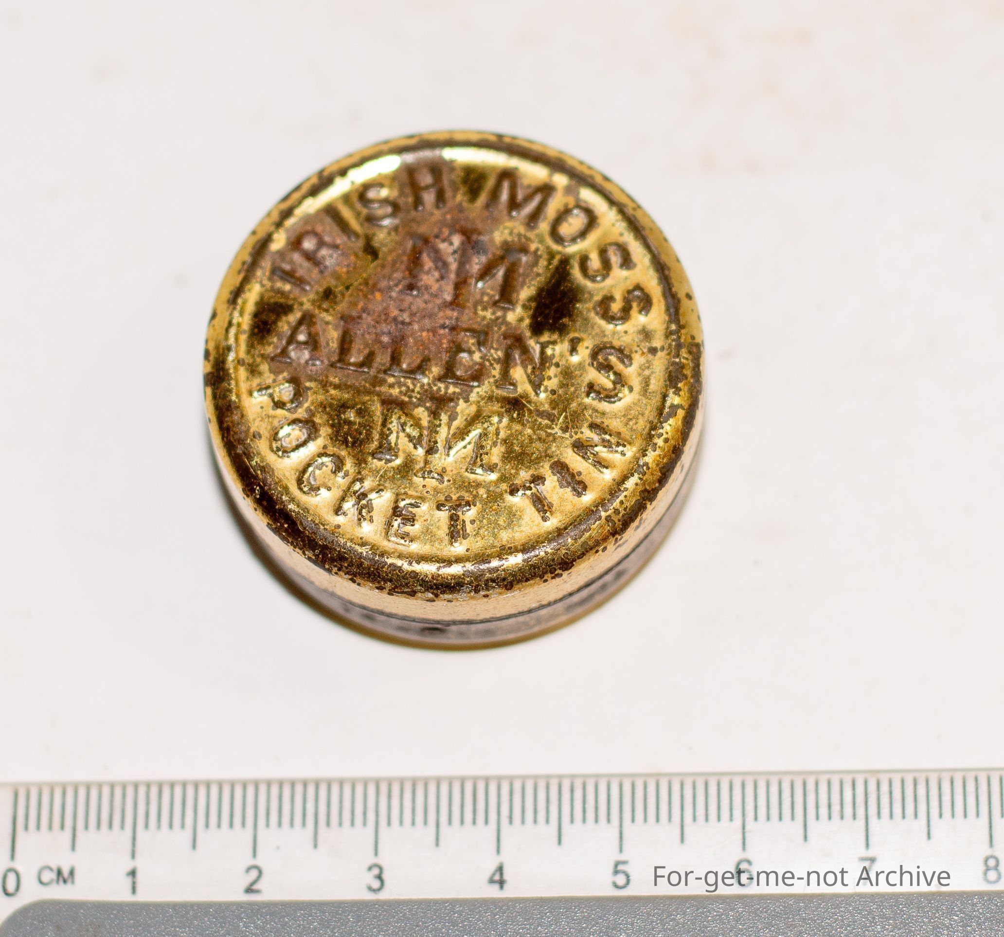 This is a small tin about 3cm across for the pocket would have only held about 6-8 Allens Irish moss