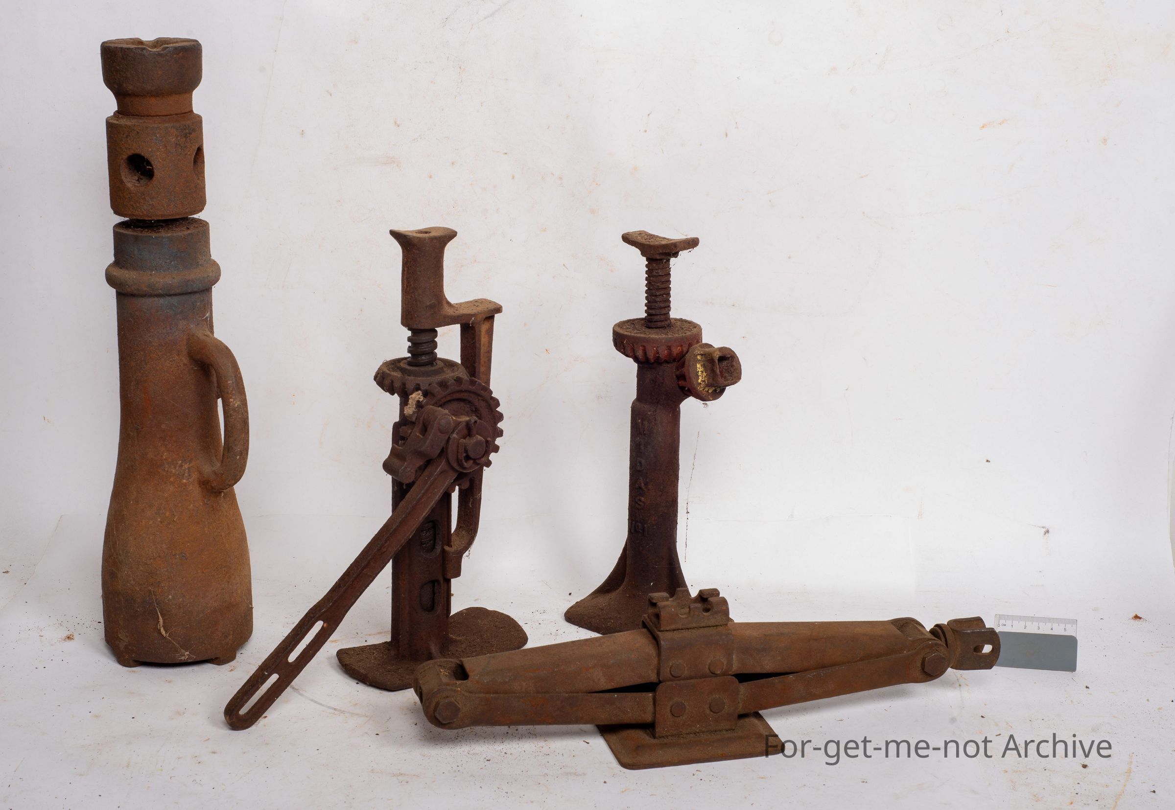 Cast iron jacks of various, mechanisms and types.