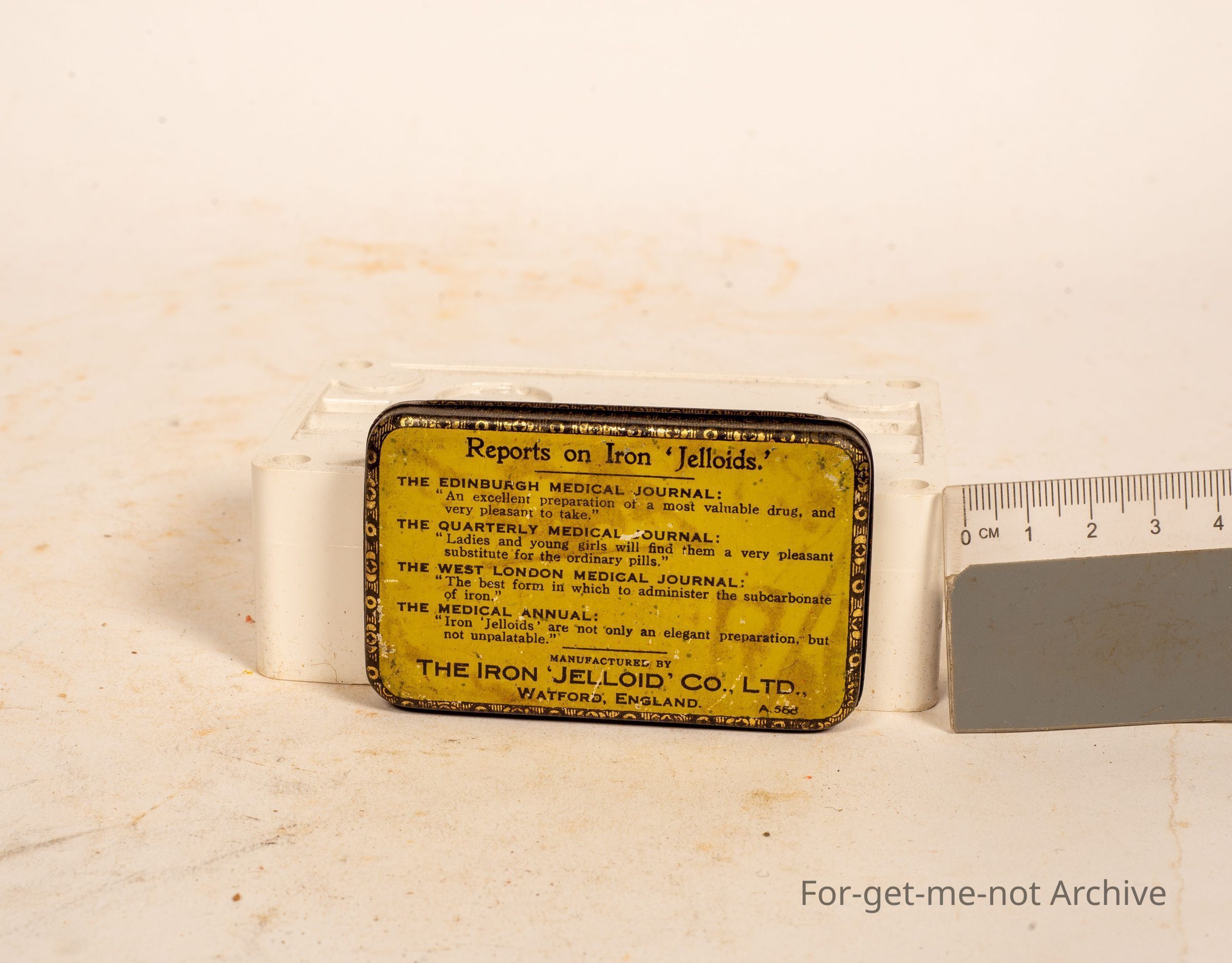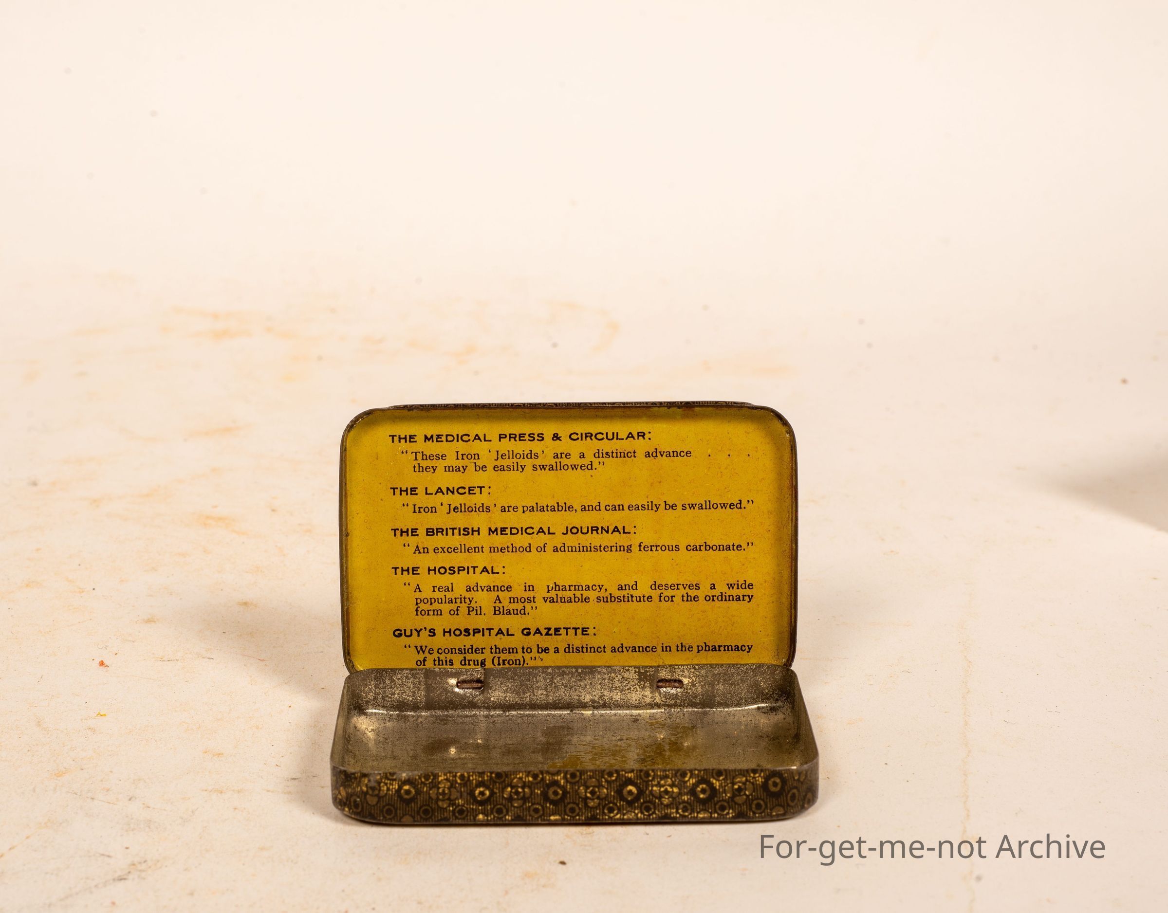 This is a tin of Iron Jelloids, a reliable tonic, packed in Waterford England. Quite a nice tin, plenty of instructions