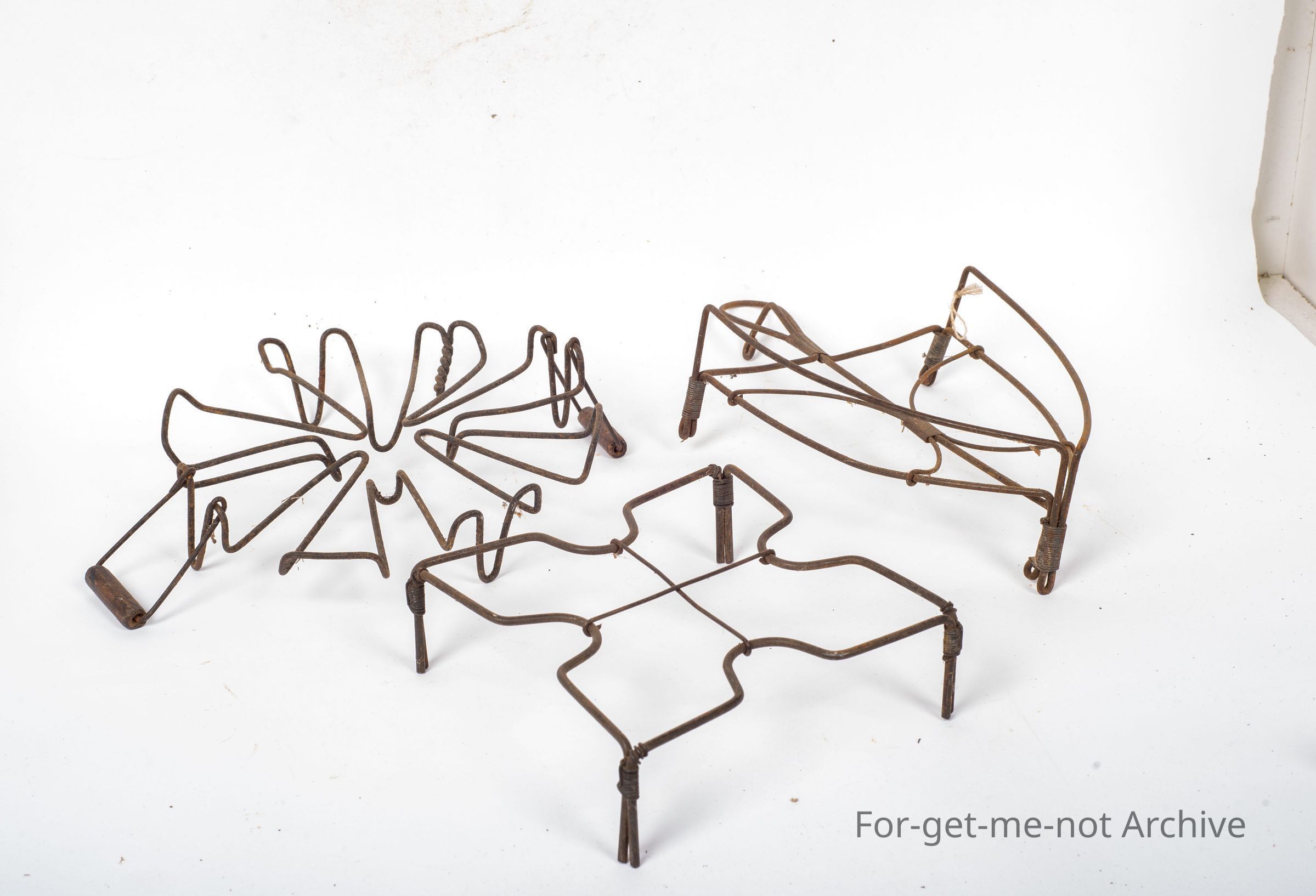 Another group of 3 wire work stands, one is an iron trivet, the other 2, just maybe any purpose,
