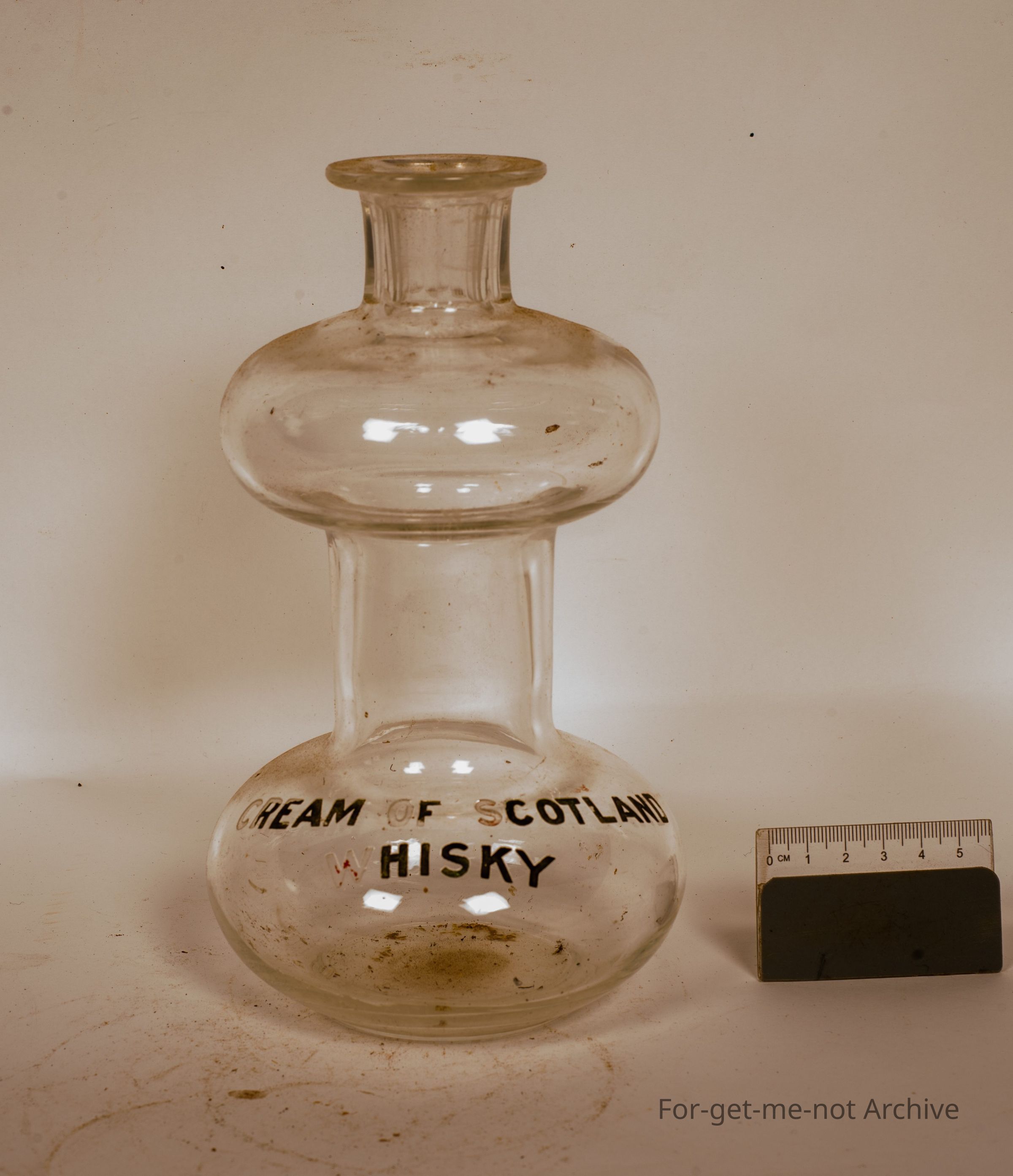 Last jar this time. Cream of Scotland Whiskey. Very ornate, jar. No lid. Known as a Whiskey Decanter.