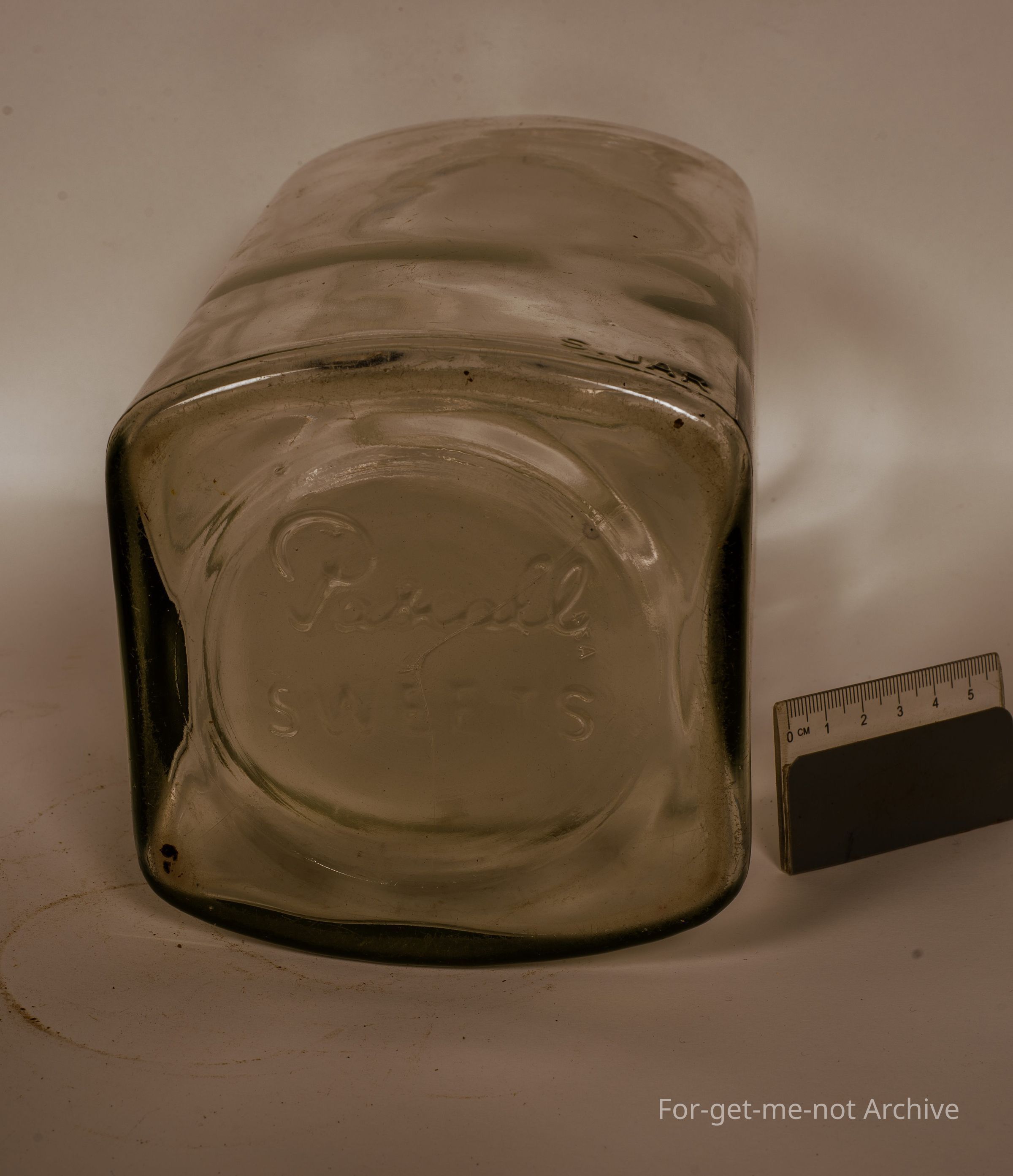 Glass jar. This one is from Pascal Sweets. The large size, probably used as a container for a corner store. No lid, but good condition.