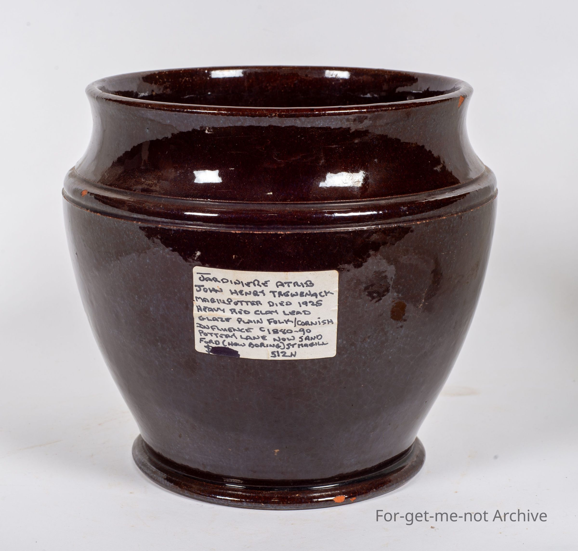 This piece is a Jardinière shape, a Rockingham glaze, which is beautifully done. This piece is attributed to John Henry Truenac, and McGill Potter, who died in 1925. This could possibly be from the 18 eighties to 18 90. A very rare and lovely piece,Collection