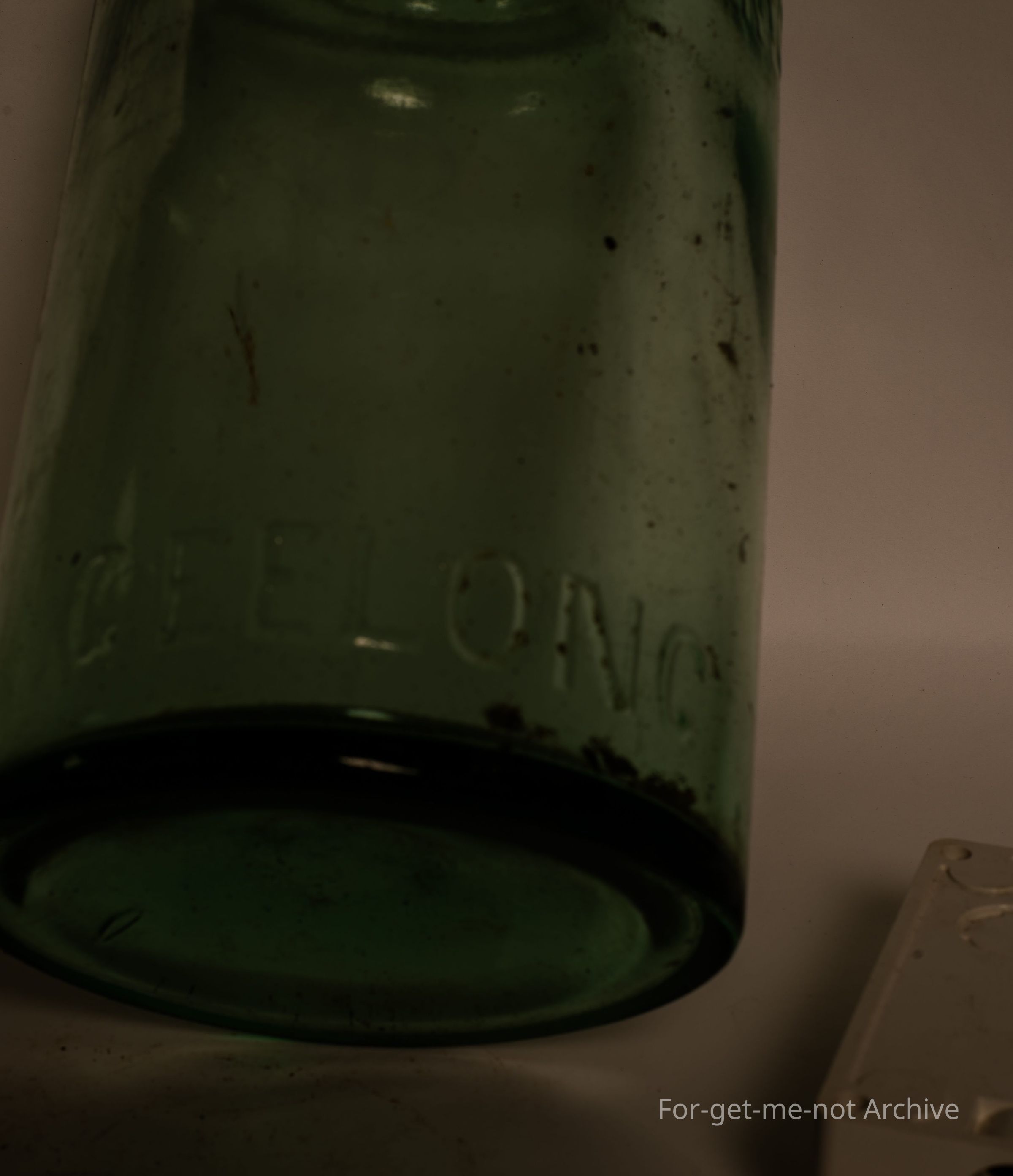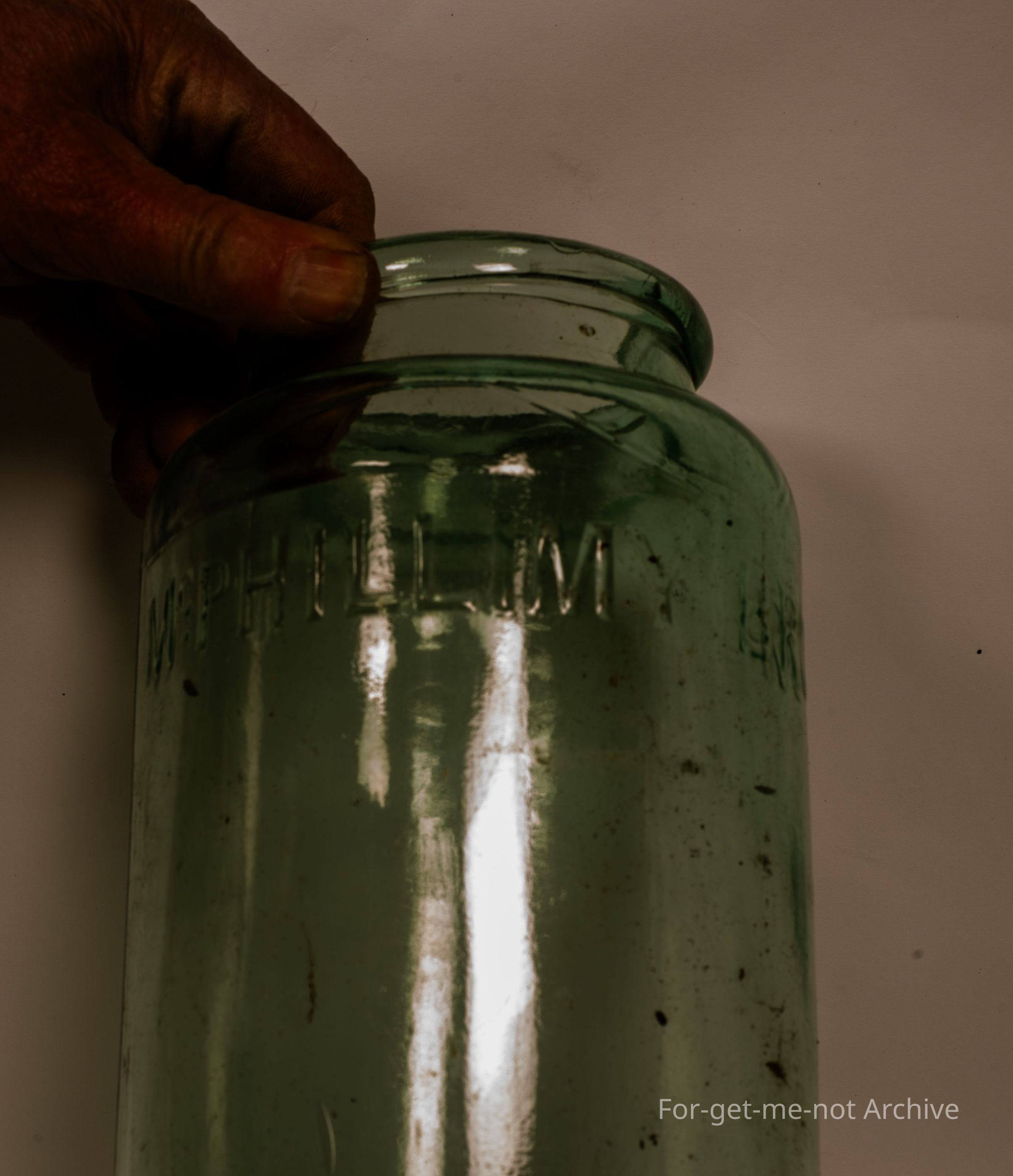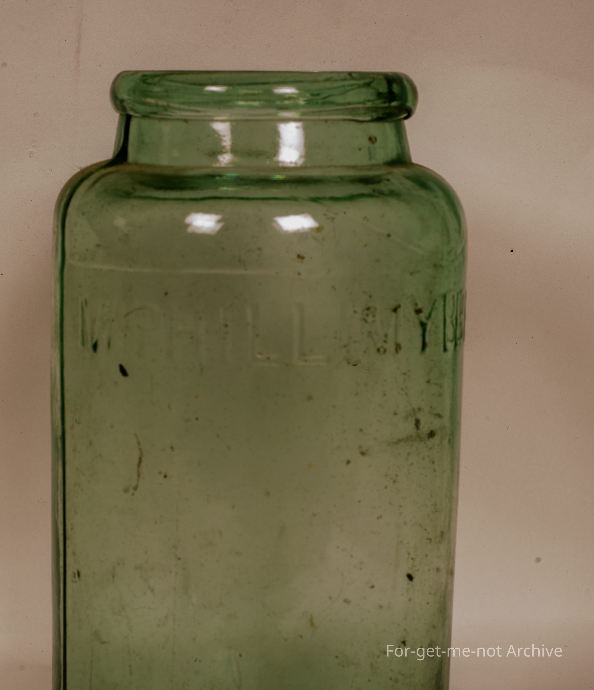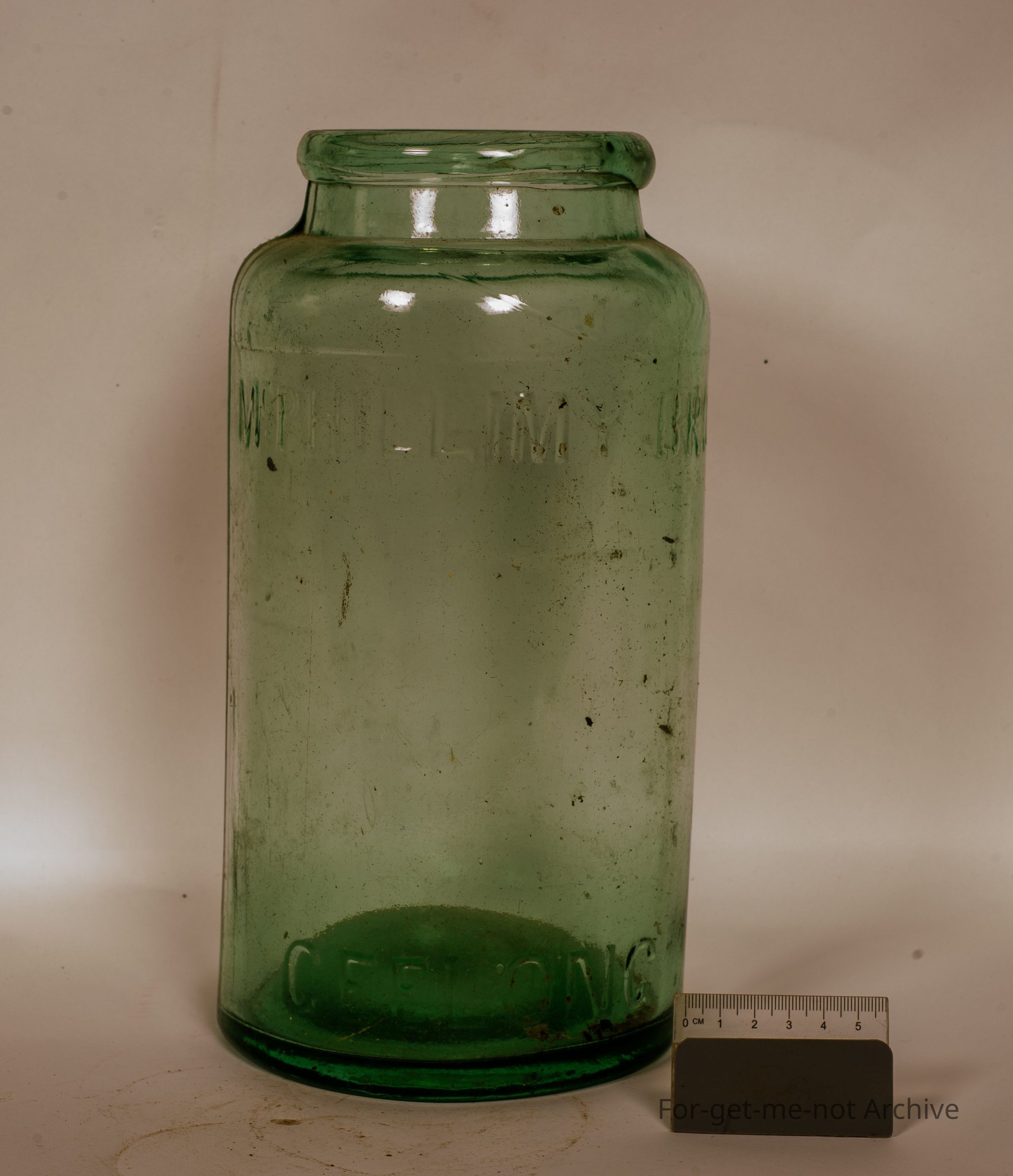 Glass jar. This is from McPhilimy Brothers, Geelong, in beautiful condition. A pretty early bottle. McPhilimey's were sweet makers.
