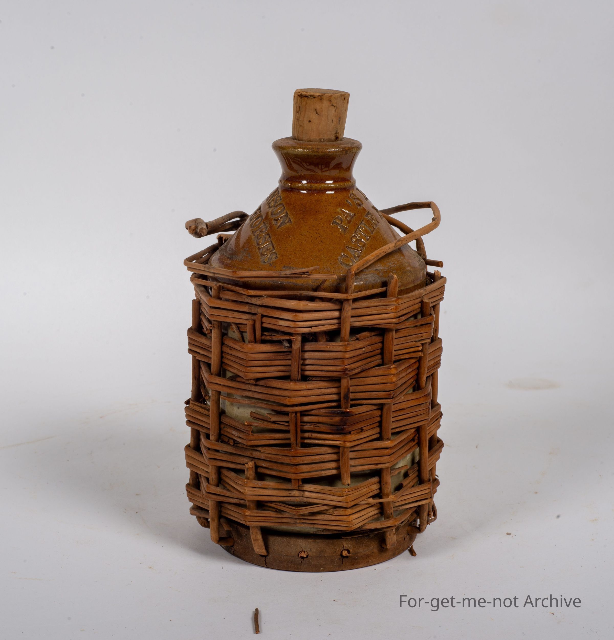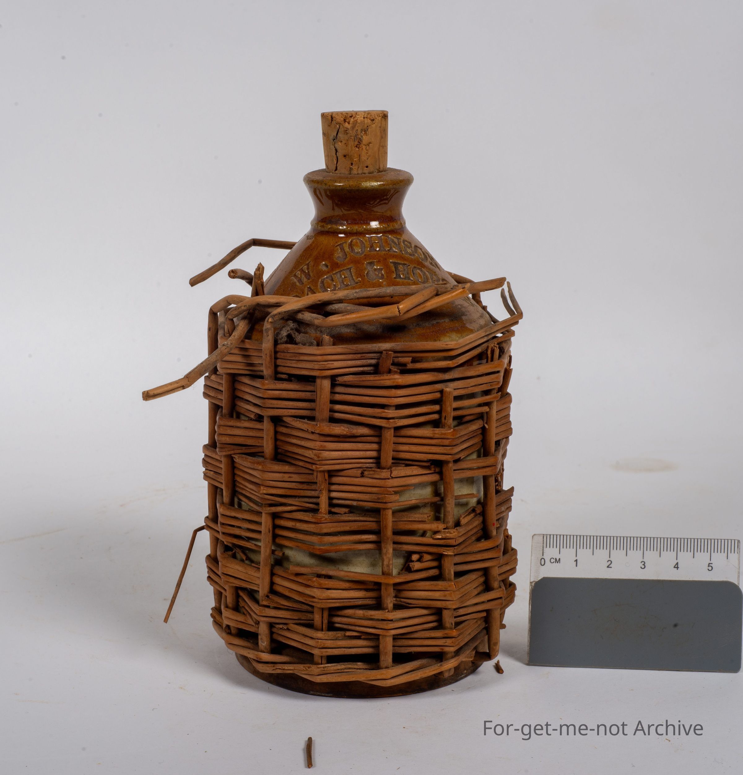 Stoneware Pottery. This is a small jar with the stamping of pars lotion, castle, Bromwich, w Johnson, coach and horses. This is in a little wicker frame. Considered a very rare piece. This is in very good order, probably of English origin.Collection
