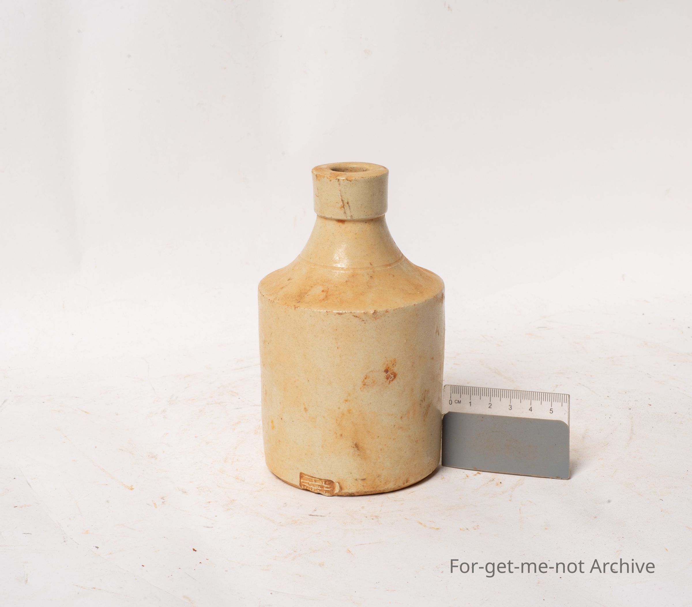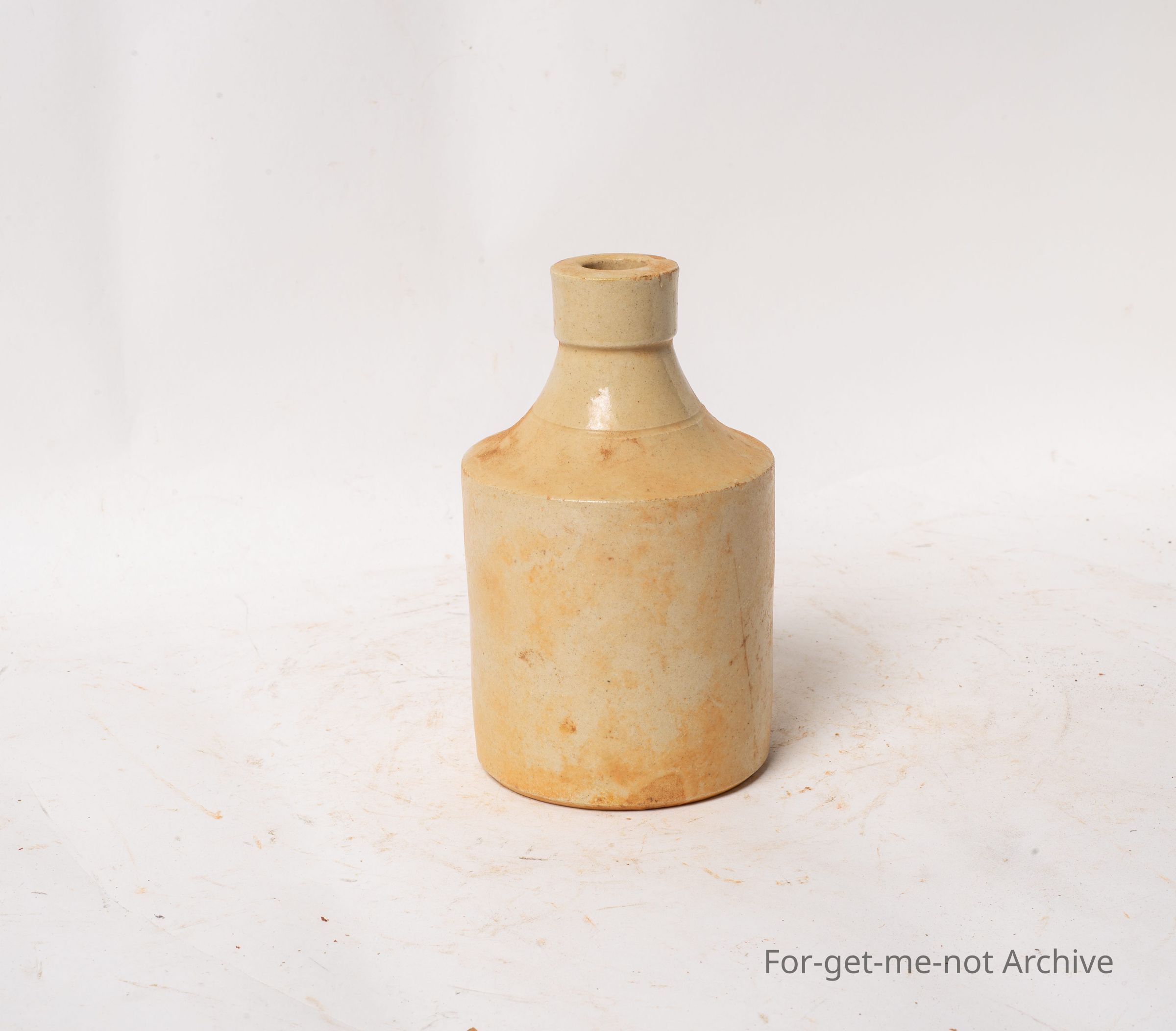Is a small, jar which would have held a liquid of some sort. This is an English made piece of, stoneware, good condition,