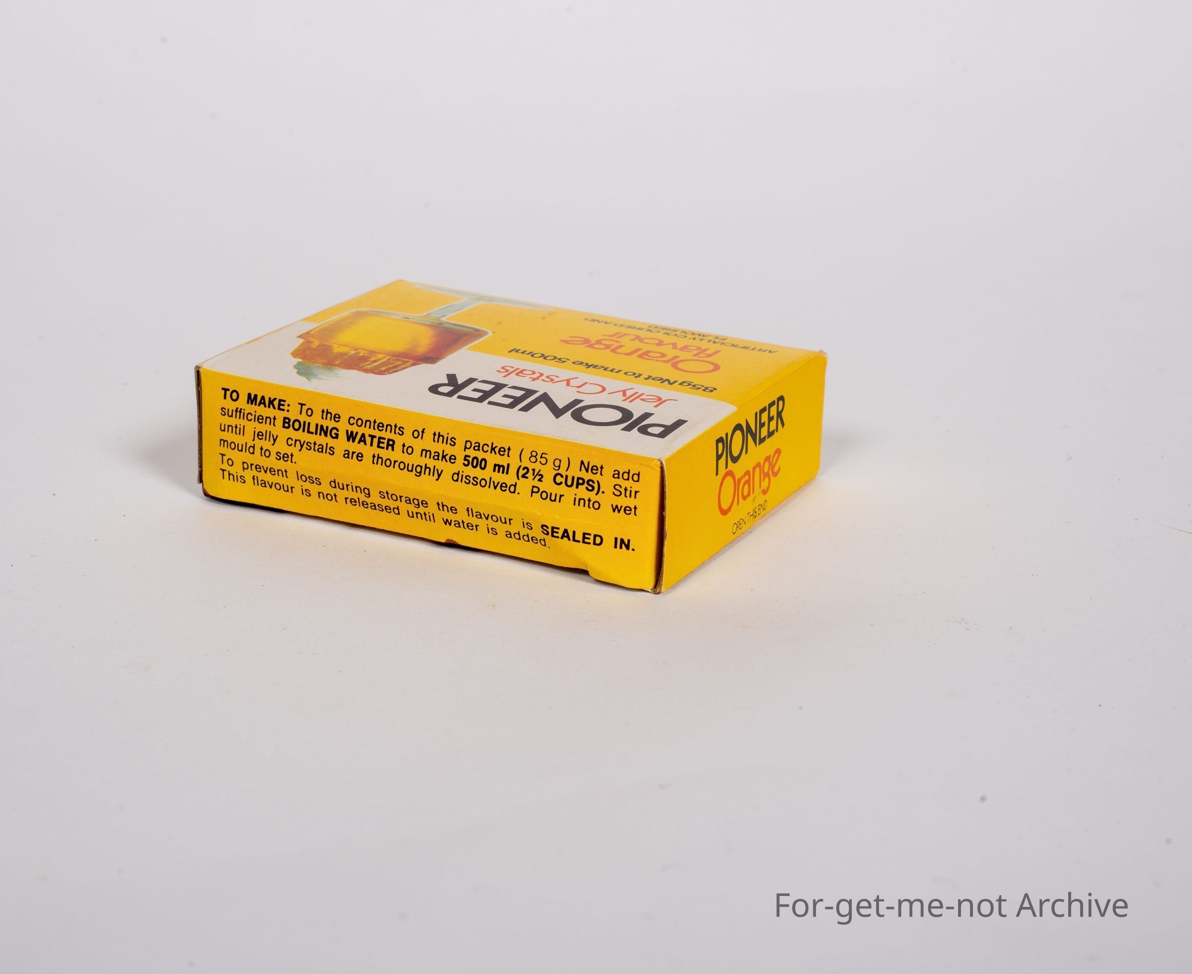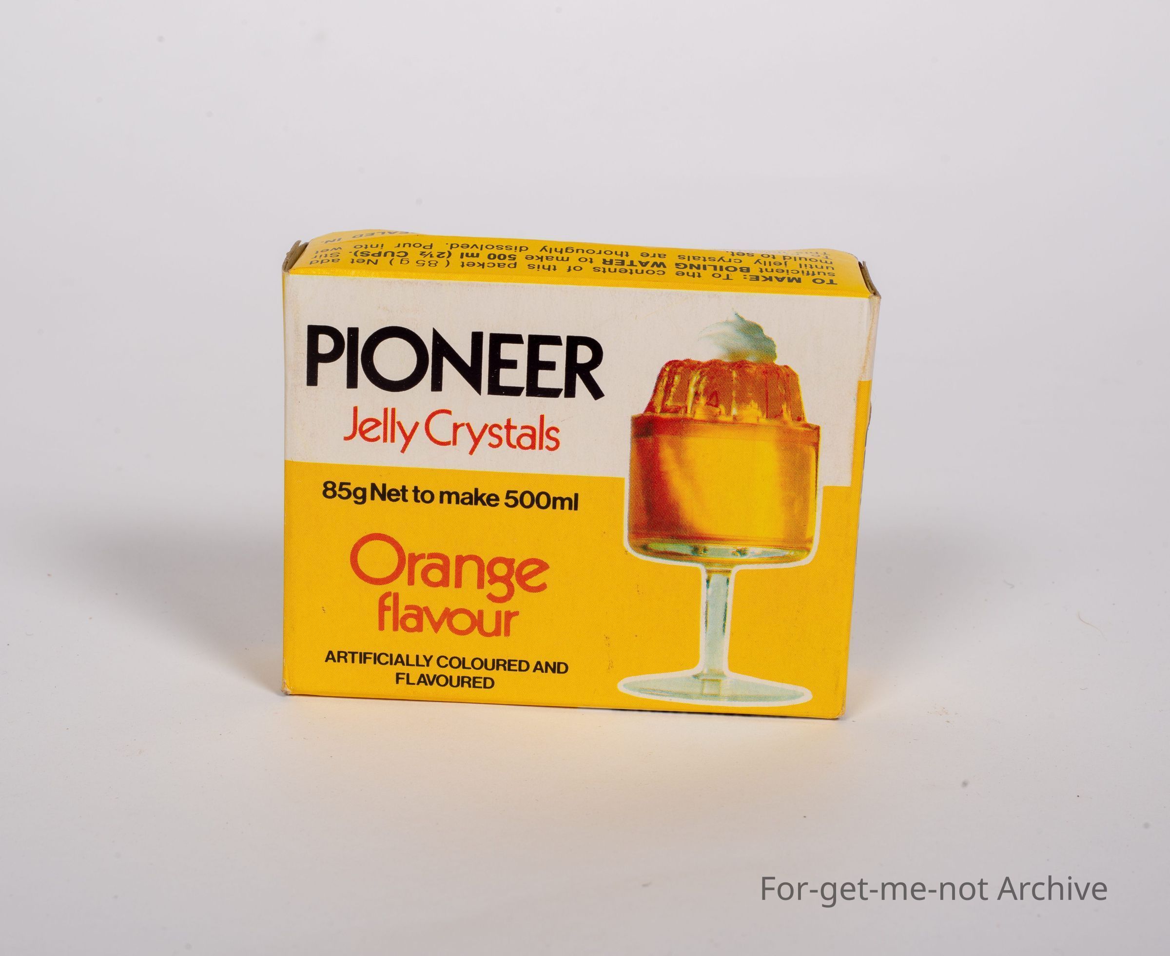 A cardboard box of jelly crystals, this time by Pioneer. Orange flavour, in good nick, good condition,