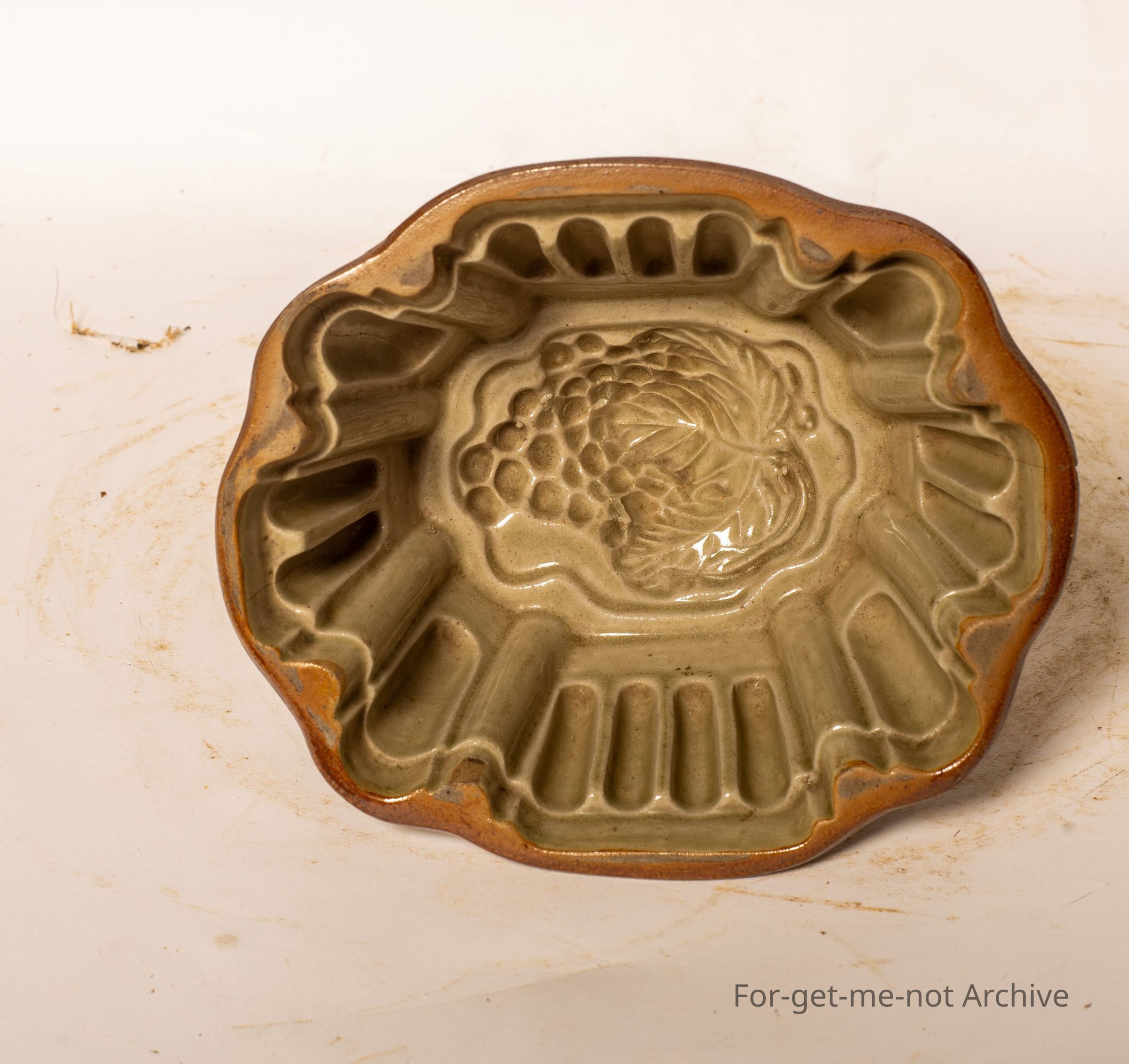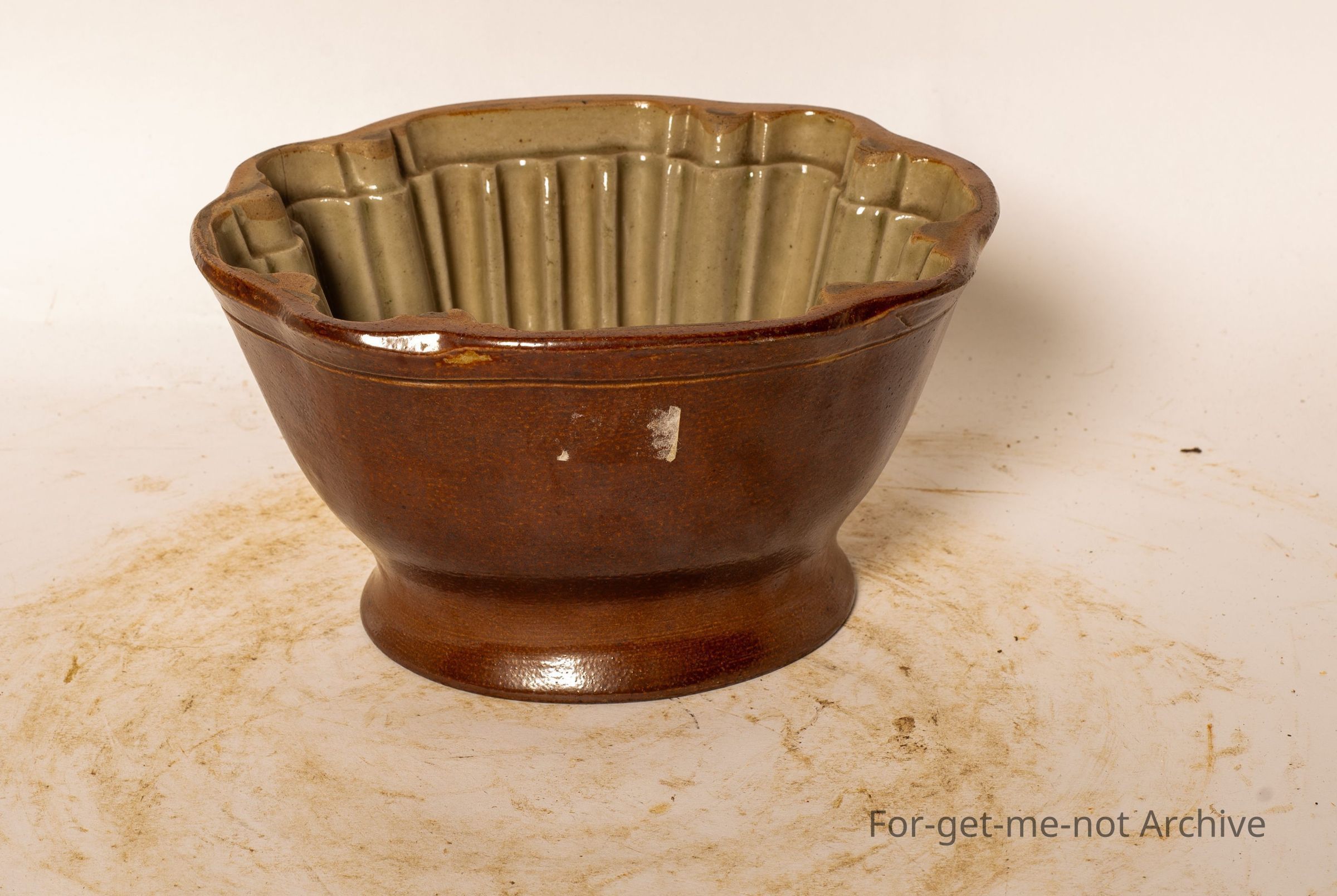 This is Kitchenalia in the shape of a stoneware jelly mold. This would almost definitely be of English origin. A very decorative inside. It is glazed in a different colour which is, is a characteristic of English Jelly Molds.Collection