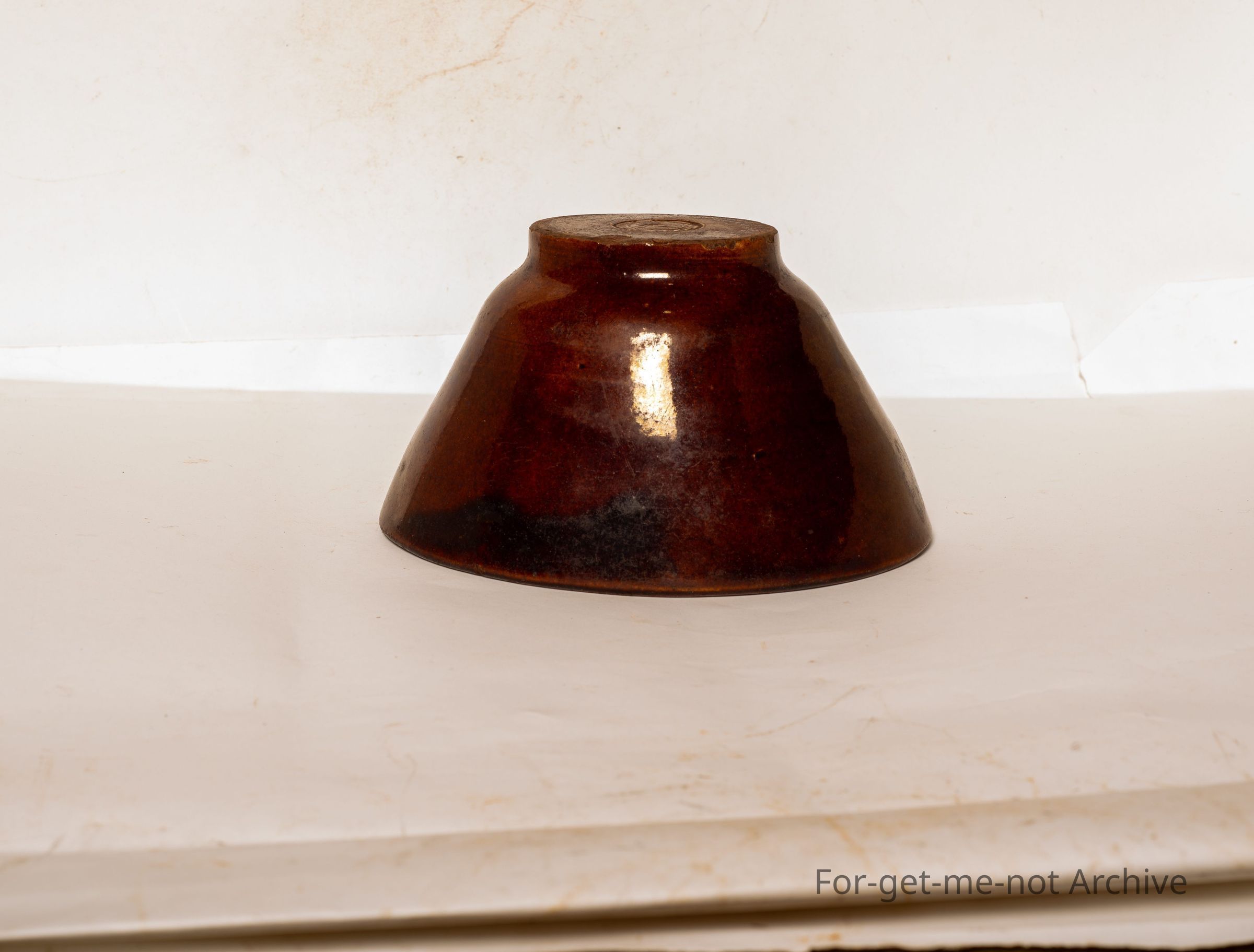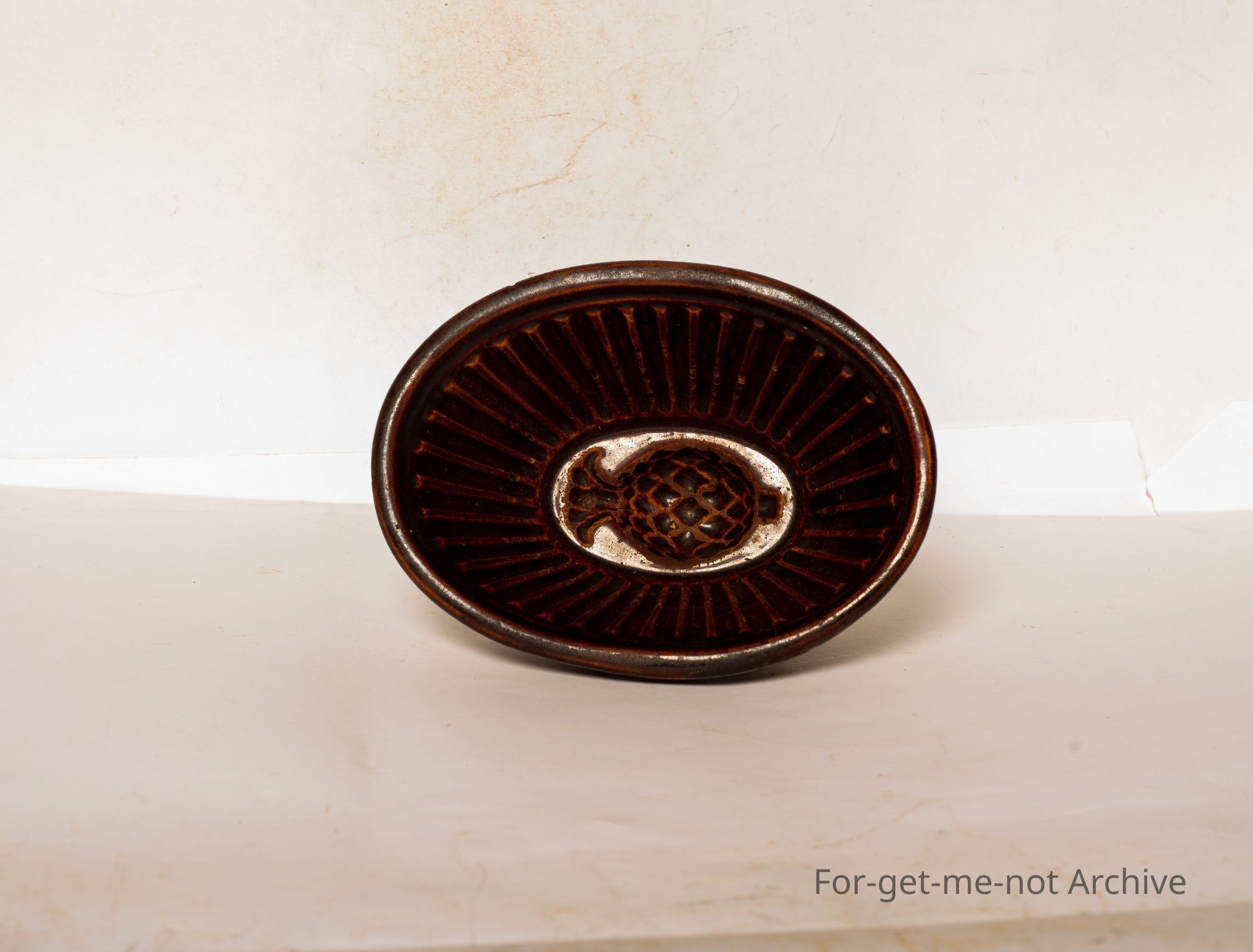 This is, Studio Pottery, Graduation, this is a jelly mold, very deep brown glaze which signifies Lithgow. It has a wonderful kangaroo stamp on the base stating trademark. This is a very early piece in good condition and, a pineapple shape in the floor of the jelly mold. Right.Collection