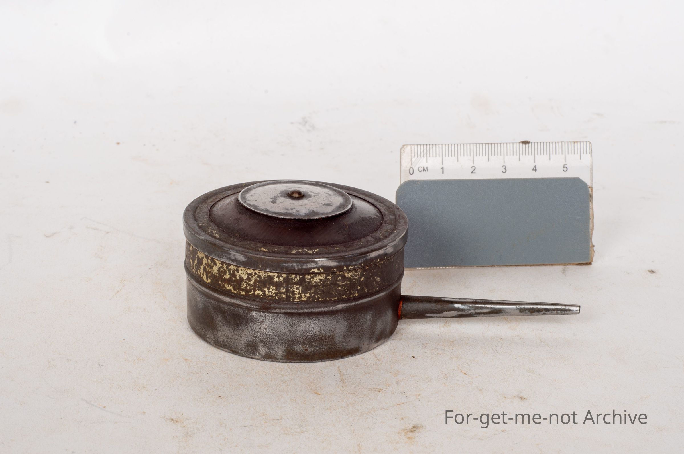 This is a Jeweller's puffer. Very fine little tin spout. It has a, a puffer arrangement in the tin that squirts the air out the hole. This one is in workable condition. Very rarely you see them still usable.Collection