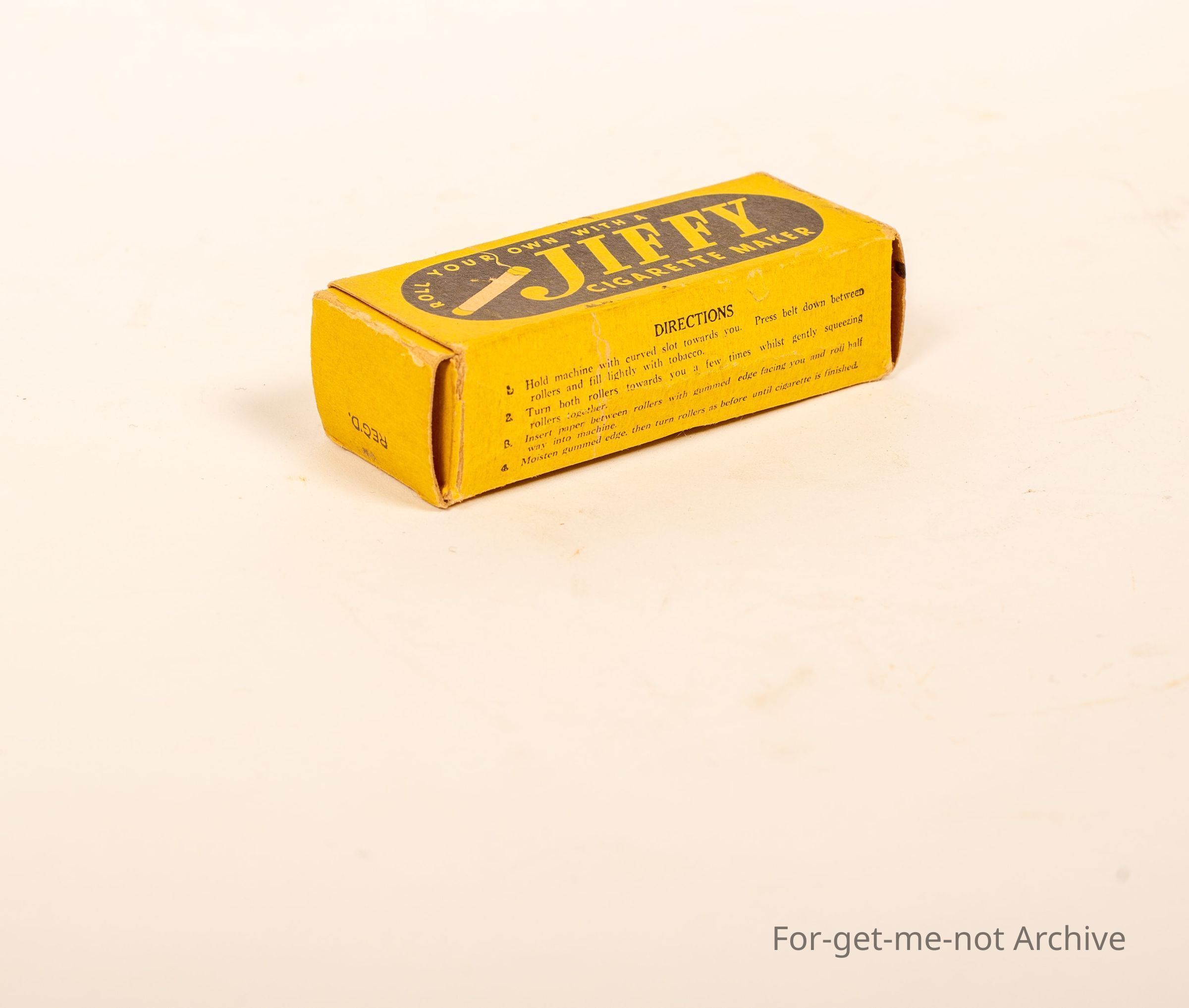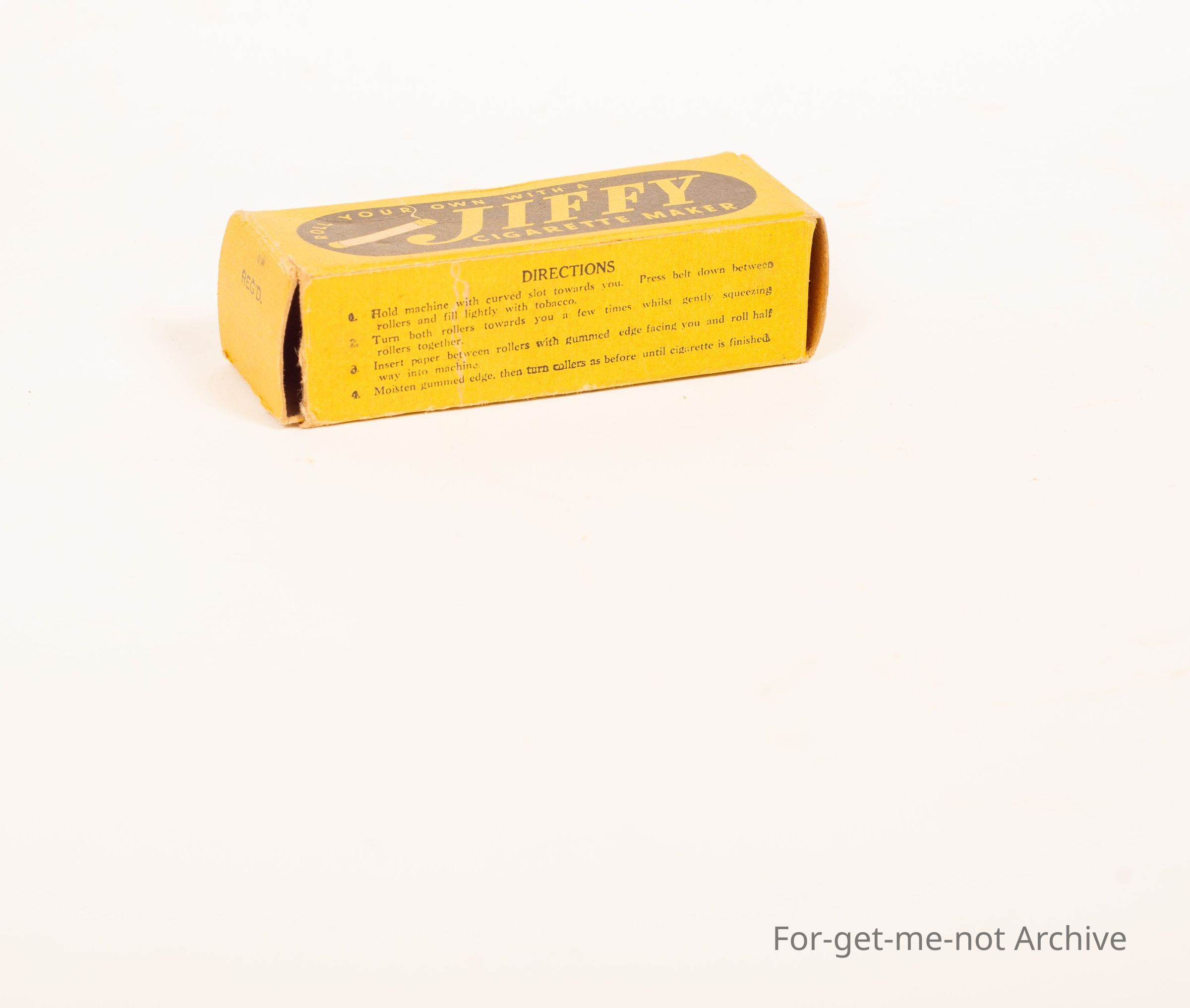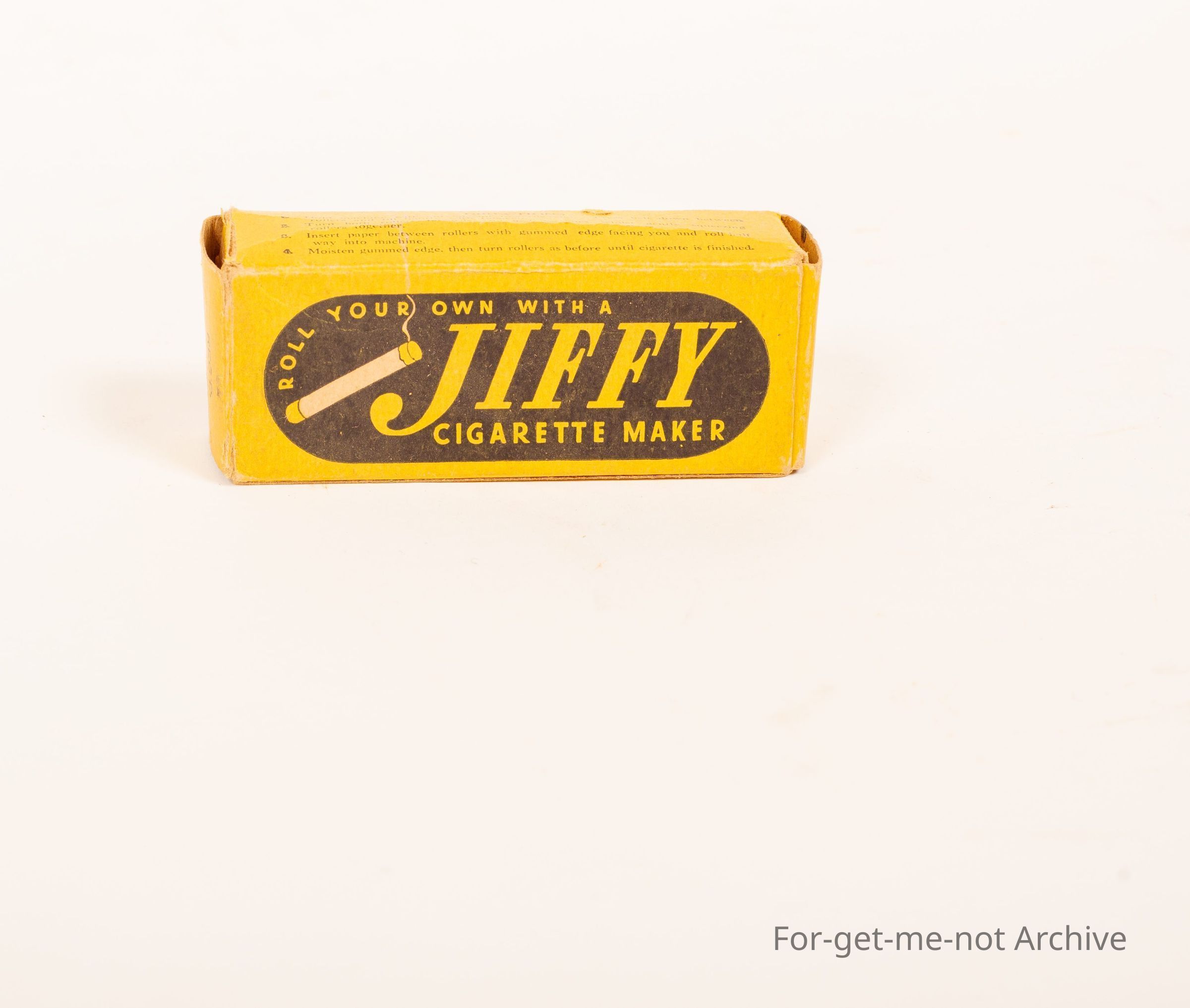 Is a cardboard box for a "Roll your own with Jiffy Cigarette Maker". Contents not in the box.