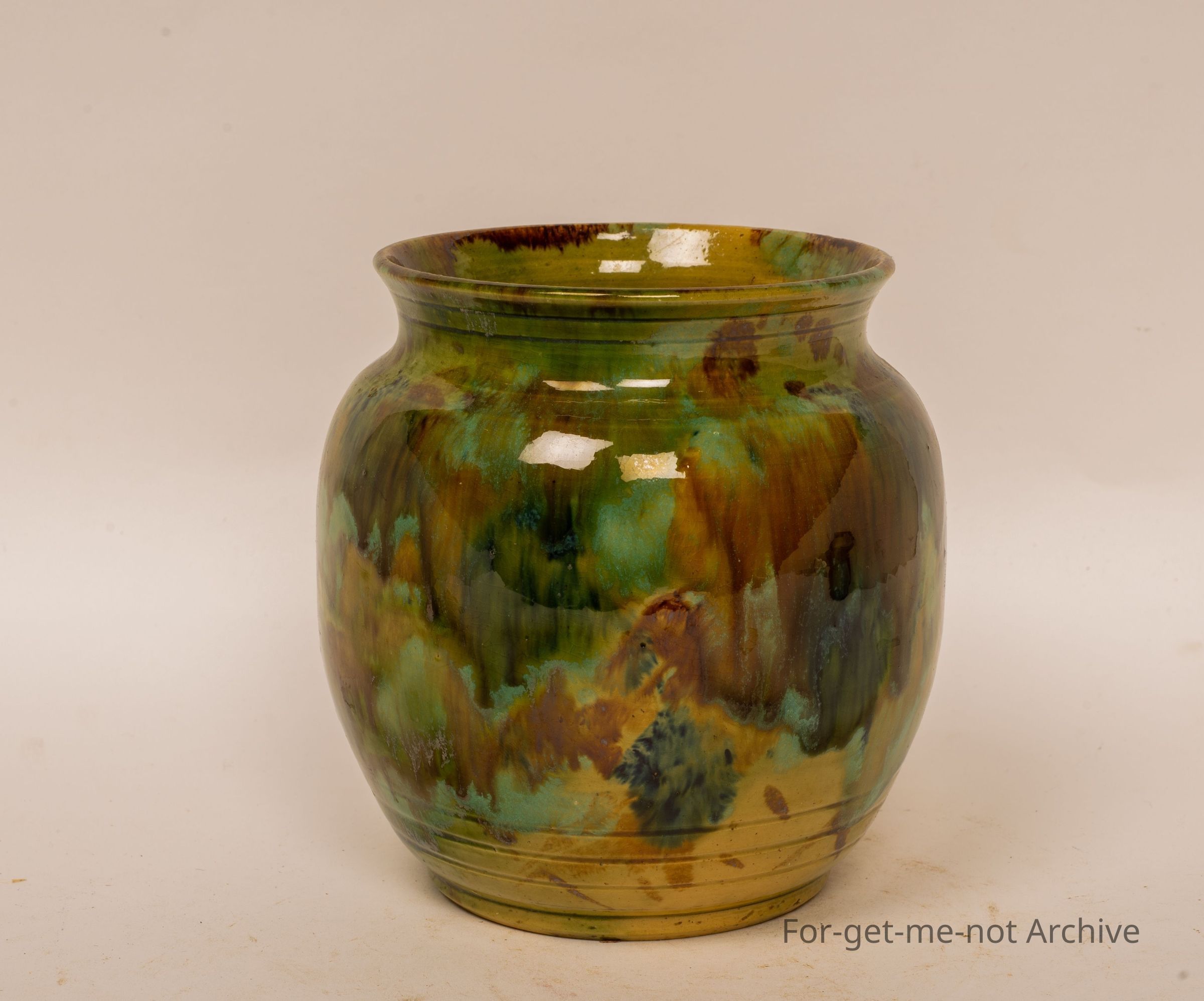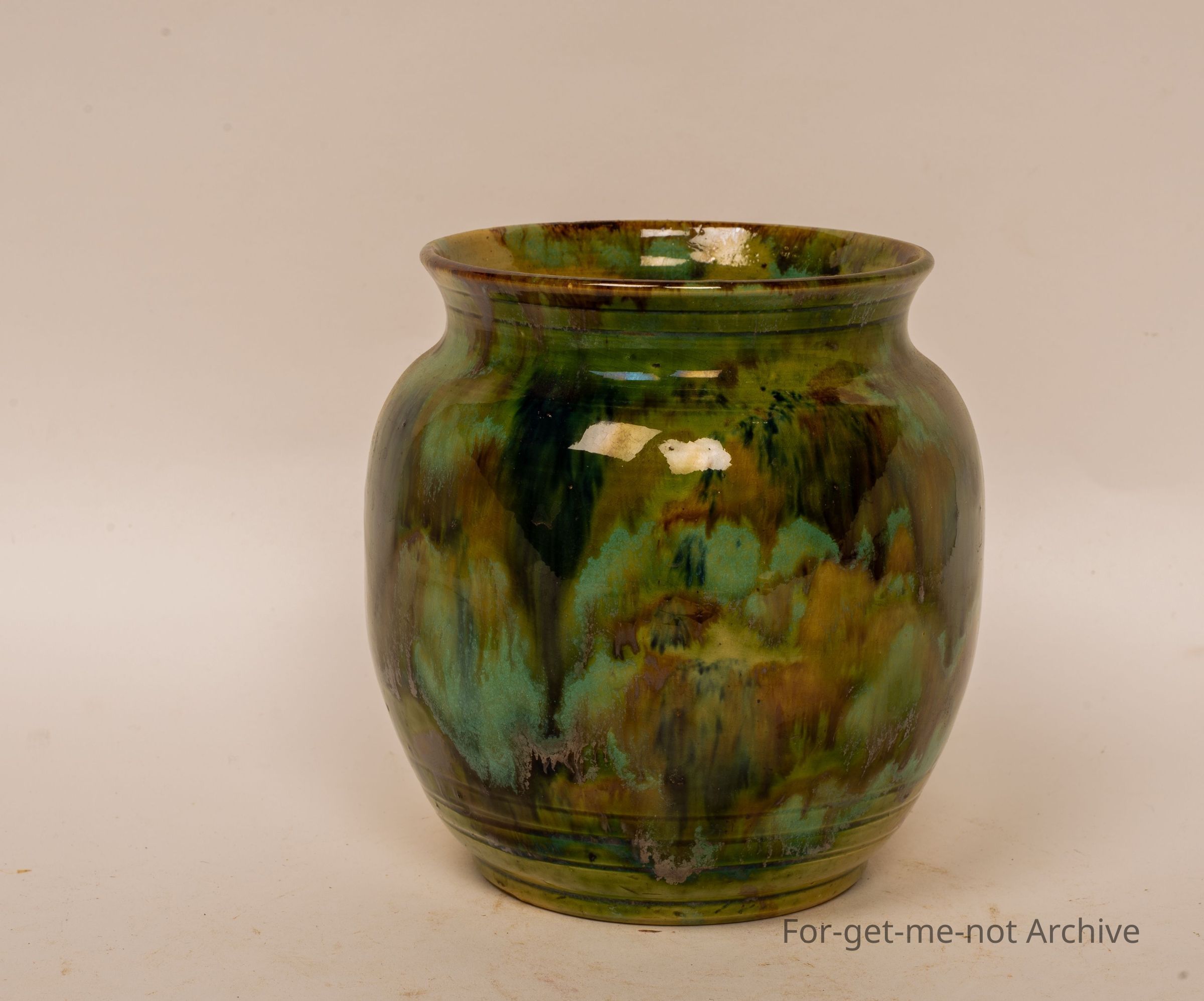 Classical John Campbell Tasmanian Vase. Beautiful dark green, mottled glaze. Perfect condition.