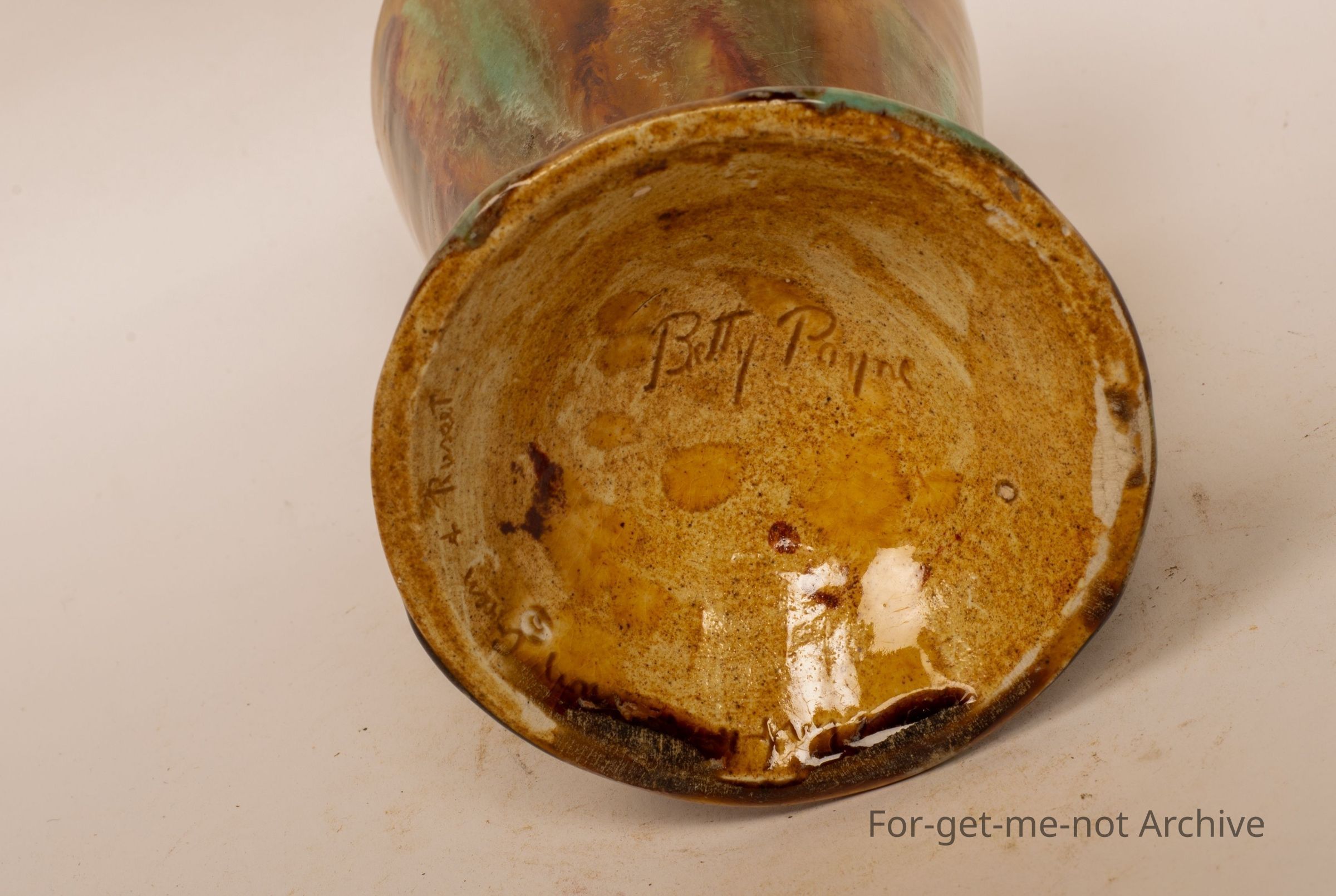 This is a vase, flared base, quite tall. Very similar ways to John Campbell but signed Betty Payne. May have been Harvey's School.