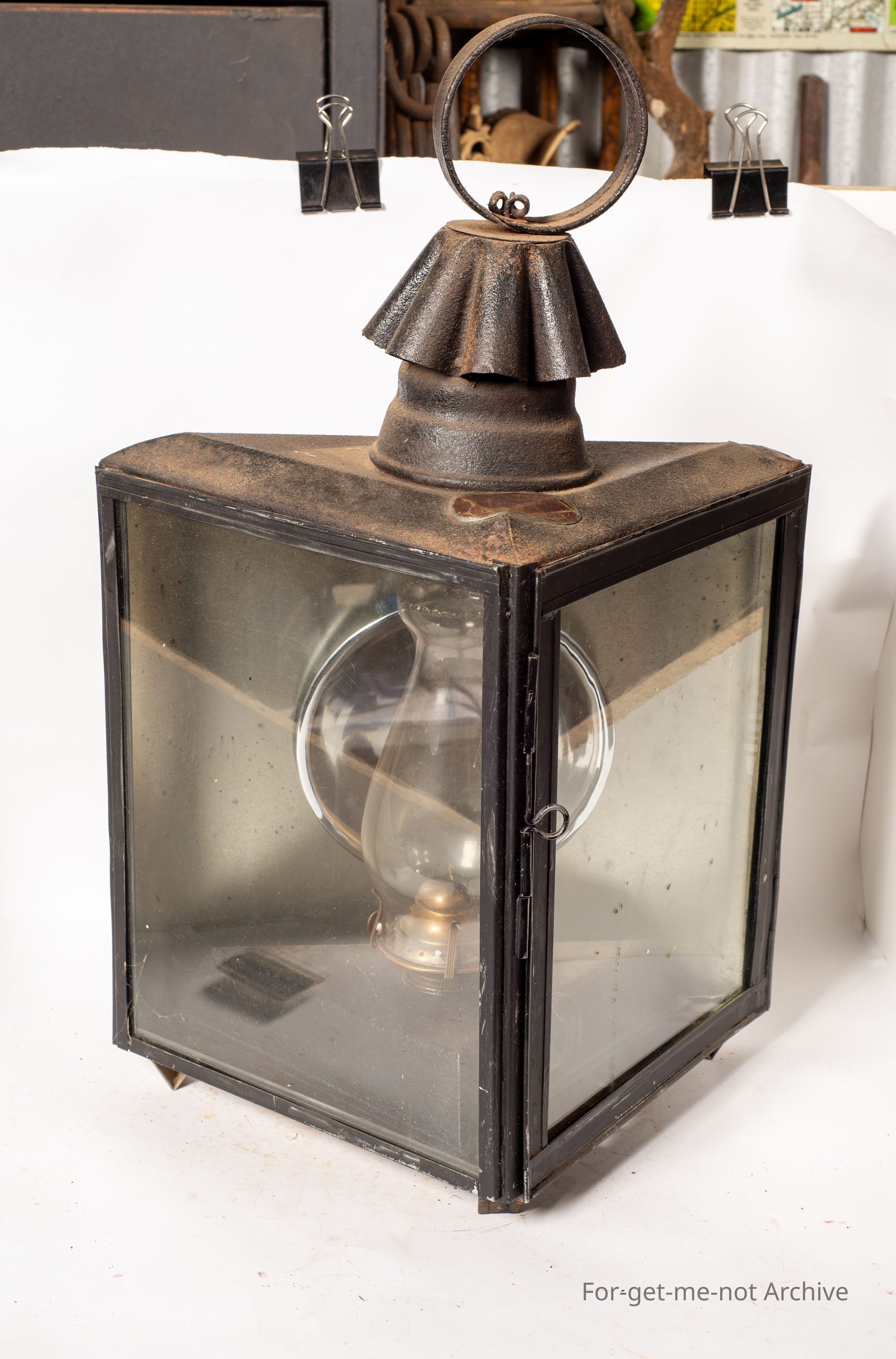 This is a beautiful light from the mining days on the Pitfield Plains. This was used in the, main mine at Glenfine. Purchased by Fred Hocking when the mine, closed and the goods were sold. It is has a John Holloway Ballarat plaque as the maker. It's got a burner that works, the fuel tank still works, replaced the reflector, a beautiful relic from mining on the Pitfield Plains.Collection