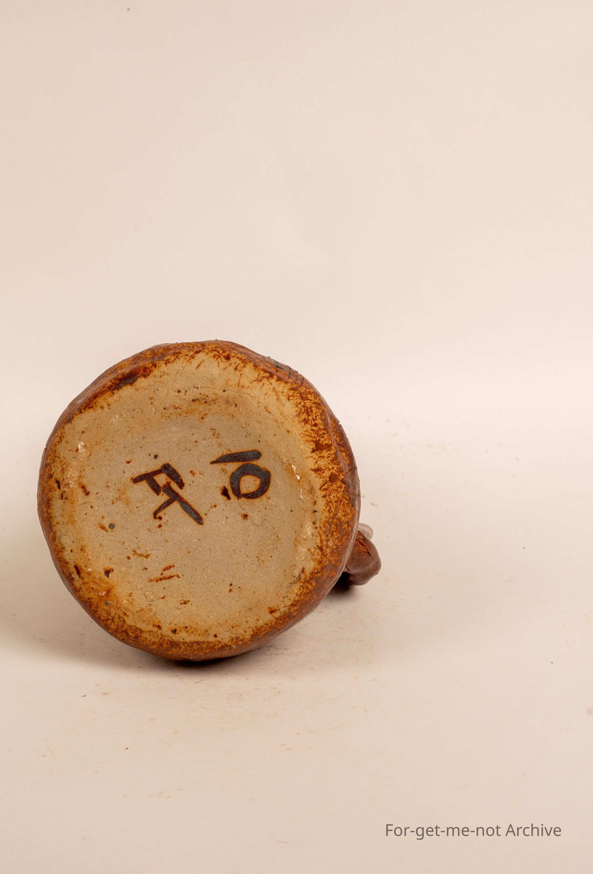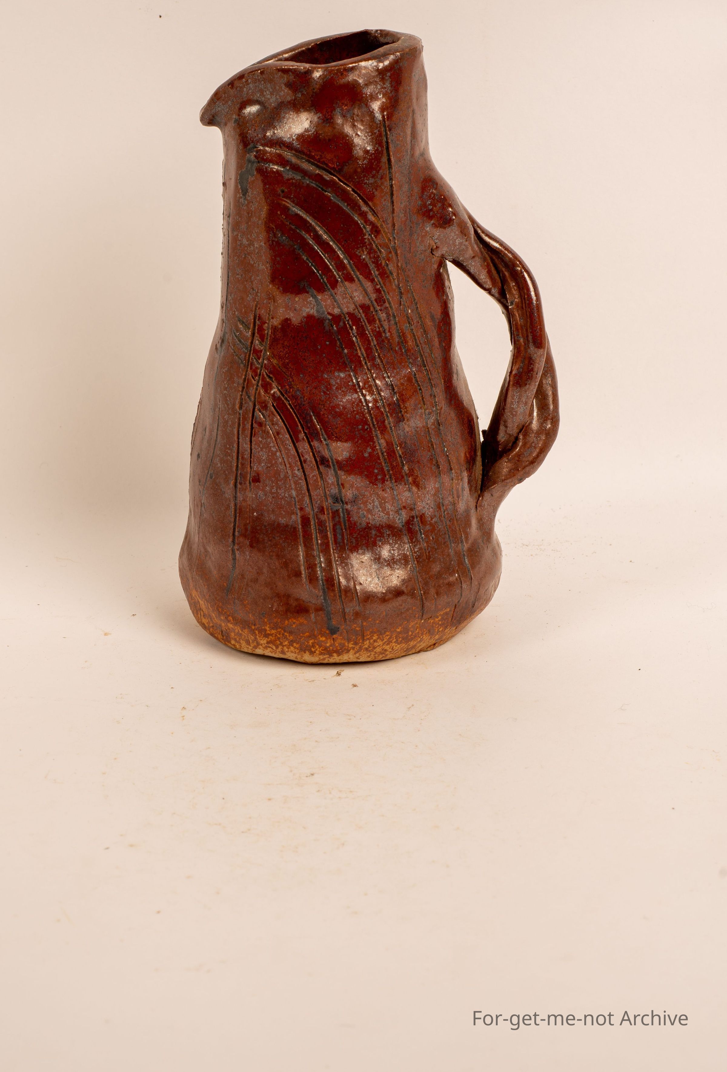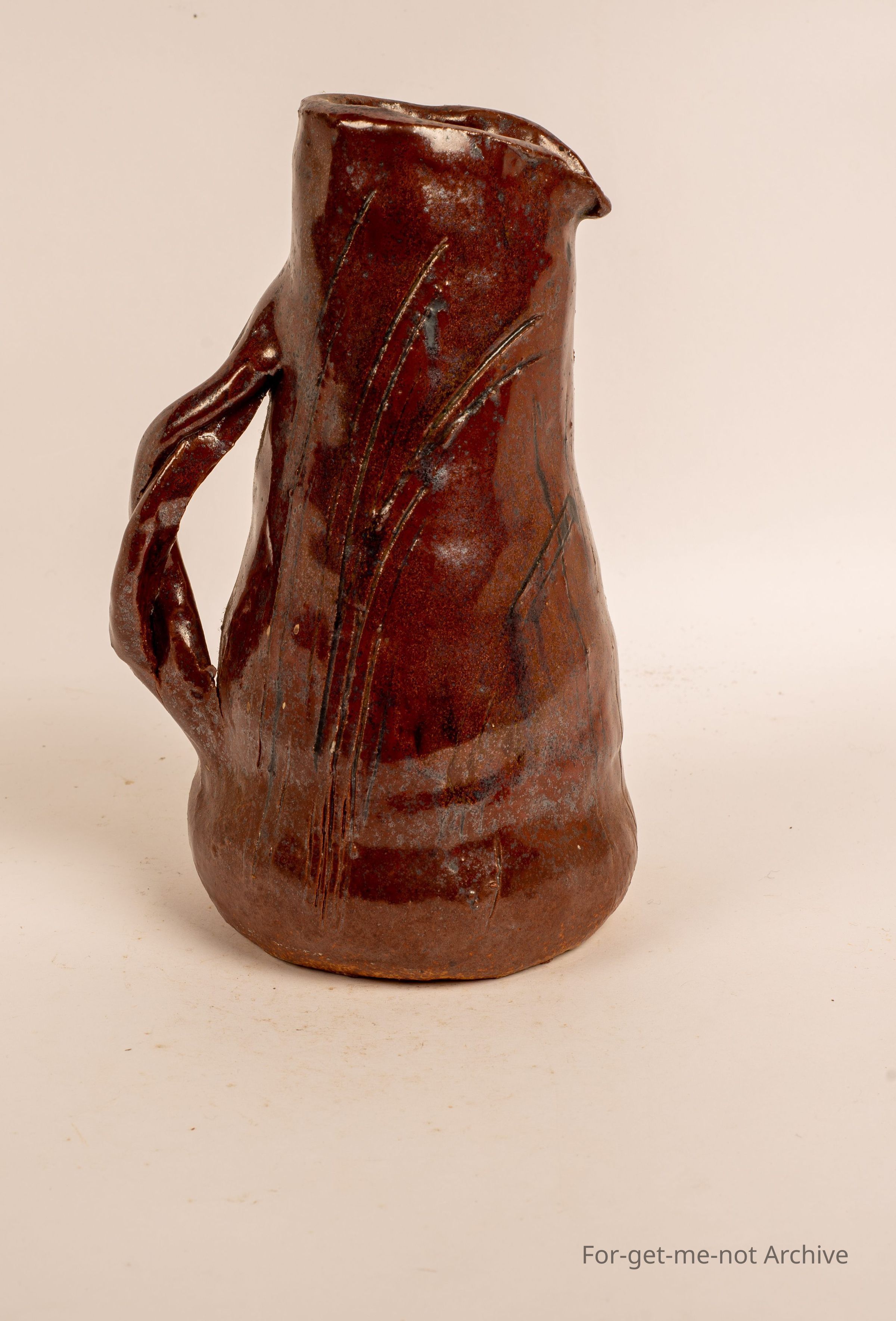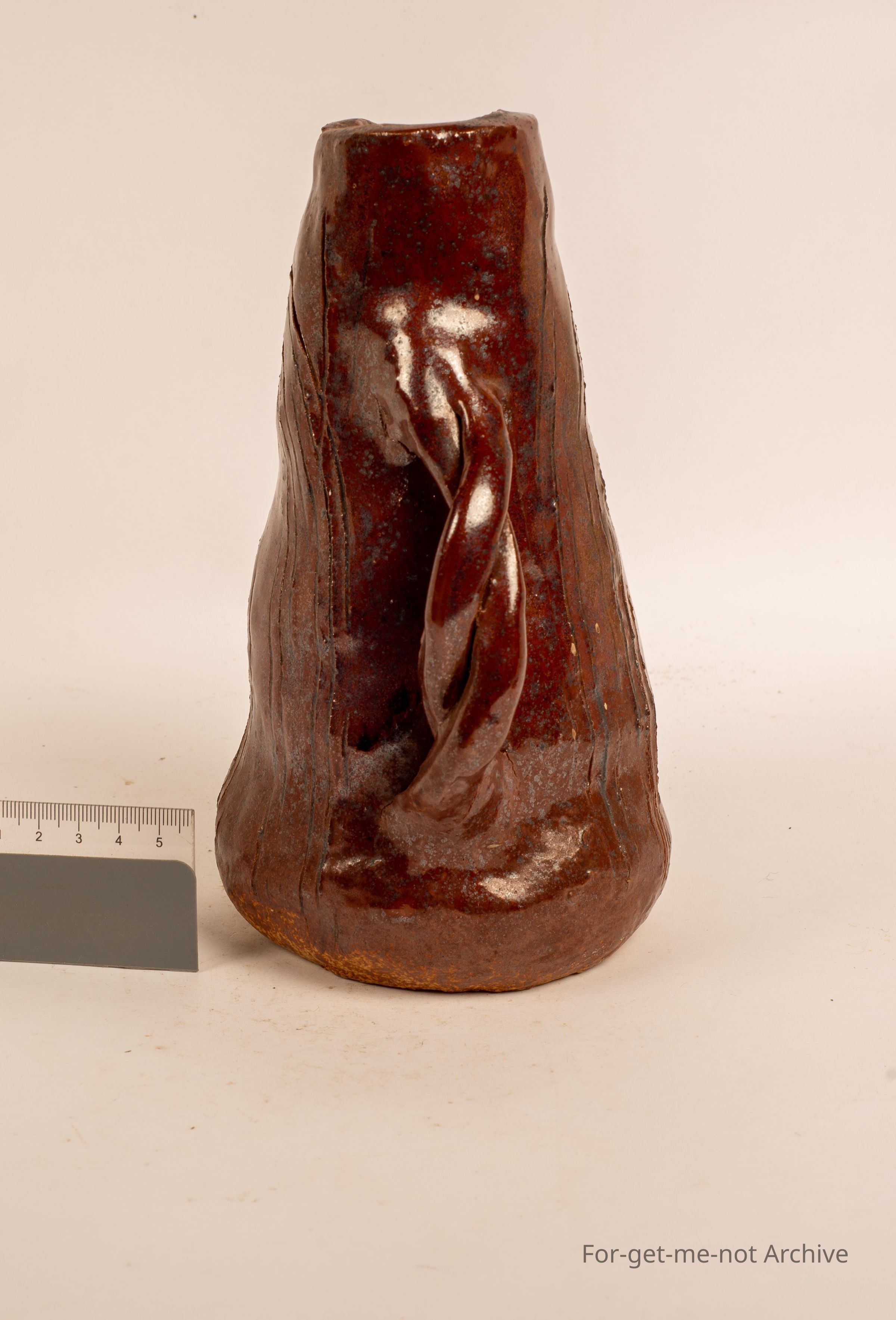 Hand built jug, barley twist handle, very rural looking, and, painted on base FT10