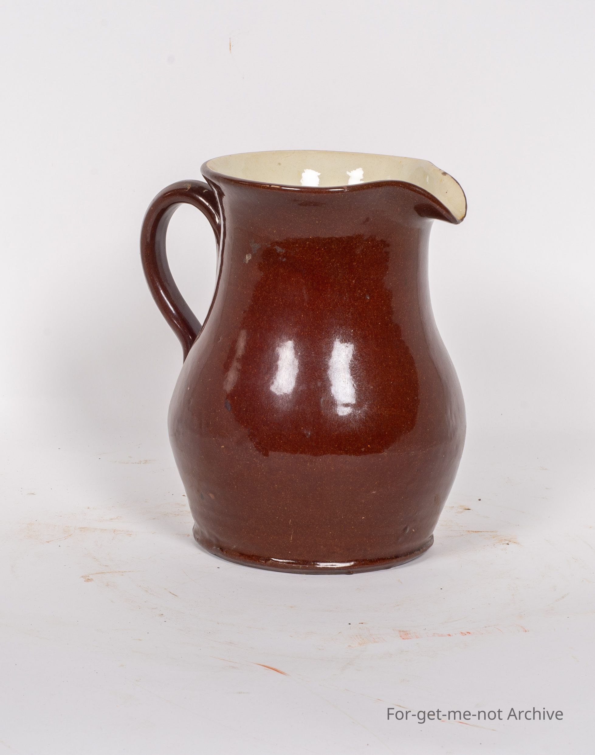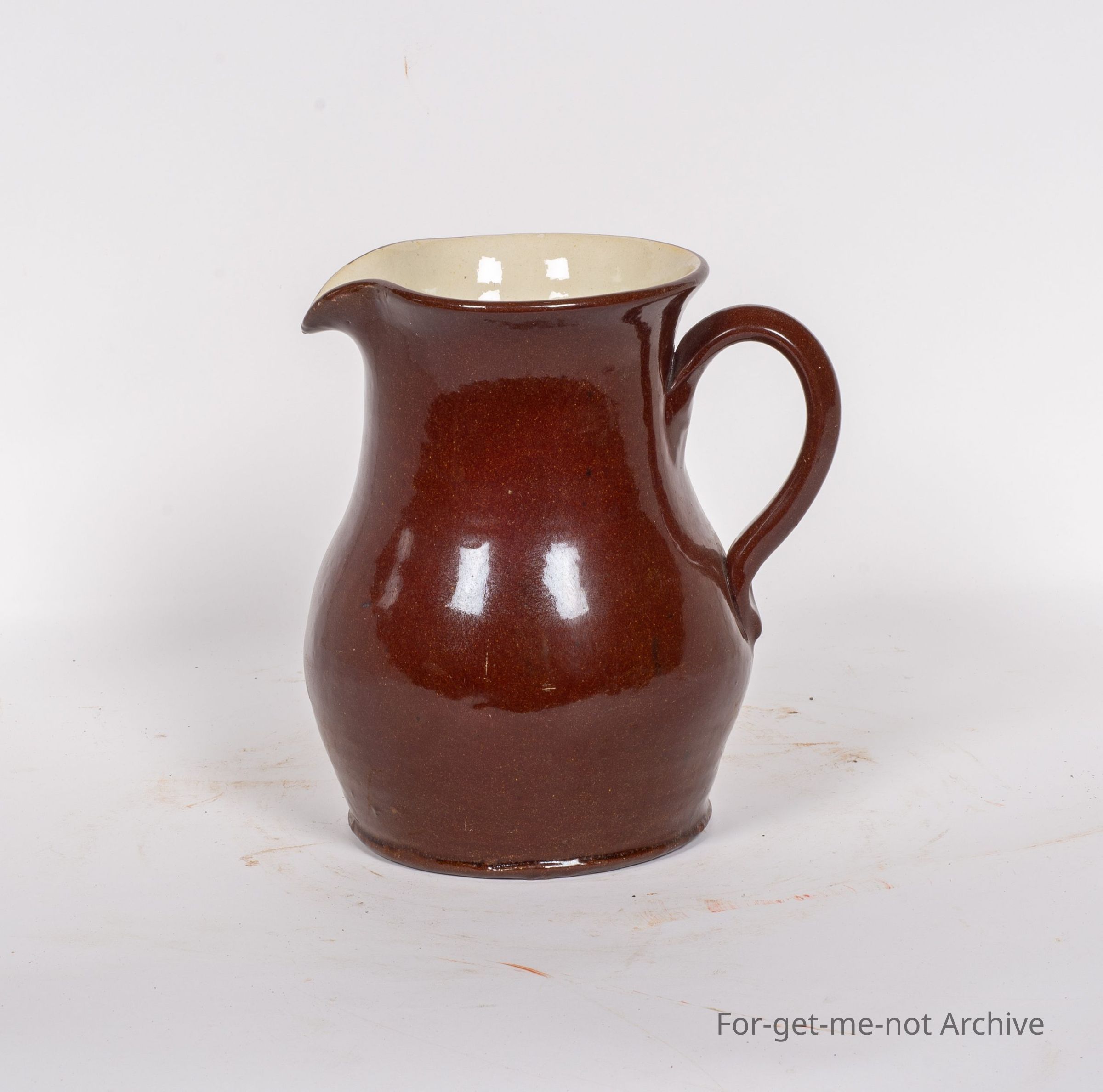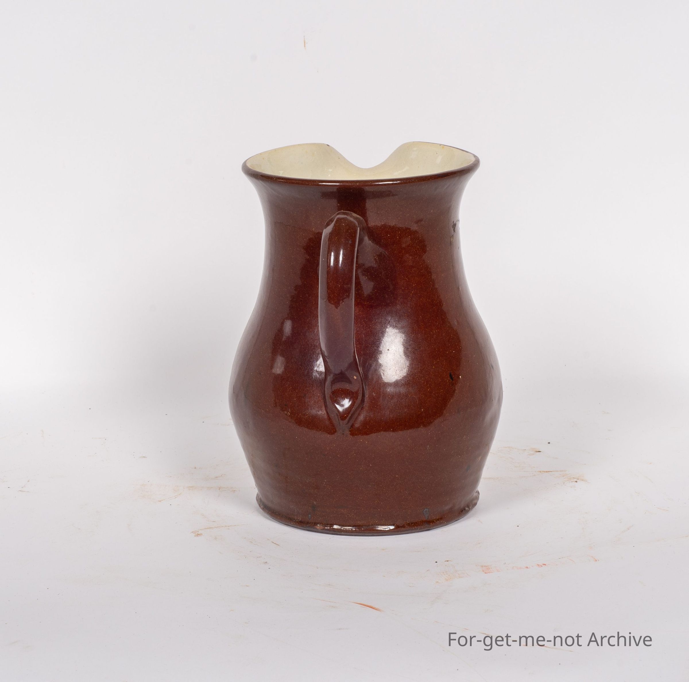 This is a ceramic jug, quite an attractive shape and design. Brown glaze on the outside, creamy colour internally. This jug is of English origins,