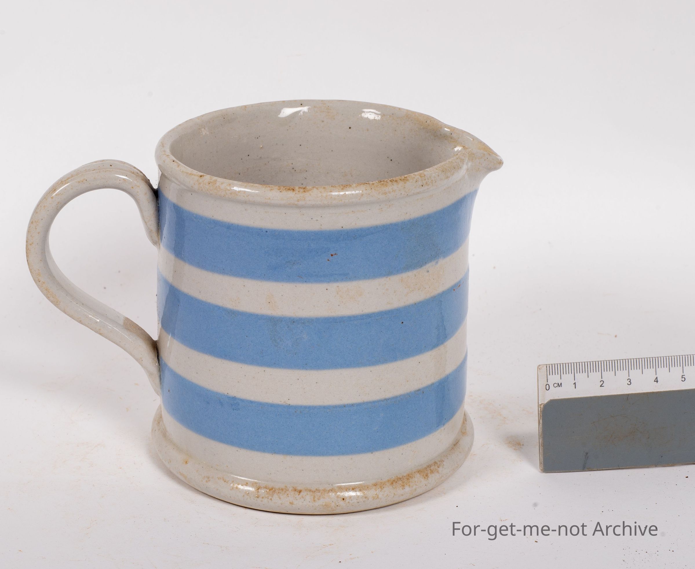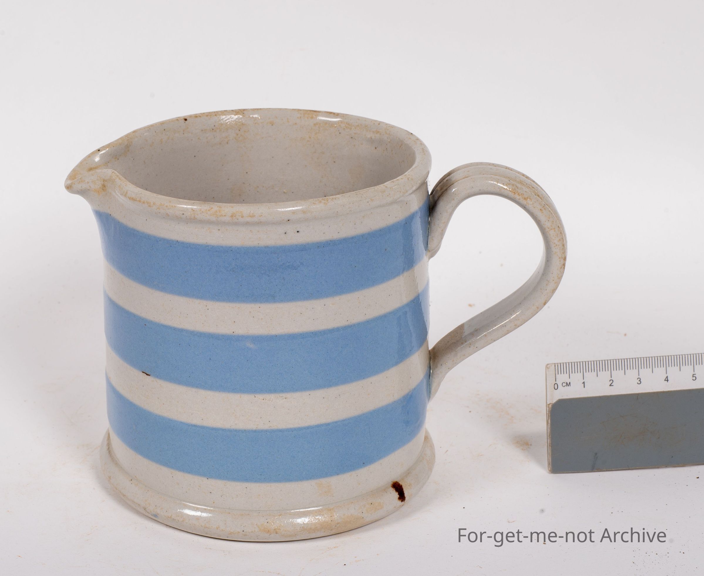 This is a striped blue and gray colour milk jug ink stamp in the on the base made by Bakewell Sydney, New South Wales. In very good order.