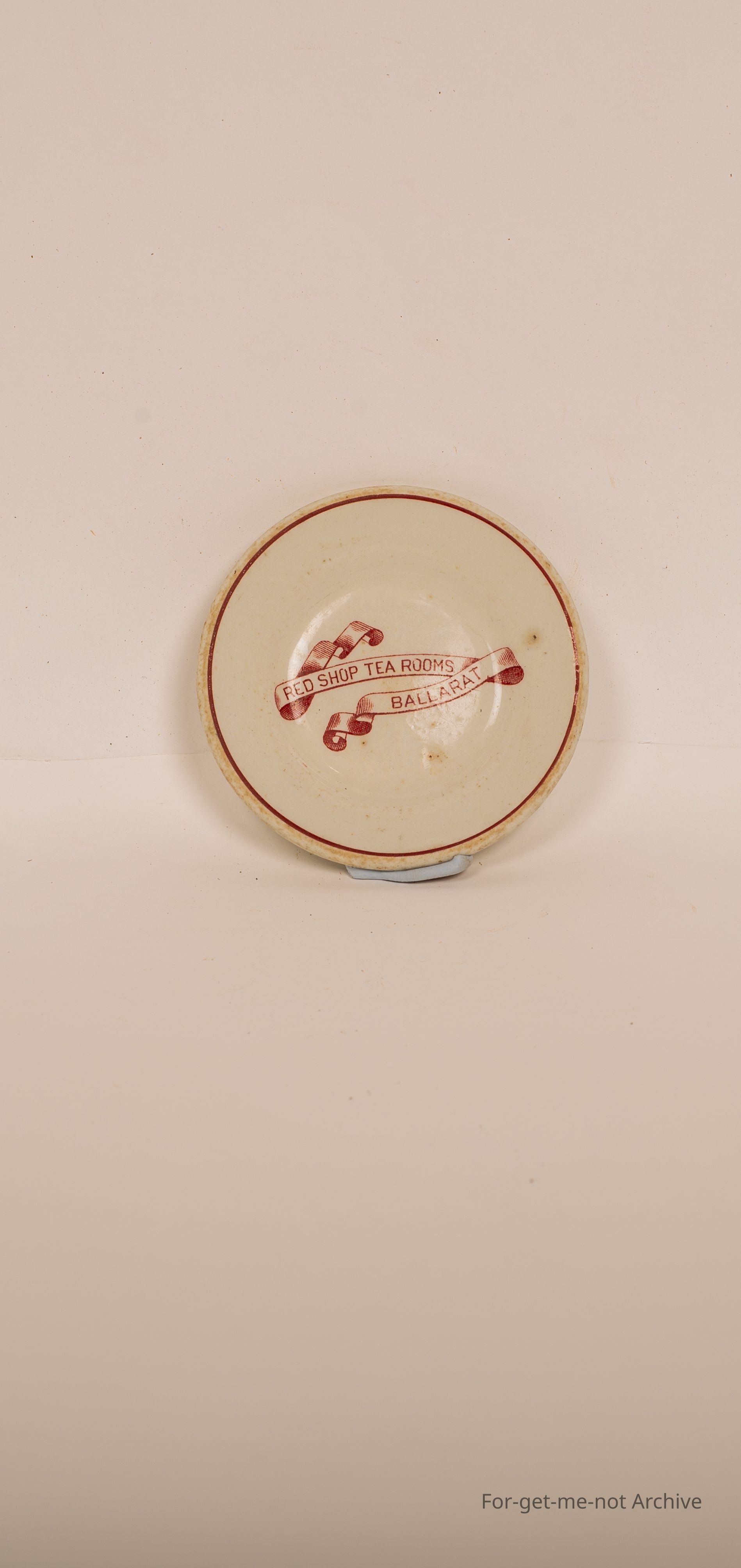 Small milk jug saucer advertising the Red Shop Tea rooms Ballarat. Quite a rare piece