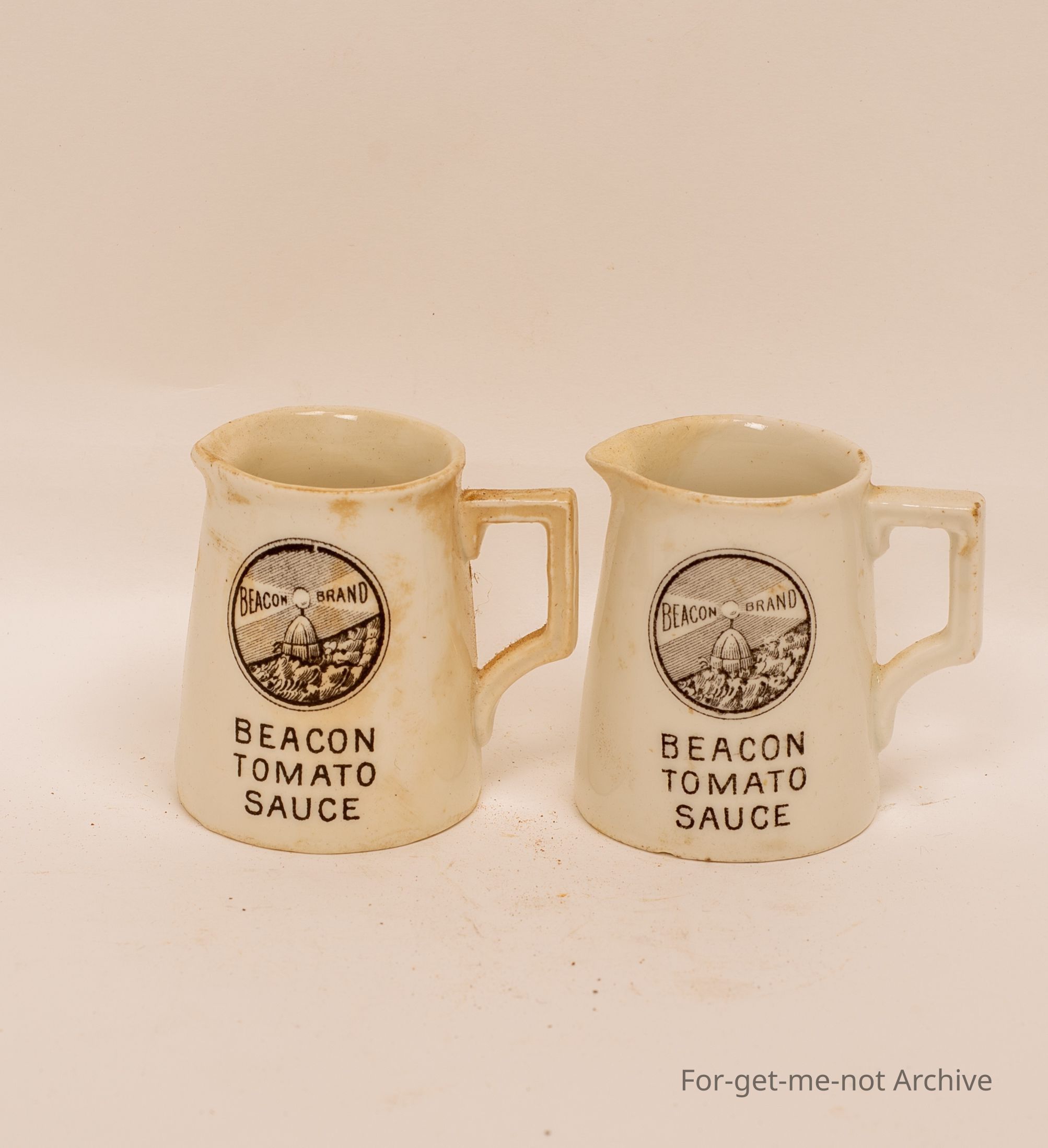 A pair of jugs from Beacon Tomato Sauce, Geelong