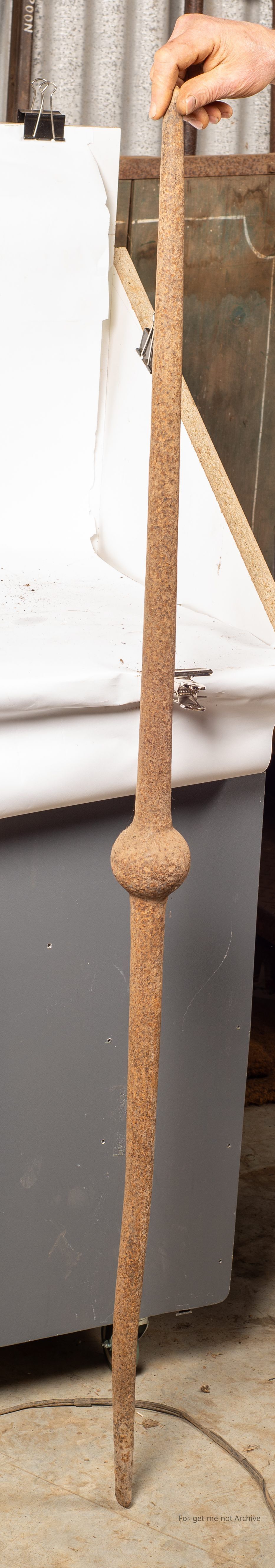 This is another jump bar rock drill. This one has almost a cylindrical ball as the percussion helper. Quite a short one, possibly seen a lot of work.