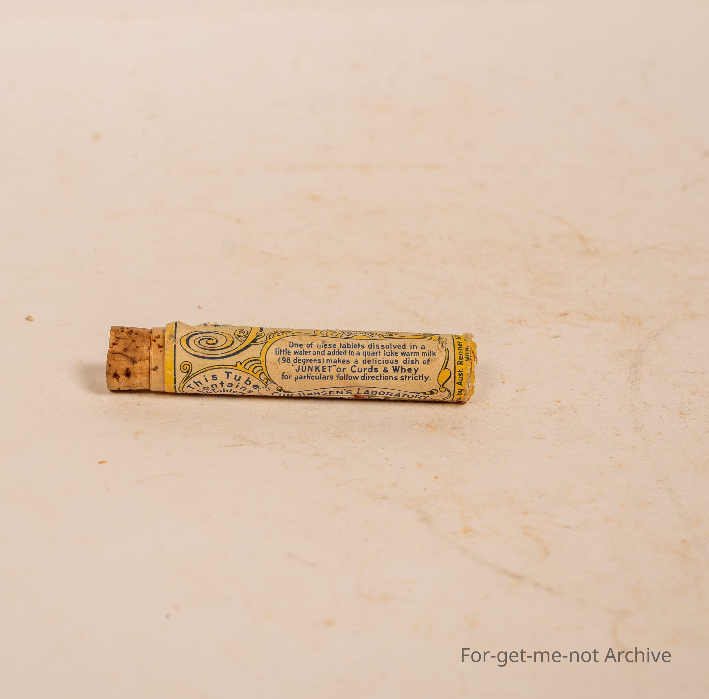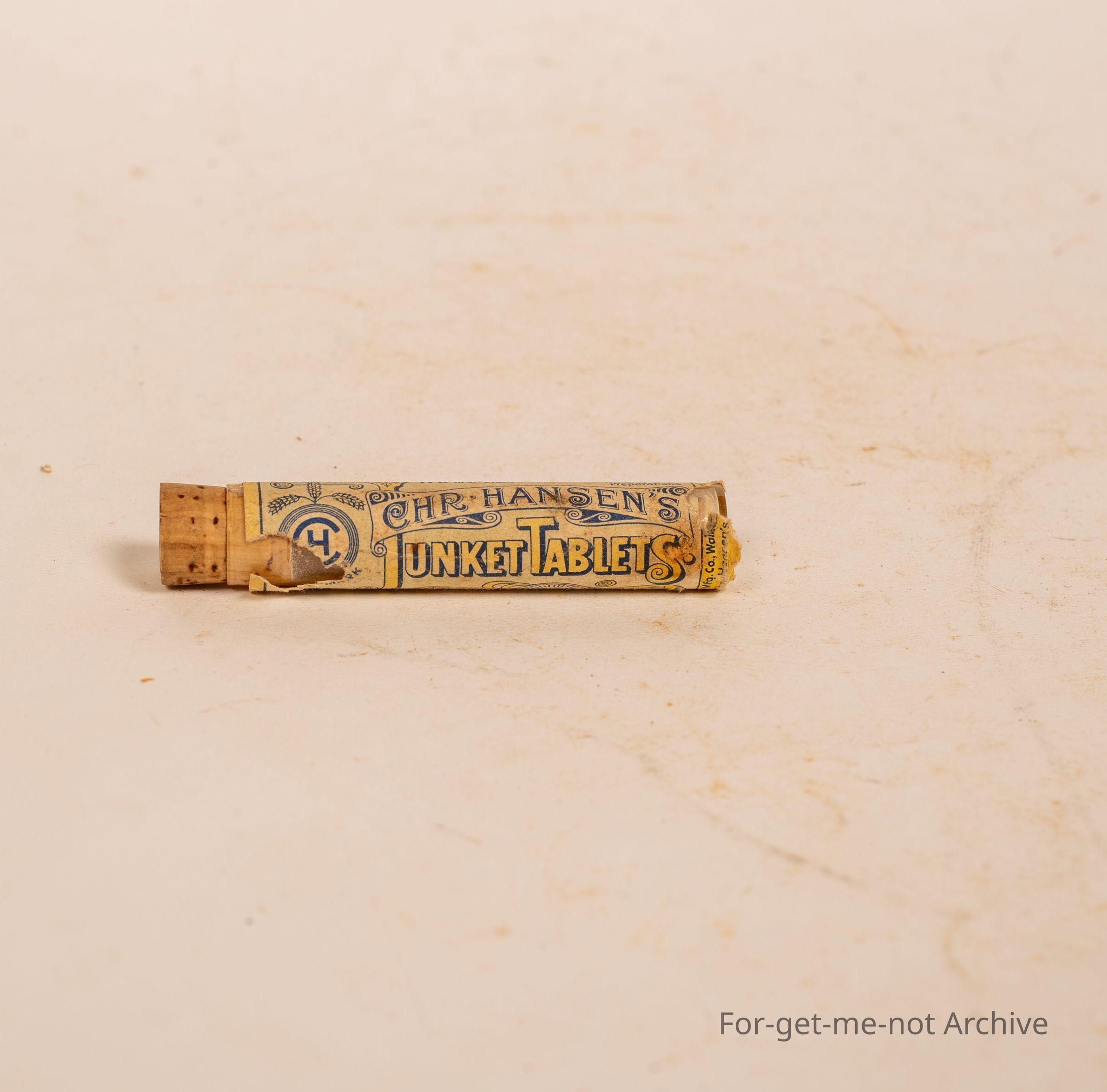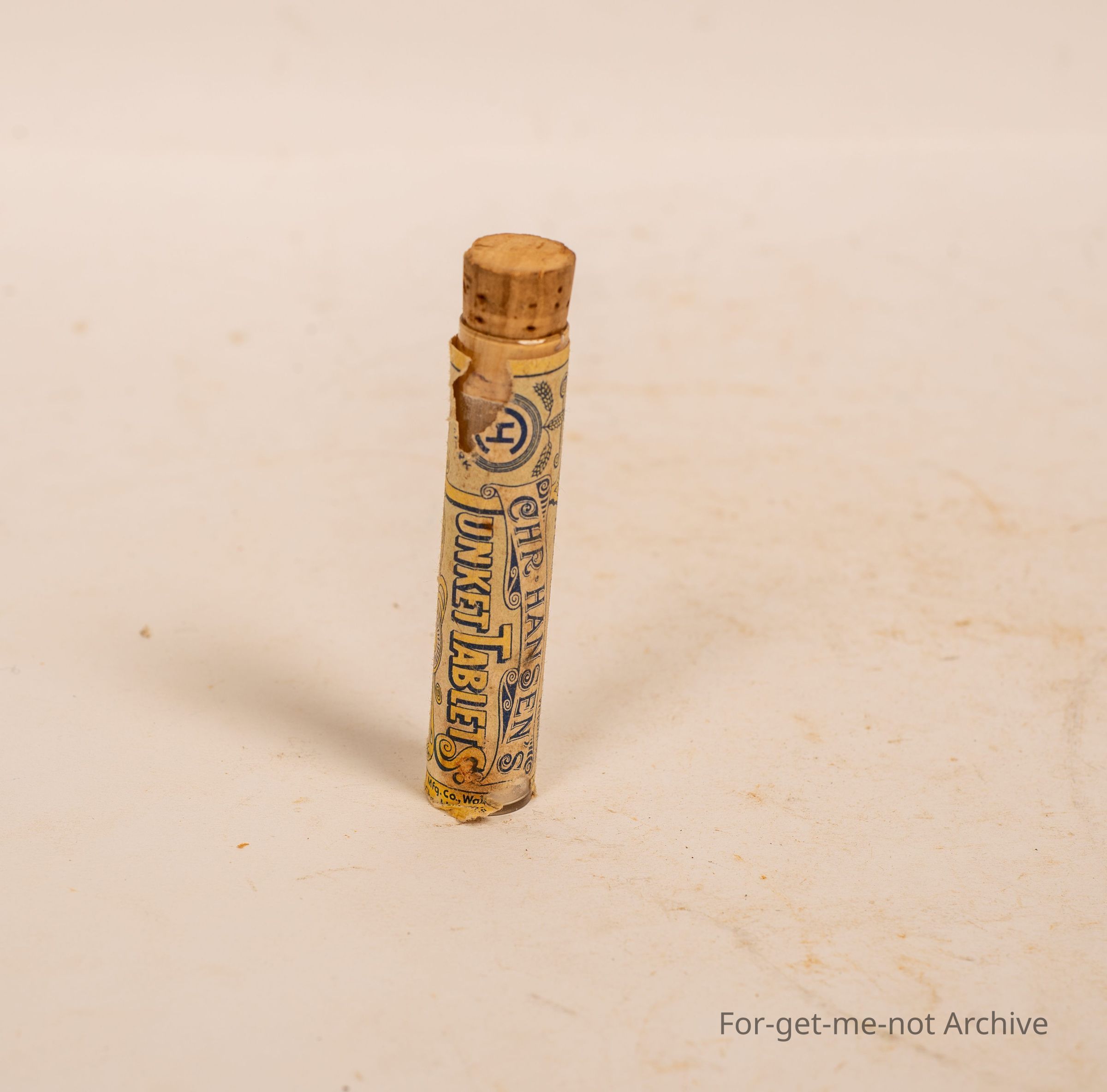Is a small bottle of Hanson's junket tablets with original cork. Couple of tablets left in there,