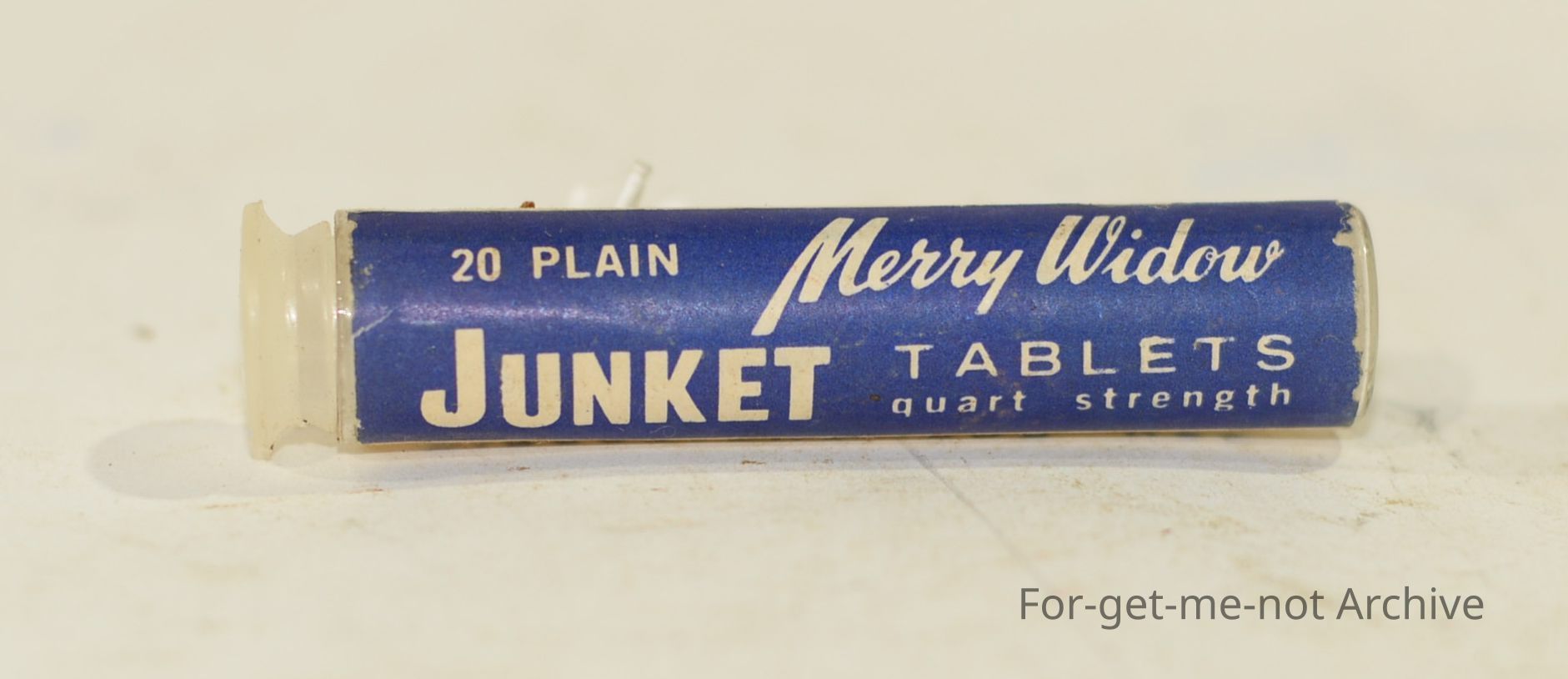 Small plastic container of Junket tablets, "Merry Widow" 20 tablets
