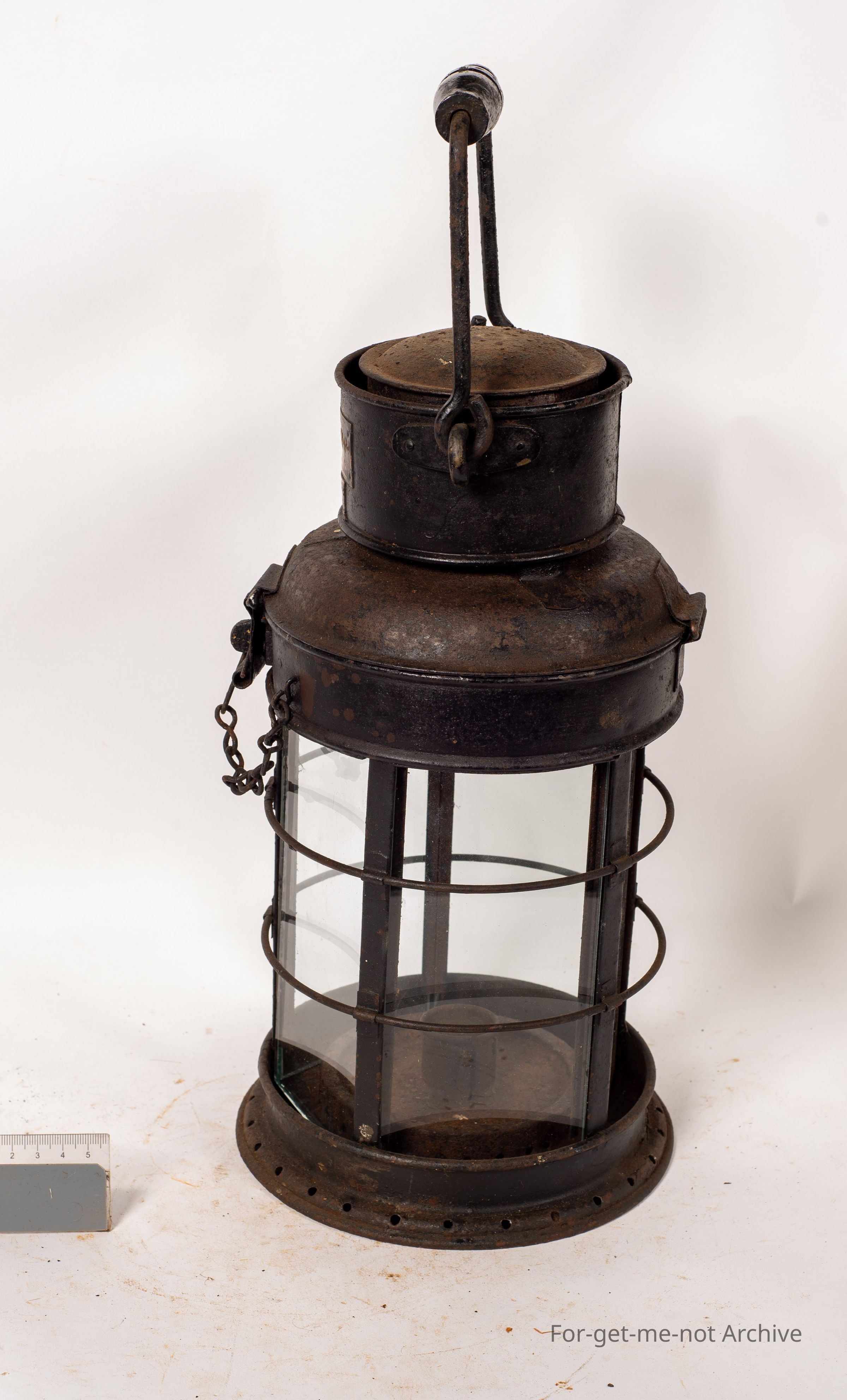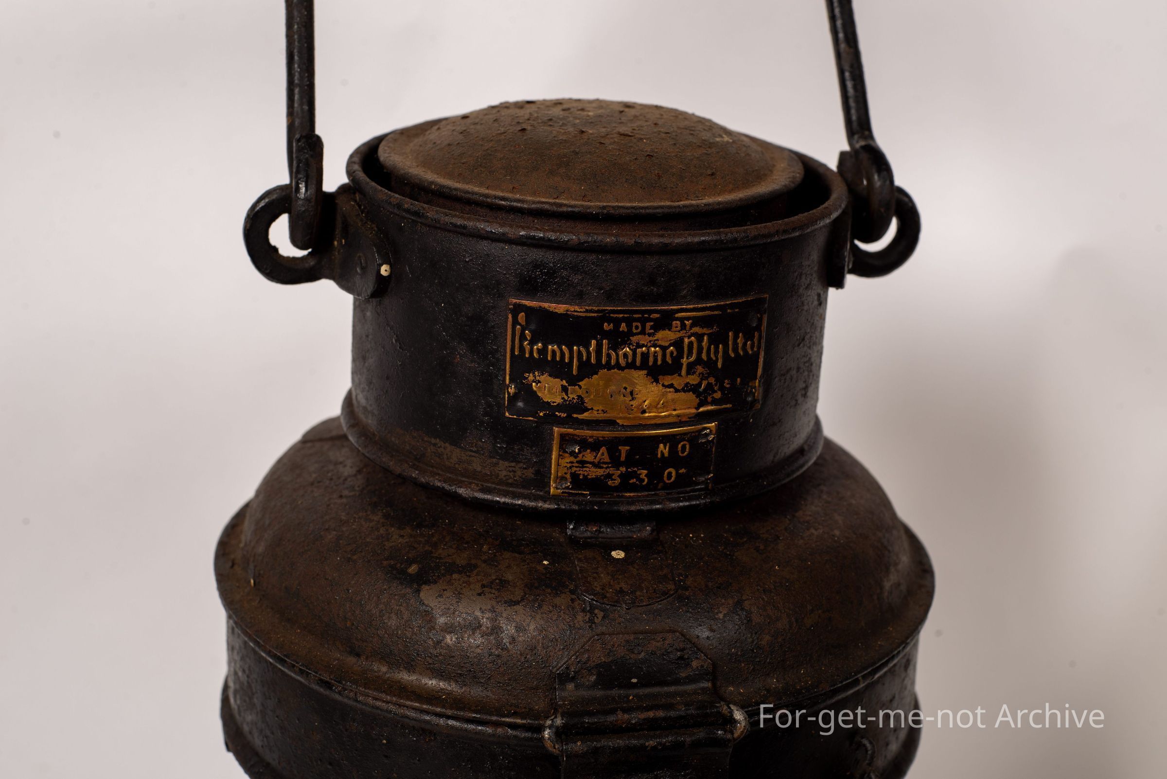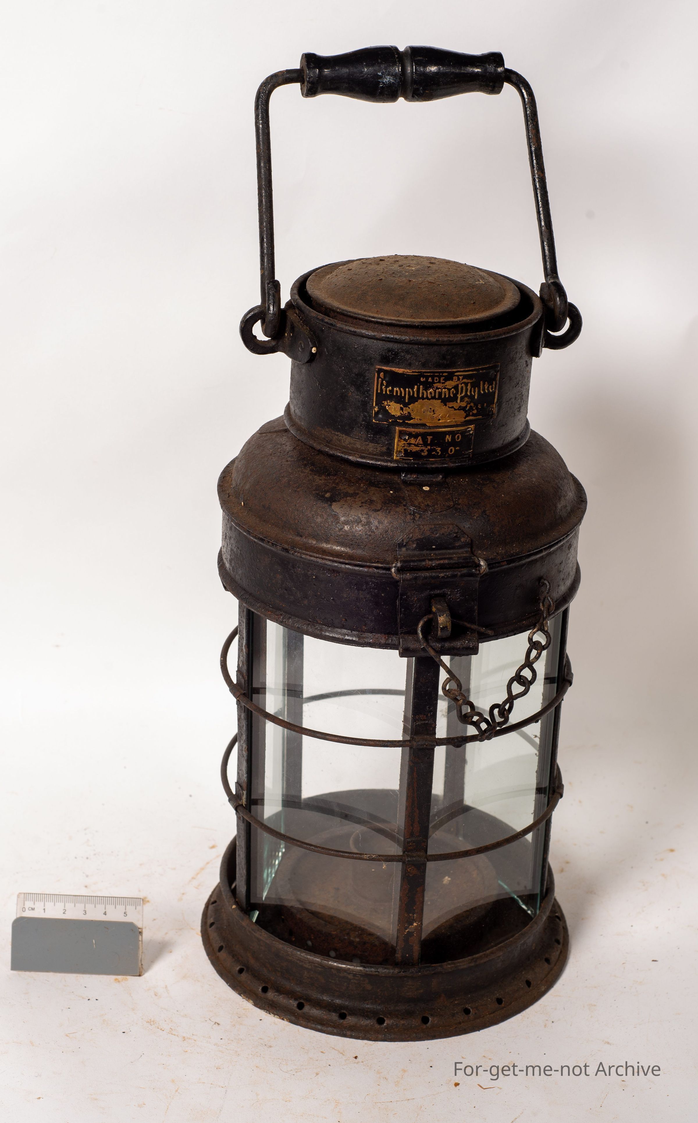 This is a Kempthorne lamp. Kempthorne won the contract to provide all the lamps for the Australian Navy in World War 1. Followed on by supplying all the lamps for all the marine lamps for the 2nd World War as well. All their work is top quality, beautifully made. This one is a very early one. Panels of glass right around the whole circumference and, a candle lamp. So it is a very early, probably, roundabout First World War.Collection