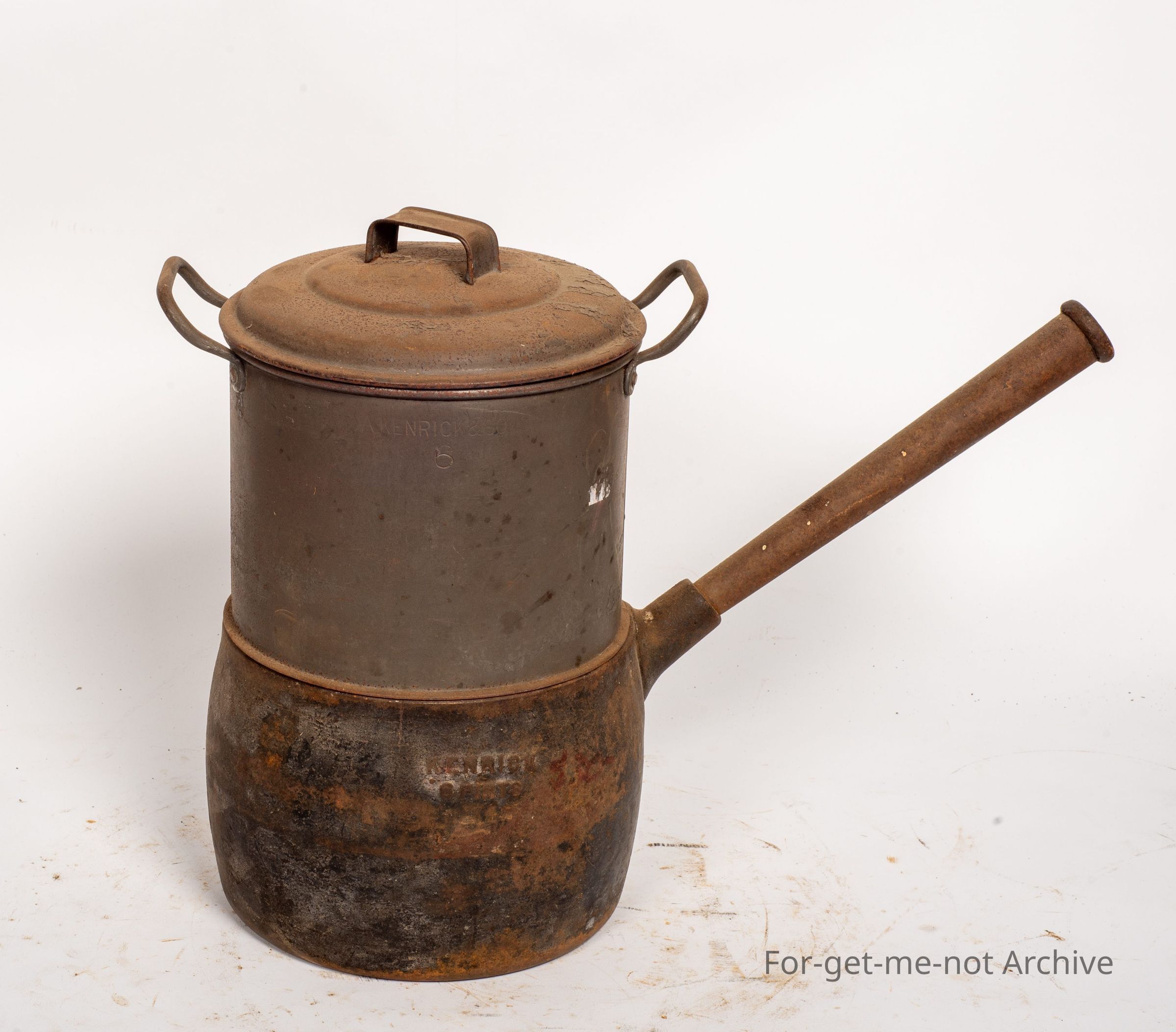 This is a Kendrick saucepan with the top that was engineered to fit that saucepan as a steamer, addition. Quite an unusual Kendrick piece to find.